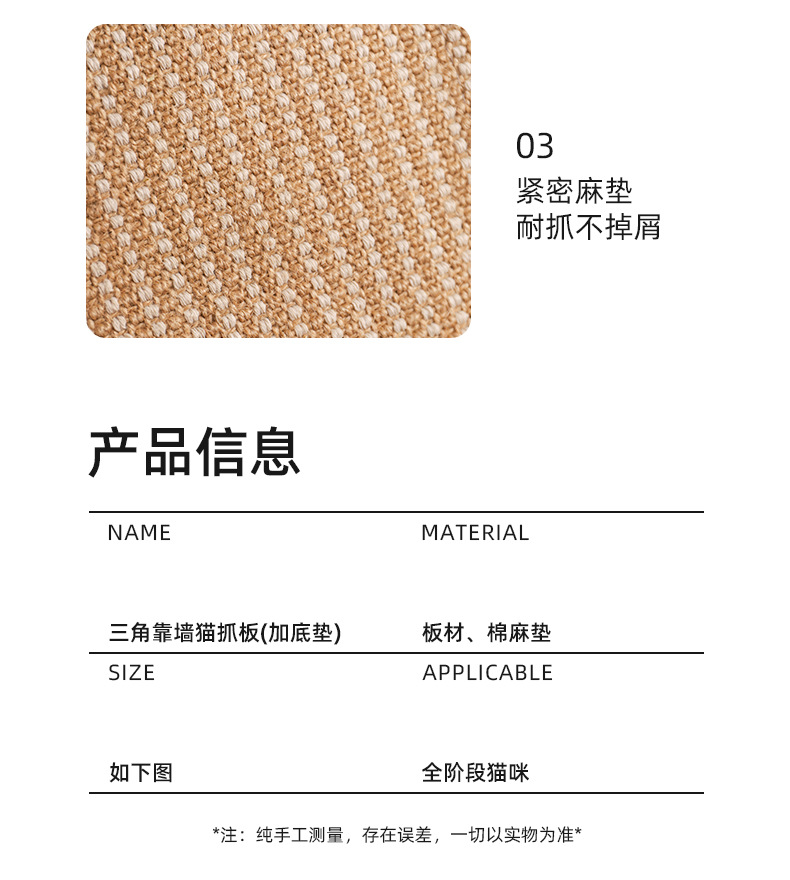 • 삼각형 수직 고양이 긁기 포스트(헤어볼 + 사이잘삼 바닥 패드 포함)