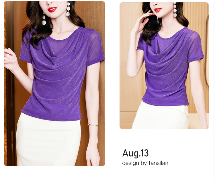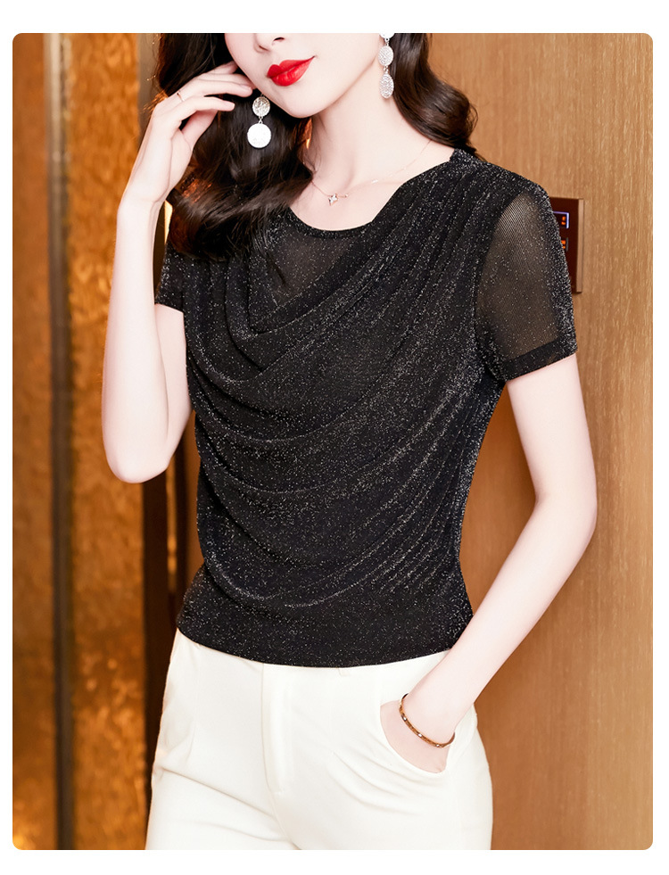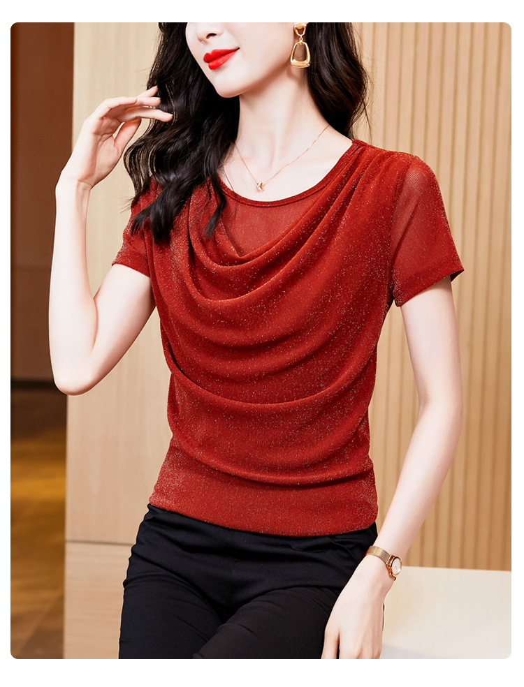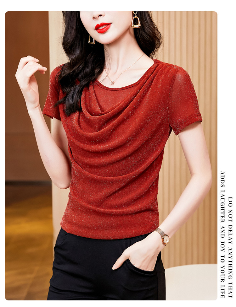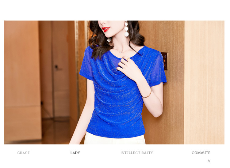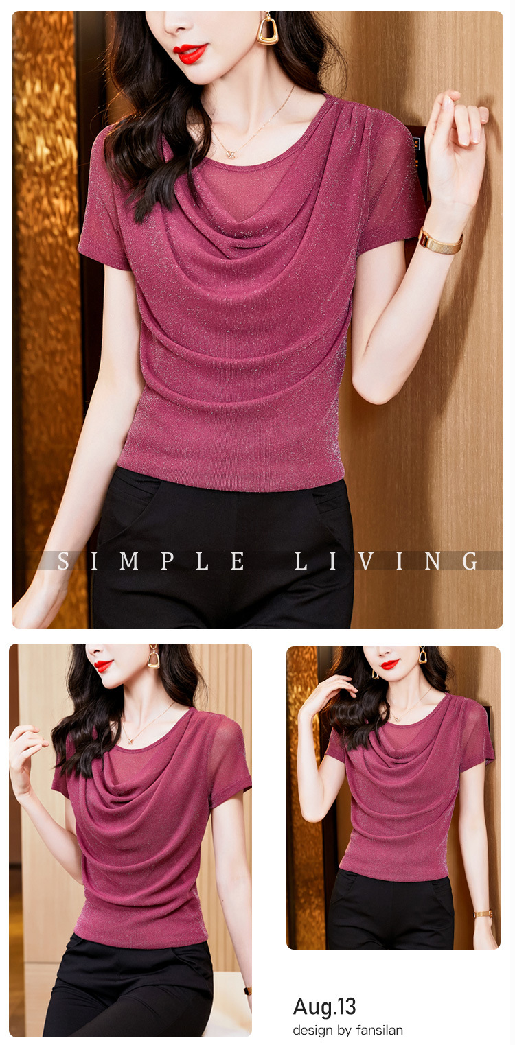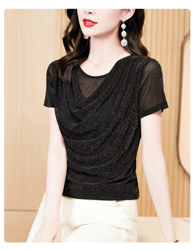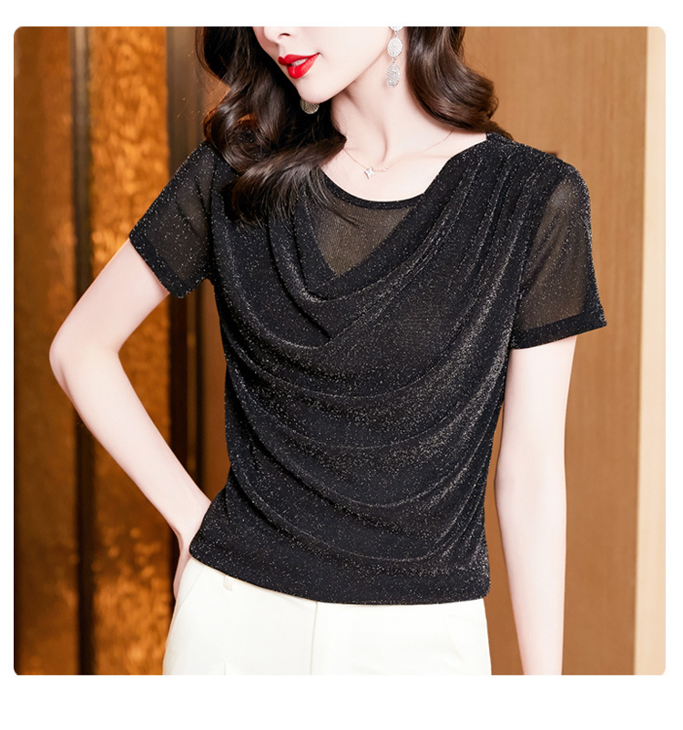 2025 여름 새로운 외국 스타일 조커 슬림 슬림 단색 스윙 칼라 메쉬 짧은 소매 기본 셔츠 티셔츠 도매스토어 가기