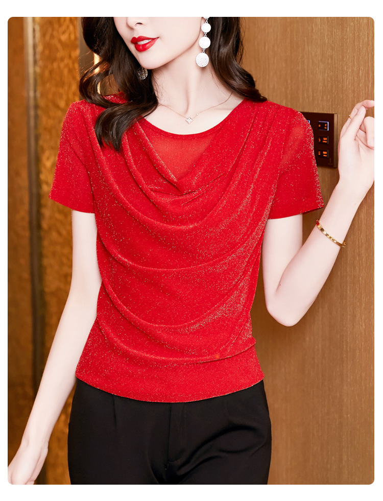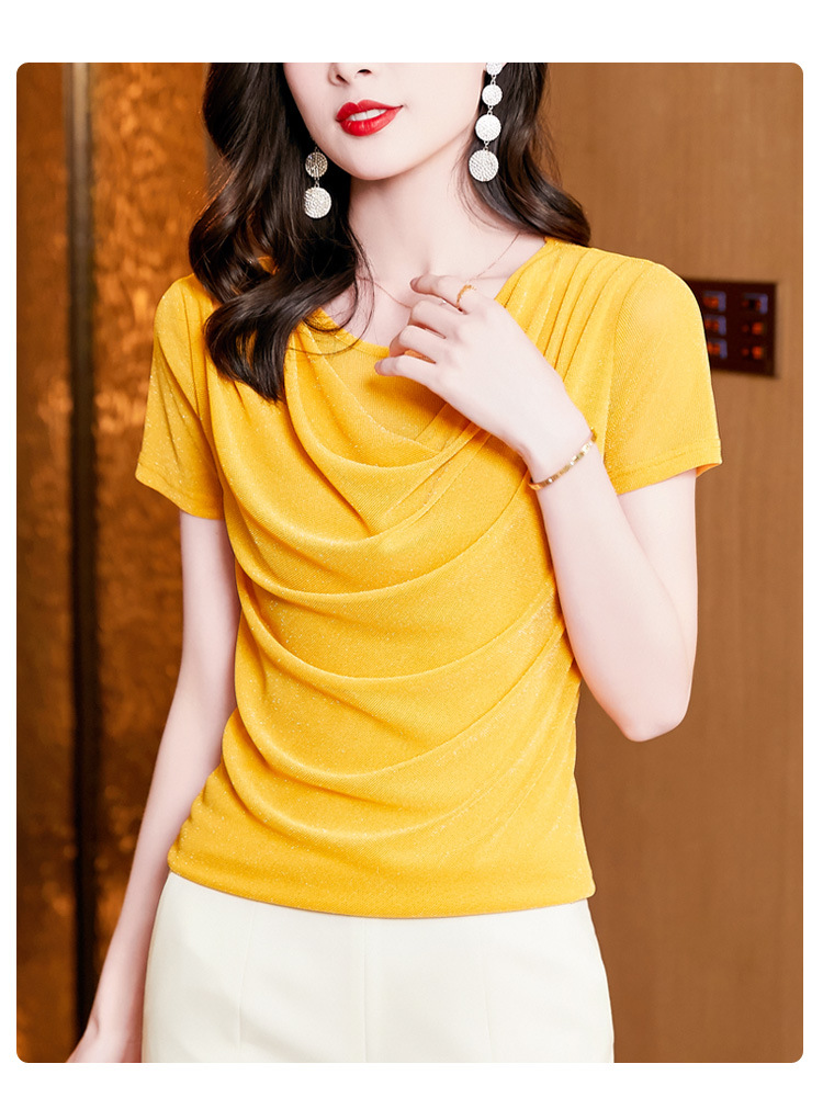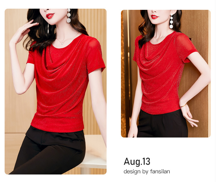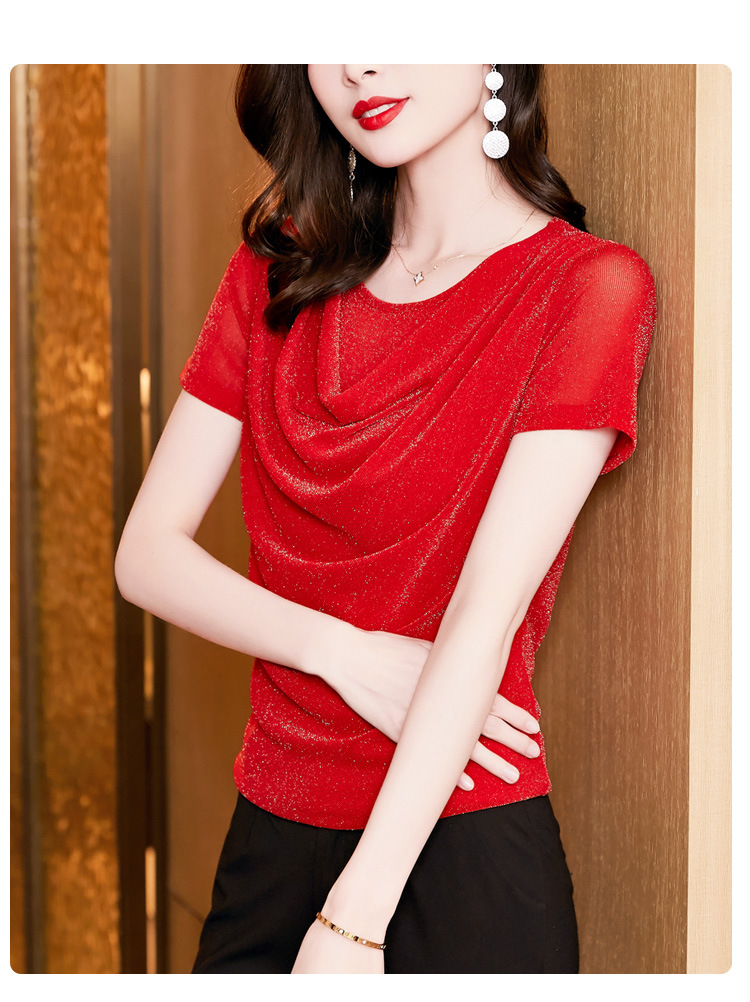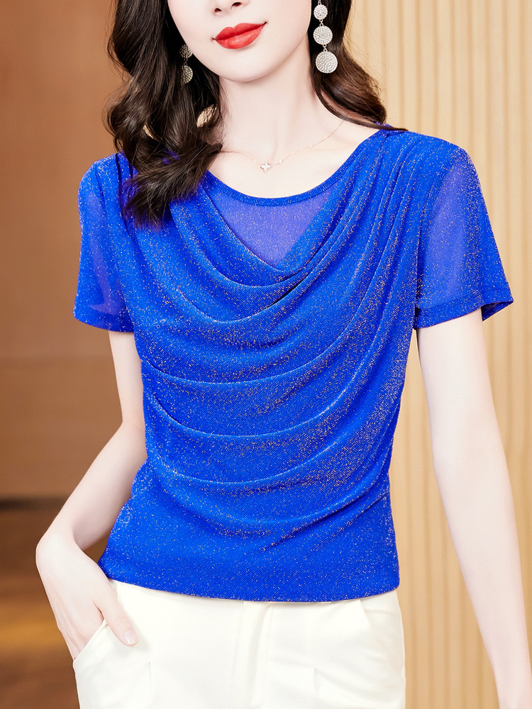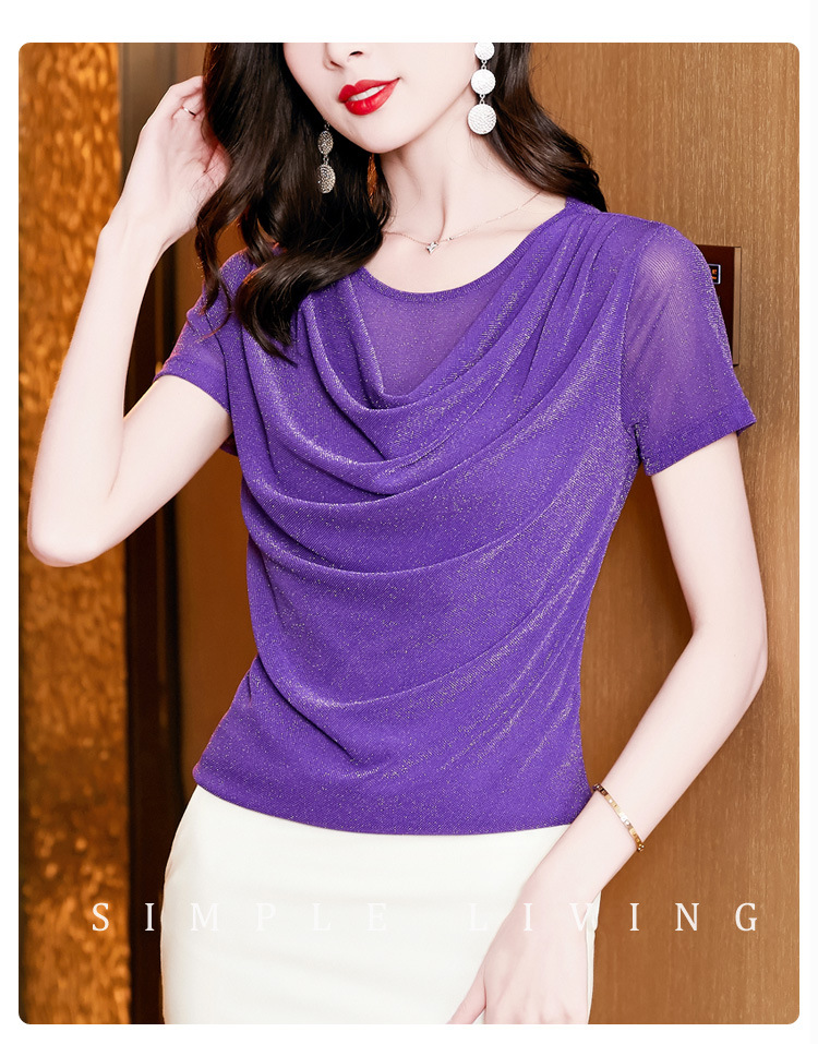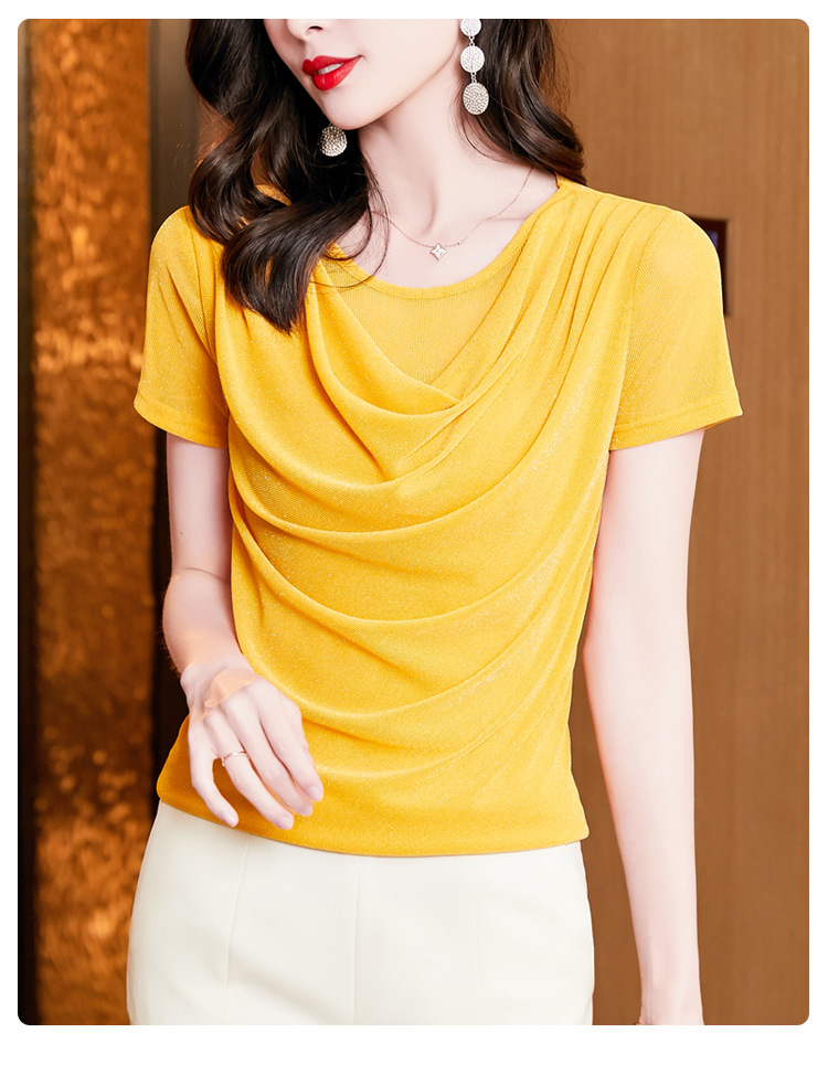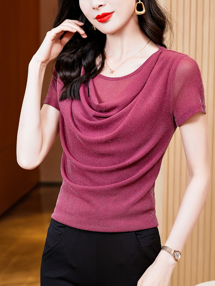 2025 여름 새로운 외국 스타일 조커 슬림 슬림 단색 스윙 칼라 메쉬 짧은 소매 기본 셔츠 티셔츠 도매스토어 가기