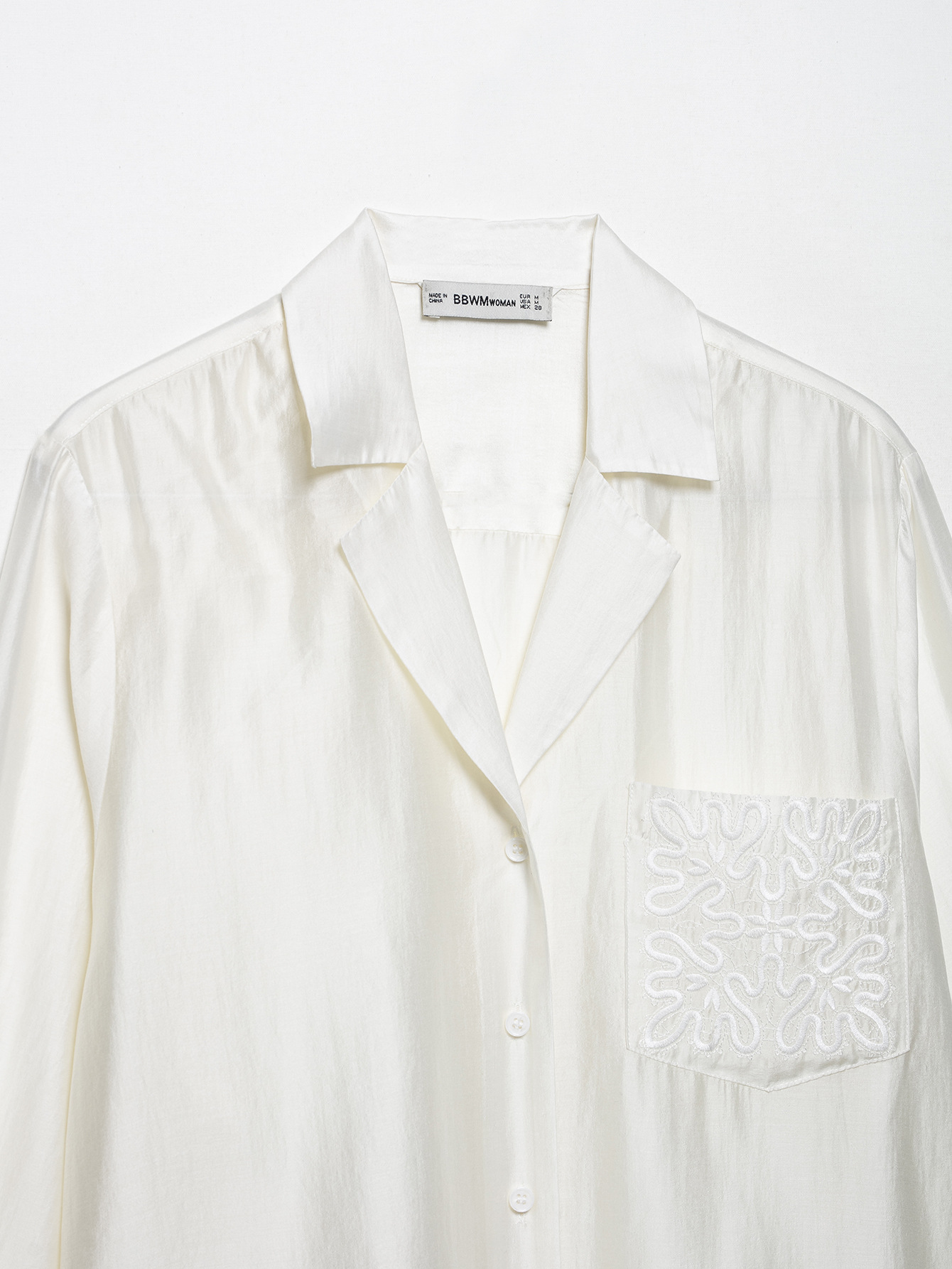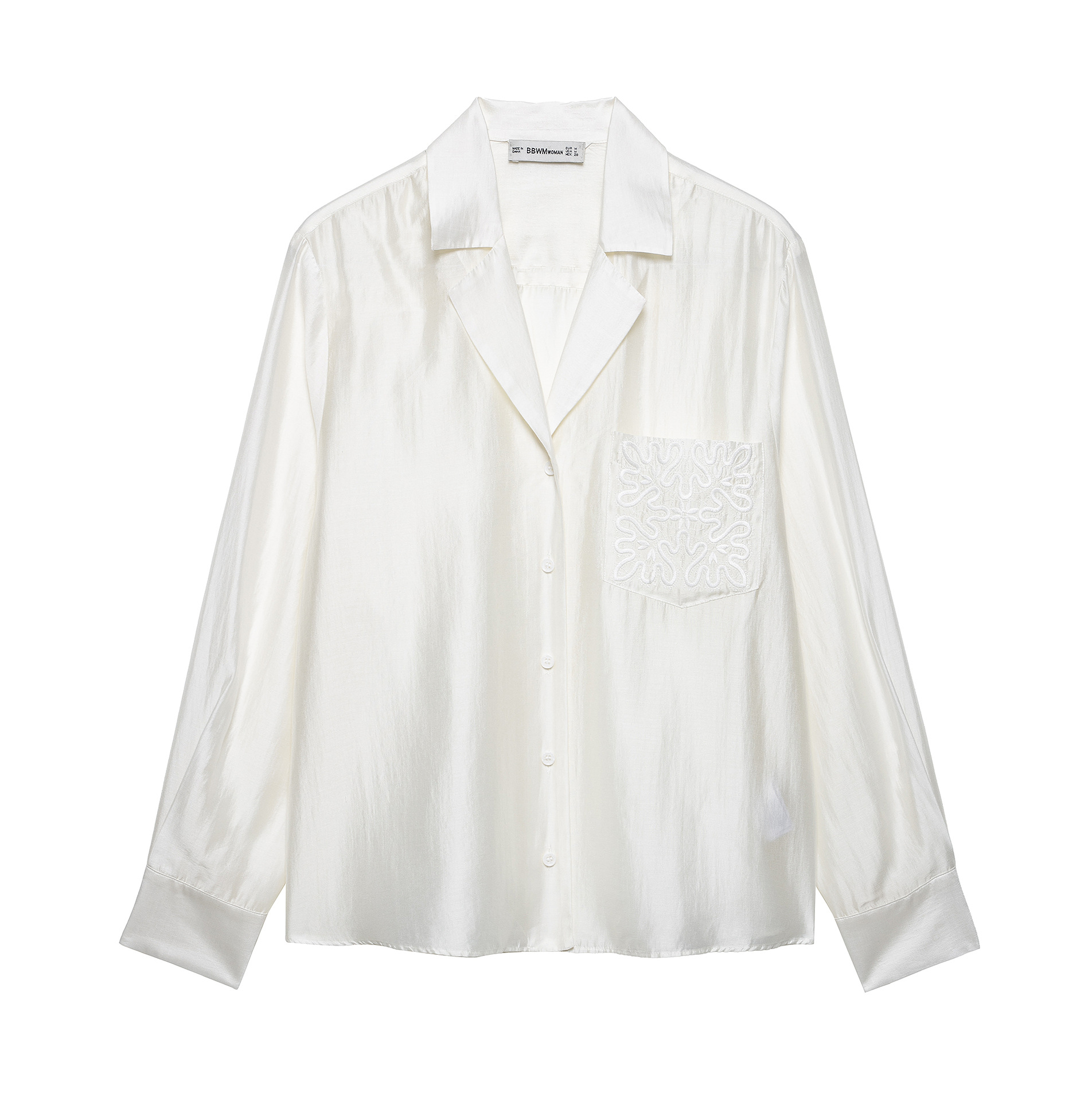 국경 간 대외 무역 여성의 2025 봄 새로운 캐주얼 단색 패션 자수 포켓 긴 소매 셔츠스토어 가기