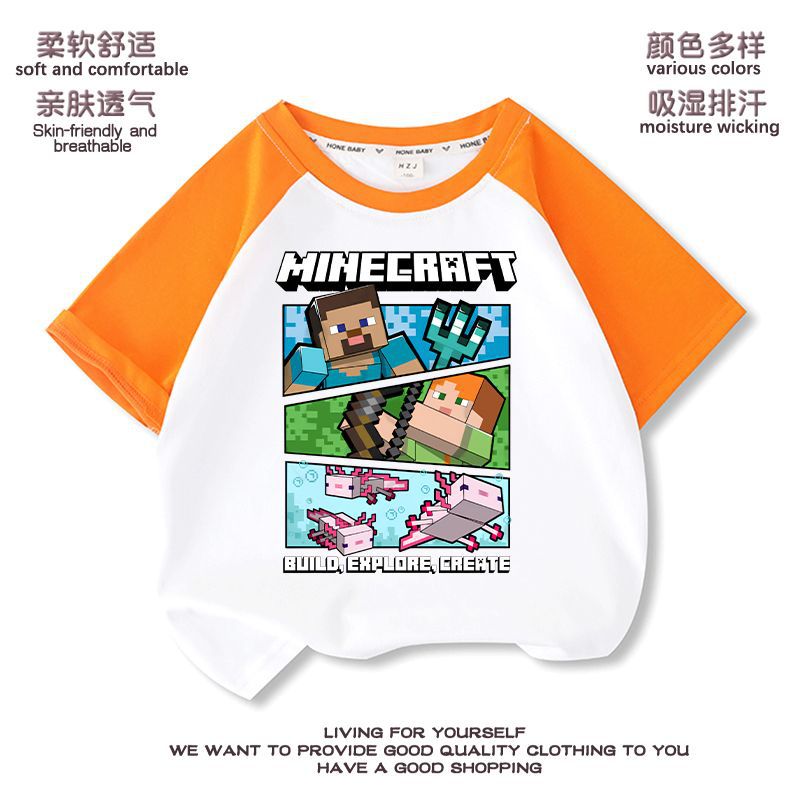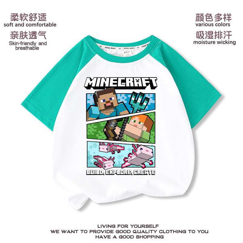 어린이와 소년을 위한 Minecraft 게임 주변 의류, 여름 반팔 티셔츠, Creeper스토어 가기