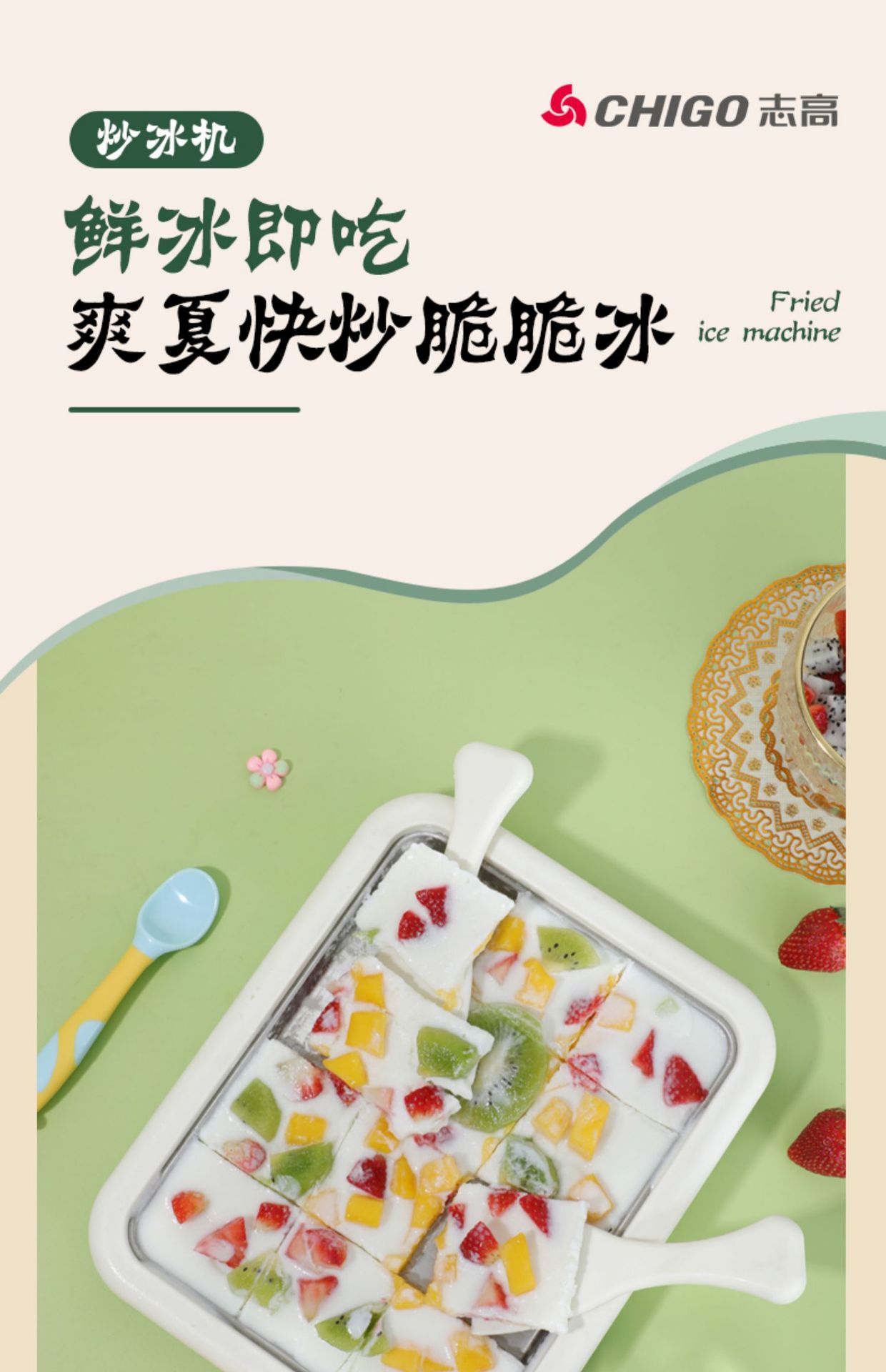 Chigo/Chigo 두꺼운 절단 요거트 기계 다기능 튀김 얼음 기계 가정용 어린이를위한 작은 식품 등급 아이스크림 기계스토어 가기