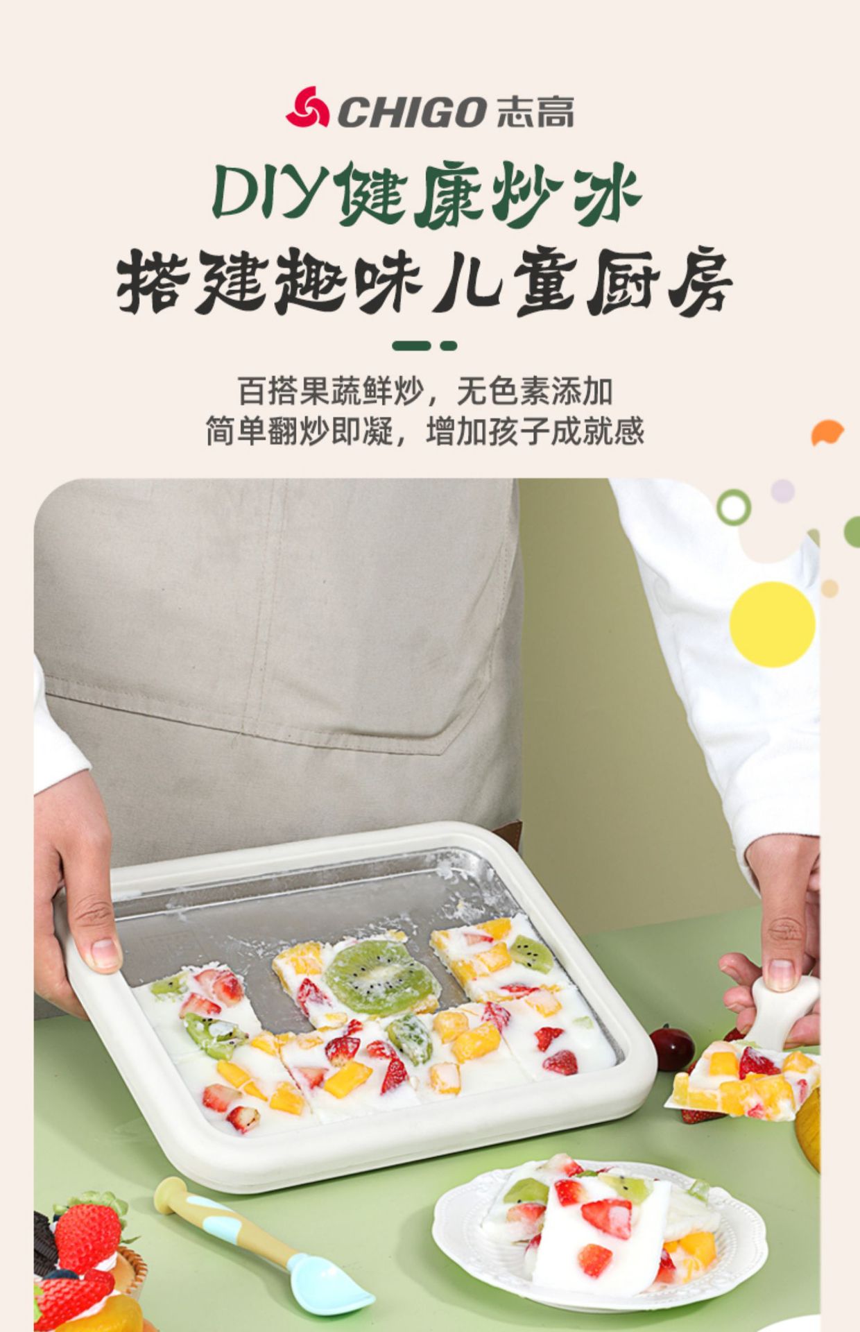 Chigo/Chigo 두꺼운 절단 요거트 기계 다기능 튀김 얼음 기계 가정용 어린이를위한 작은 식품 등급 아이스크림 기계