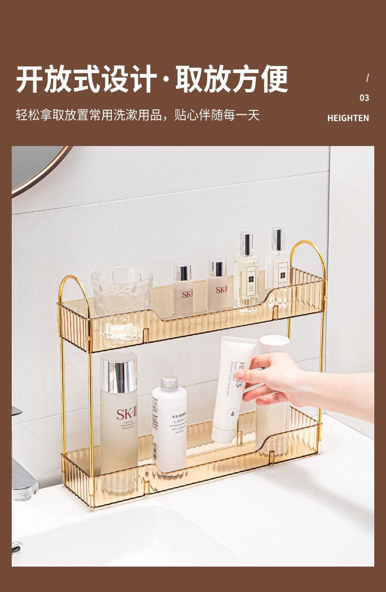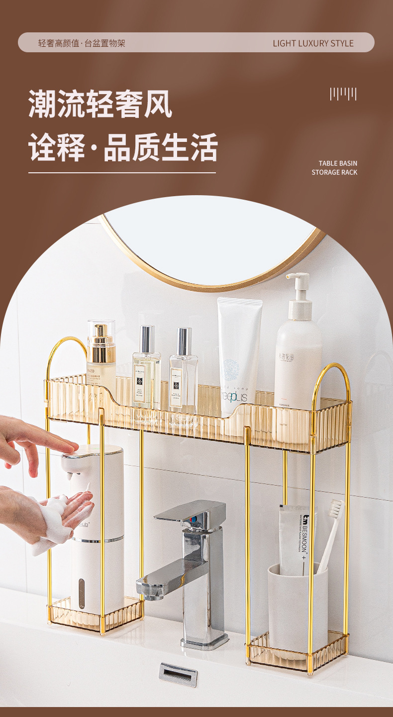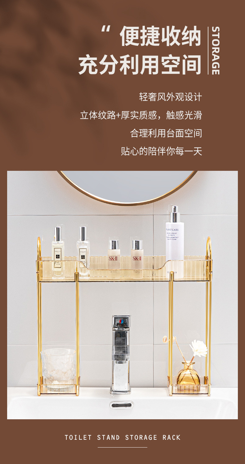 轻奢卫生间置物架浴室厕所洗手洗漱台面化妆品收纳盒桌面梳妆台架