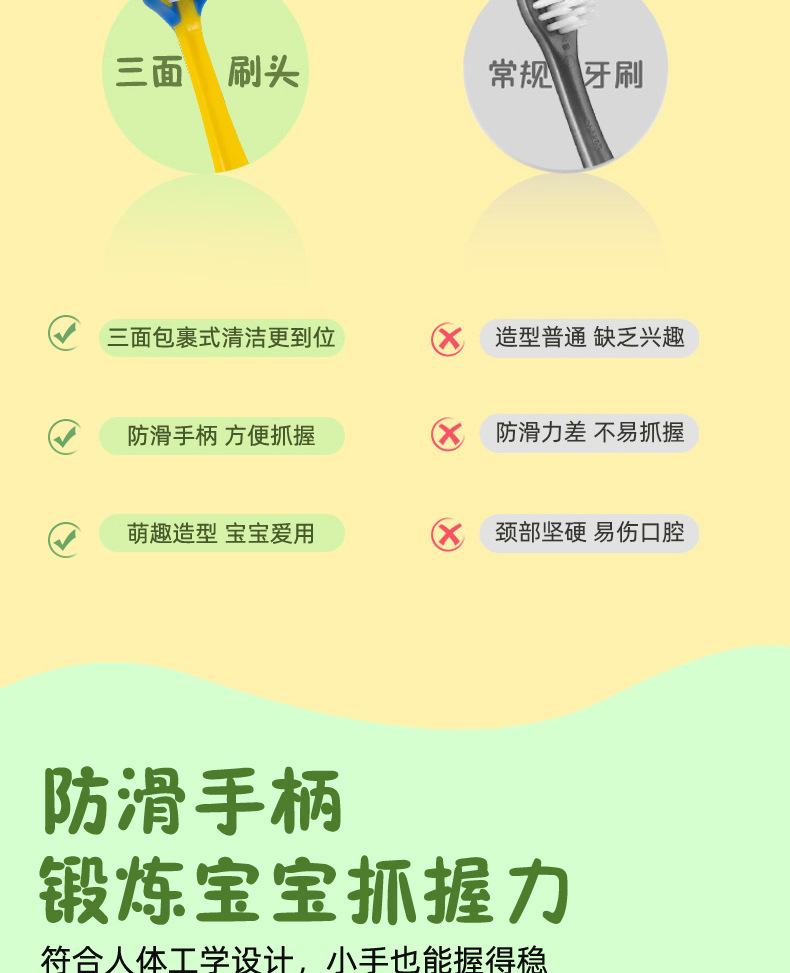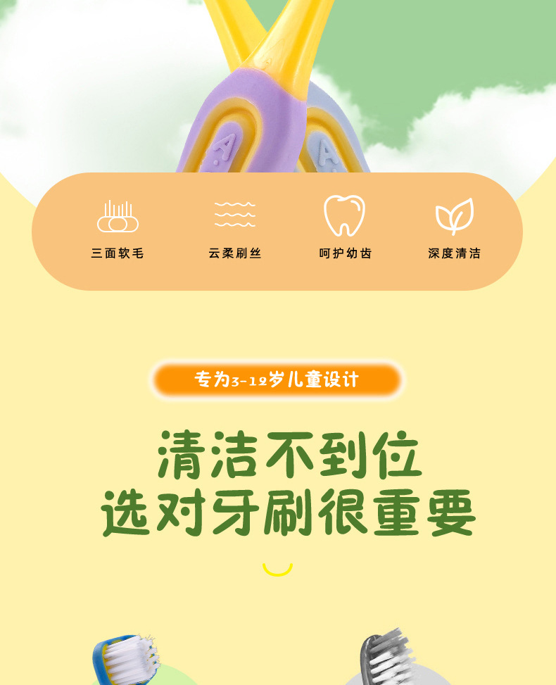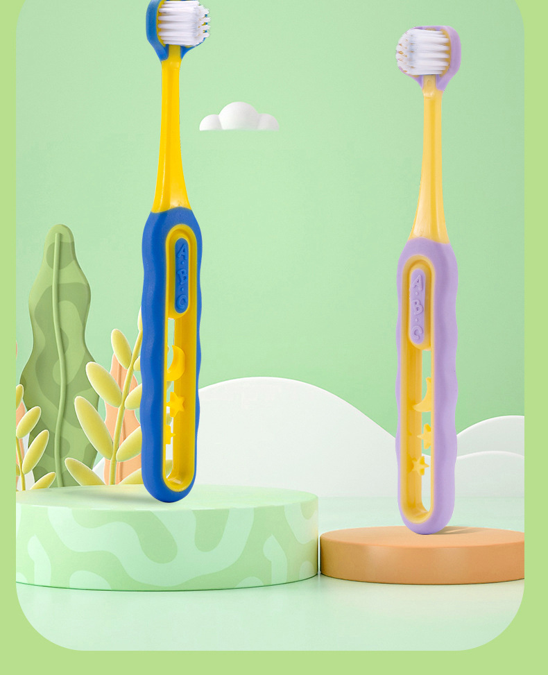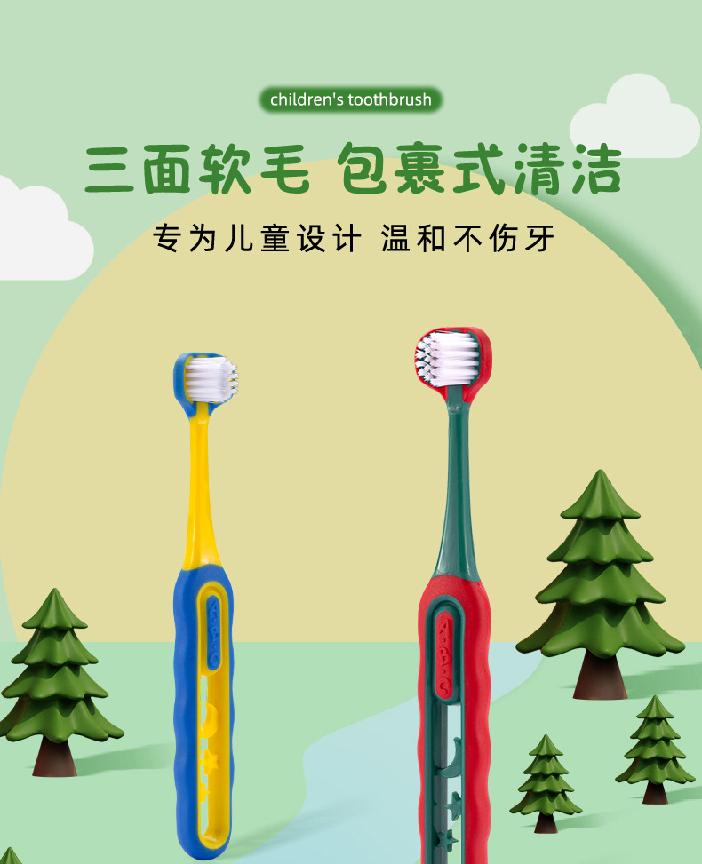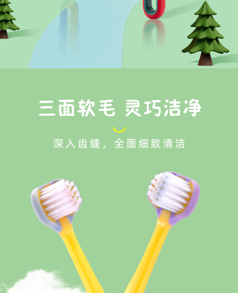 어린이 3 면 칫솔 부드러운 헤어 가구 3-12 세 아기의 치아 변경 만화 칫솔 도매 더블 팩스토어 가기