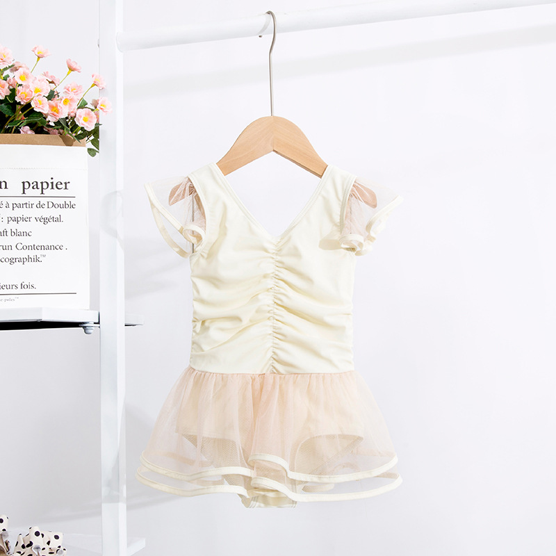 2025 어린이 수영복 소녀 원피스 귀여운 단색 공주 스커트 수영복 온천 어린이 소녀 거즈 스커트스토어 가기