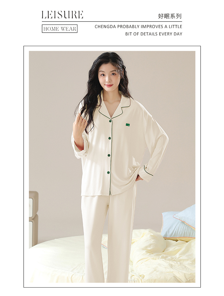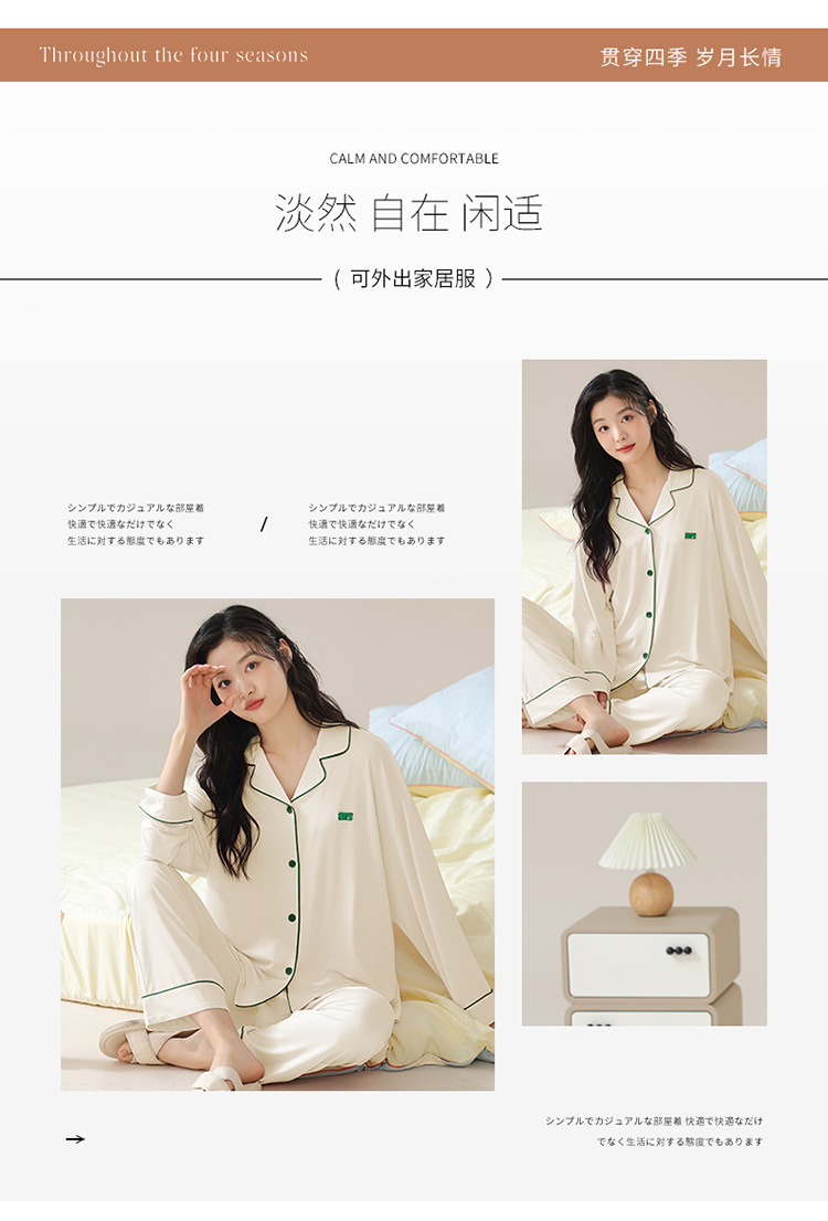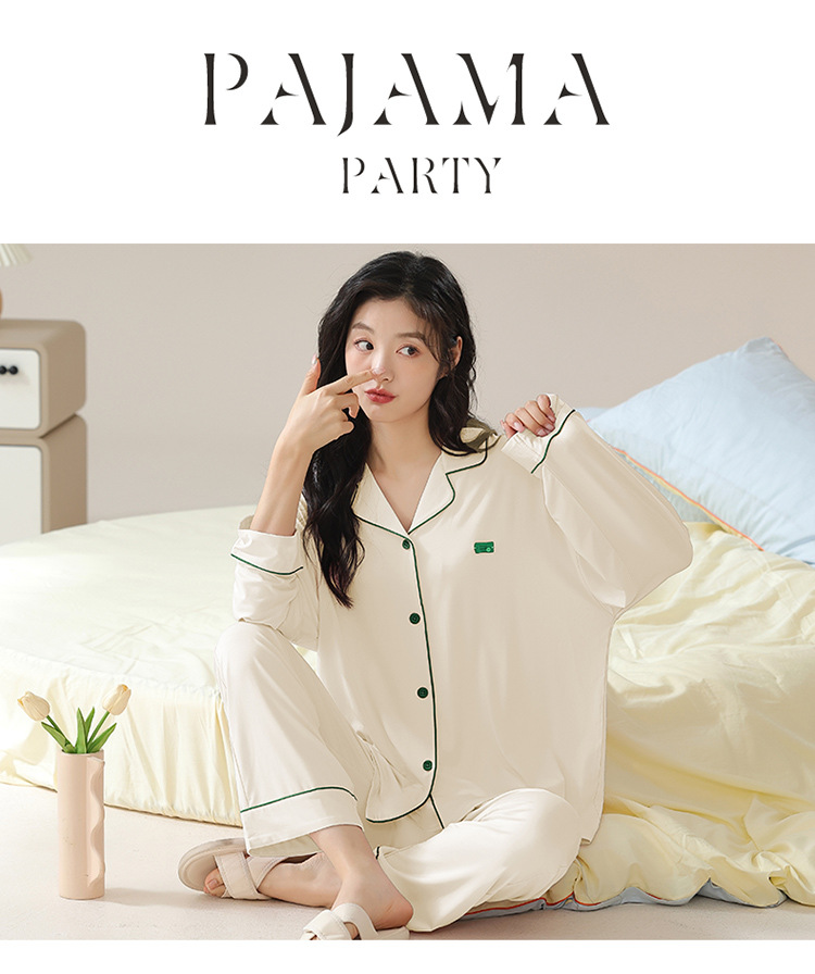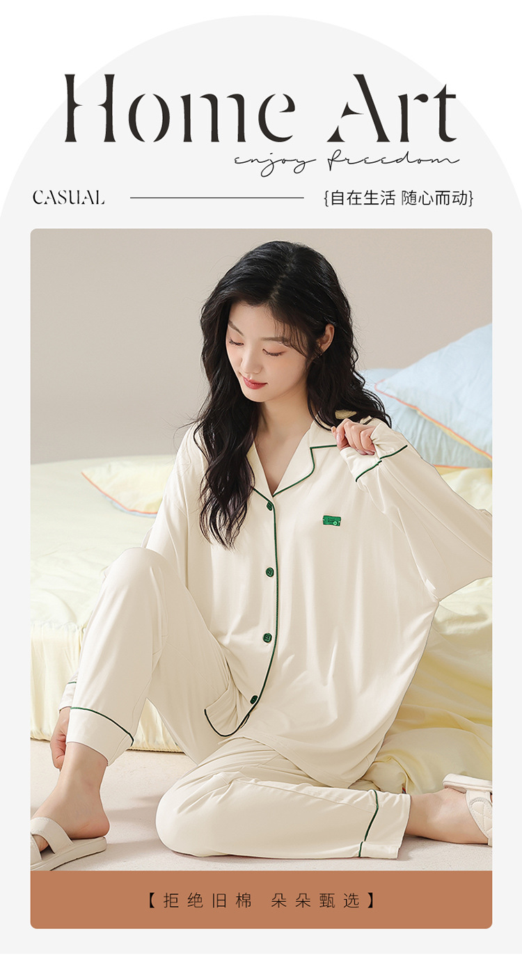 순면 잠옷 여성의 봄과 가을 긴 소매 2024 새로운 여성 플러스 사이즈 단색 가을과 겨울 홈 옷 세트 입을 수 있습니다스토어 가기