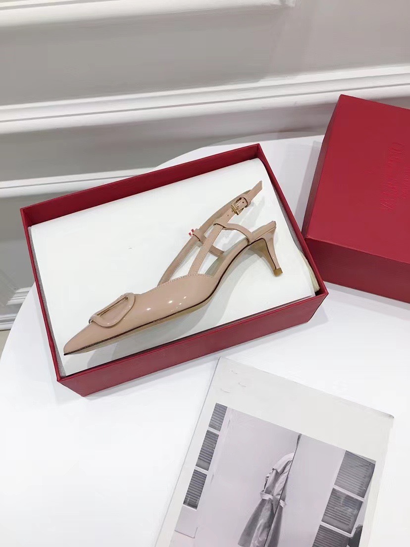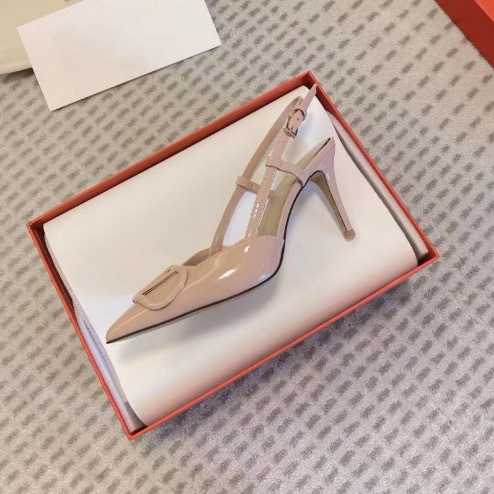 하이 버전 V 홈 누드 특허 가죽 하이힐 여성용 얕은 입 봄과 가을 우아한 바오 터우 스틸레토 힐을 가리키는 프랑스 V 버클 샌들