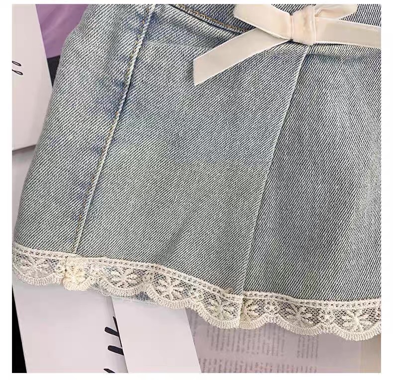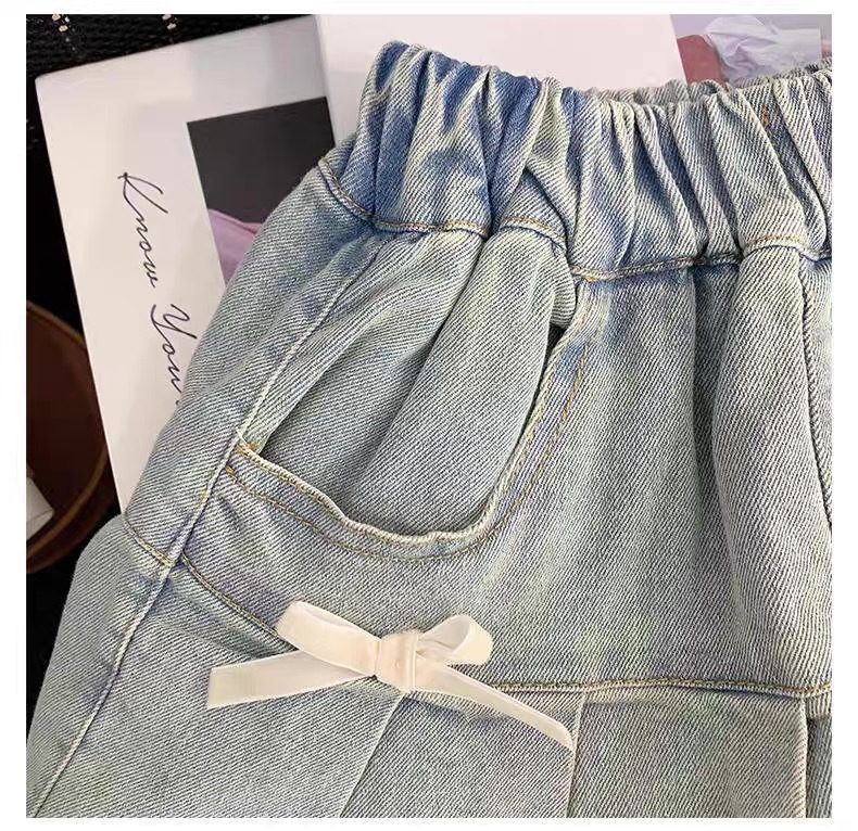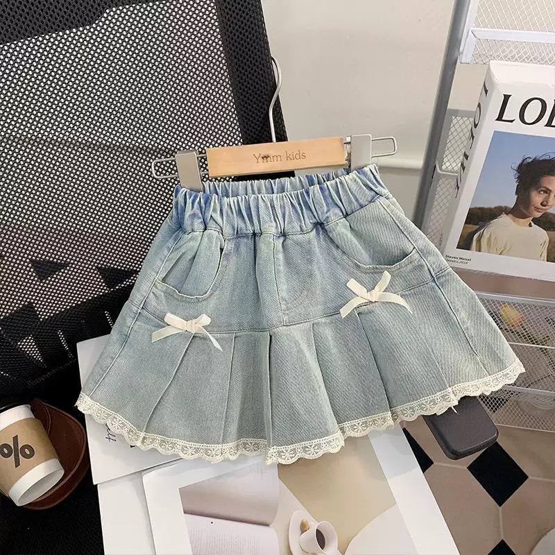 여자 데님 치마 2025 여름 새로운 어린이 짧은 치마 어린이 여름 원피스 소녀 주름 치마
