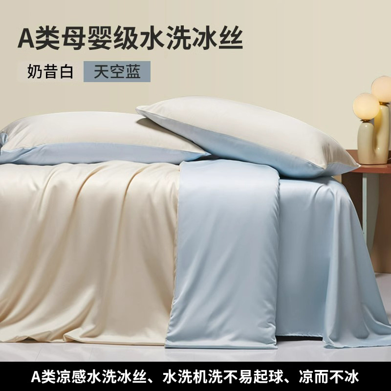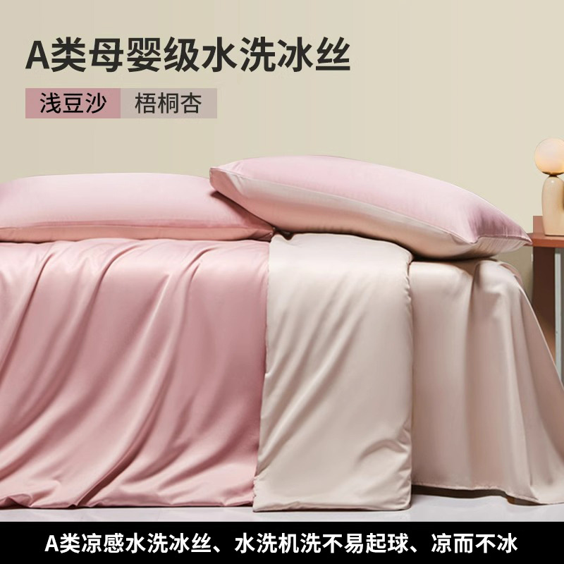 夏季冰丝四件套丝滑裸睡被套轻奢床单床笠床上三件套高端床品스토어 가기
