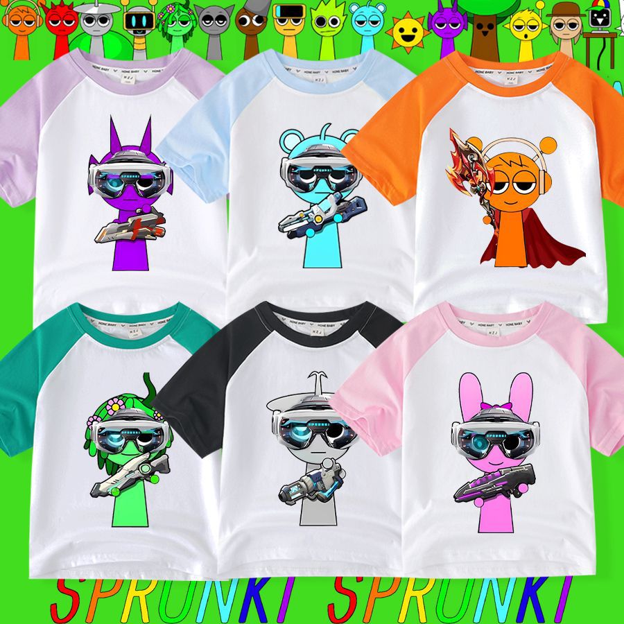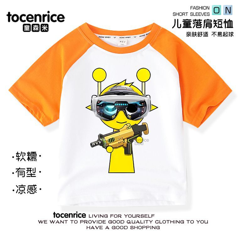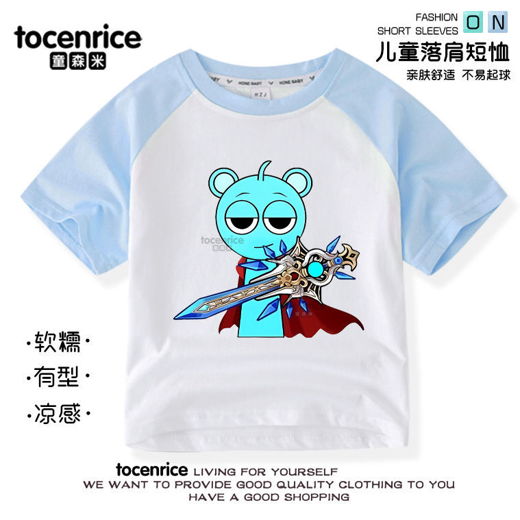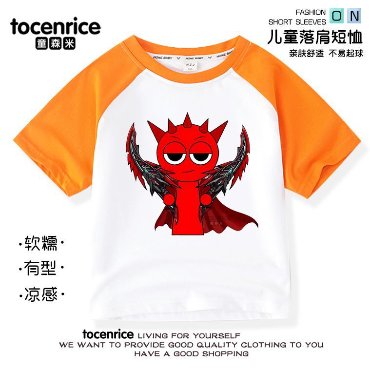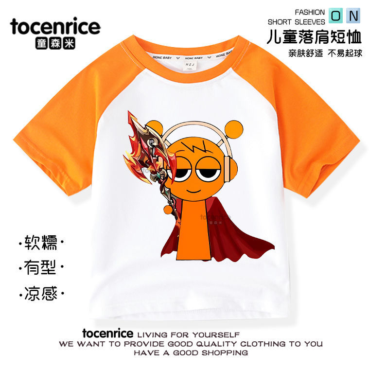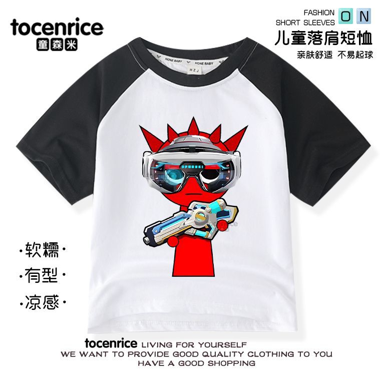 리듬 박스 sprunki 옷 어린이 반팔 라글란 티셔츠 중대형 어린이 순면 소년 소녀 여름상의스토어 가기