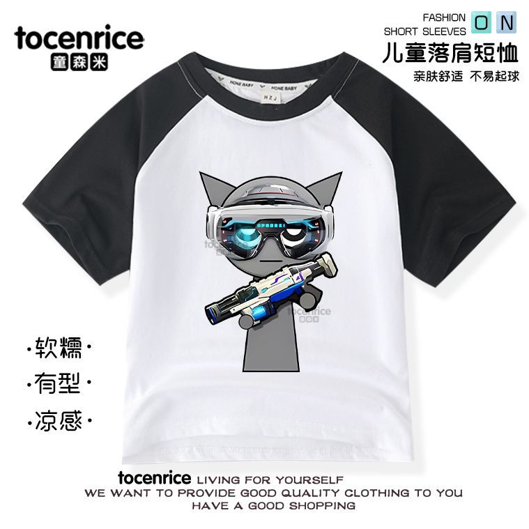 리듬 박스 sprunki 옷 어린이 반팔 라글란 티셔츠 중대형 어린이 순면 소년 소녀 여름상의
