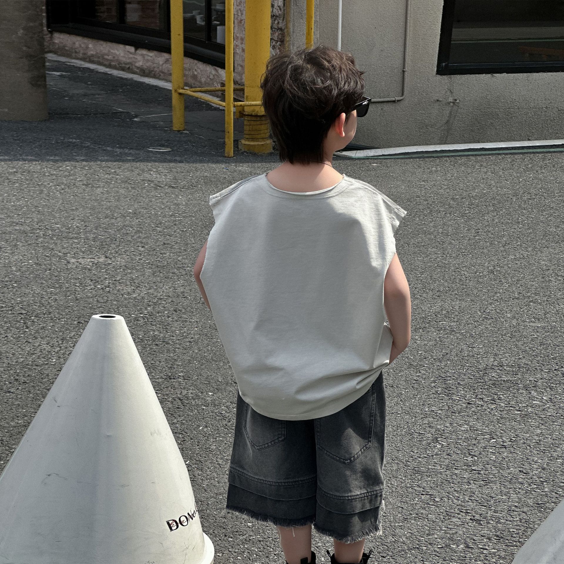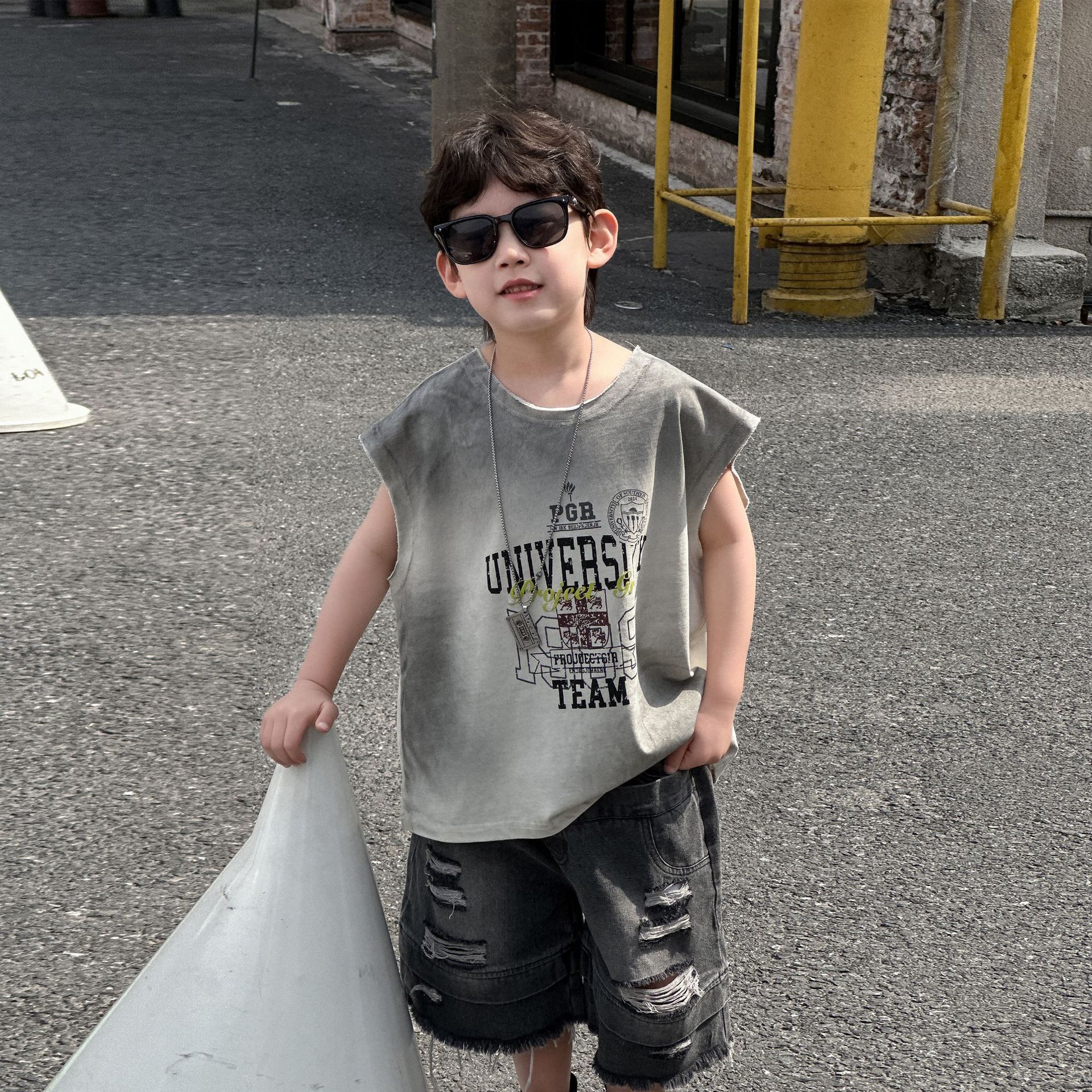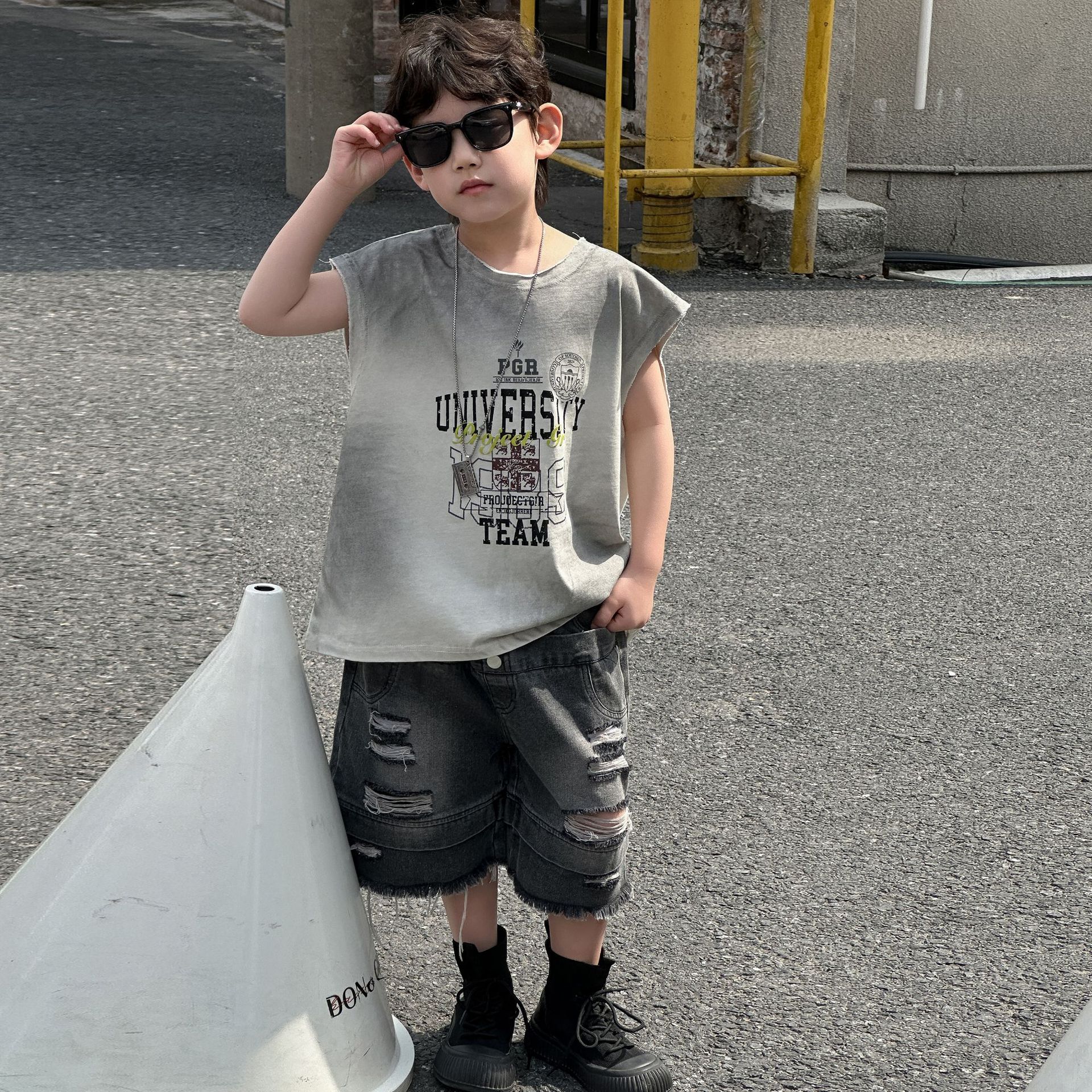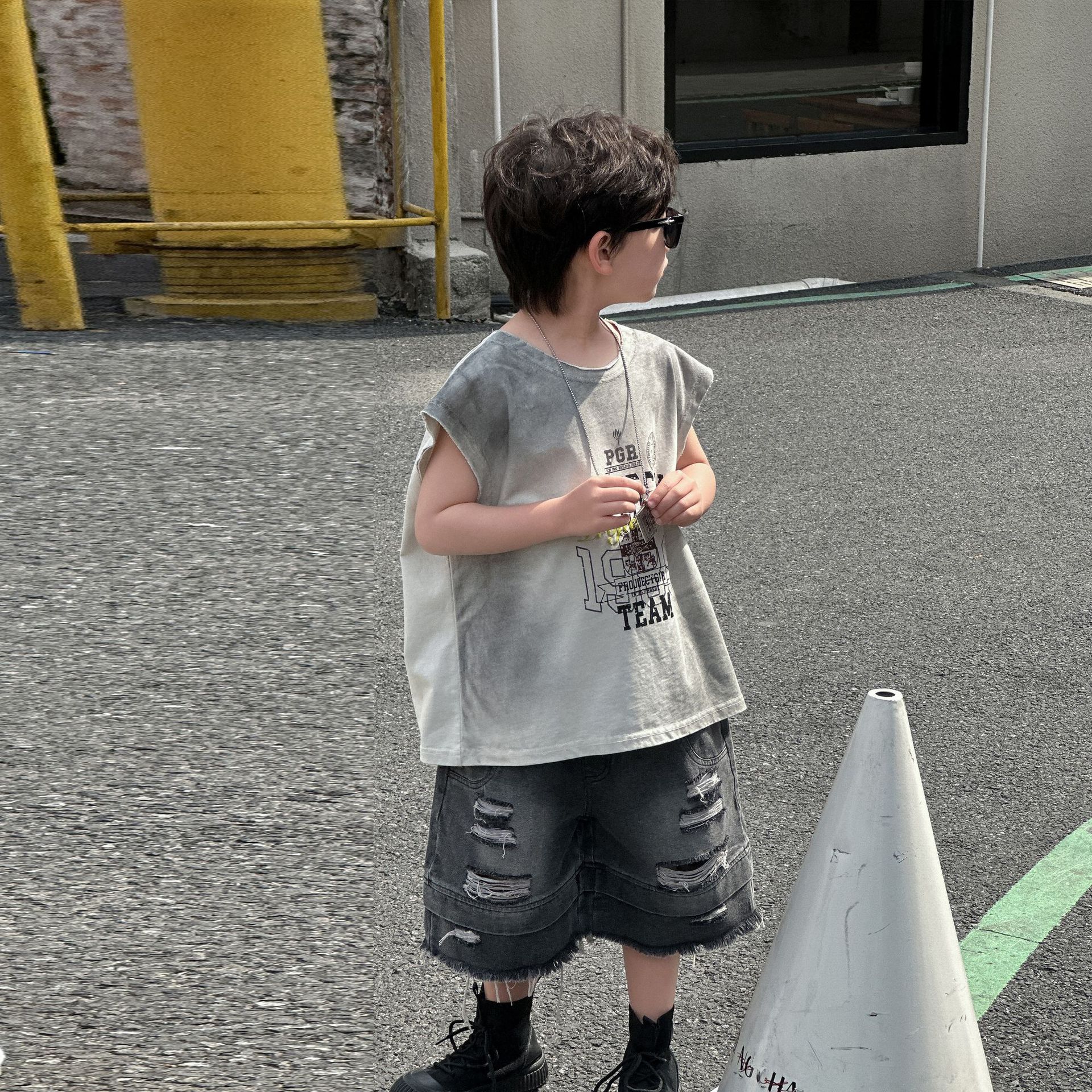 소년의 여름 트렌디 브랜드 와이드 다리 반바지 2025 새로운 어린이 느슨한 청바지 소년 5 점 바지 중 바지 아동복스토어 가기
