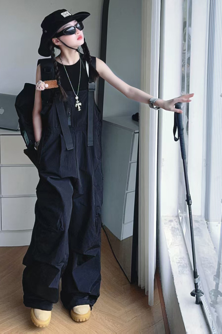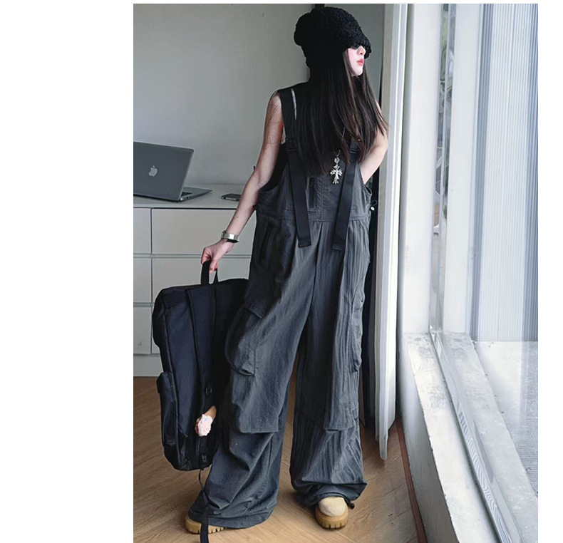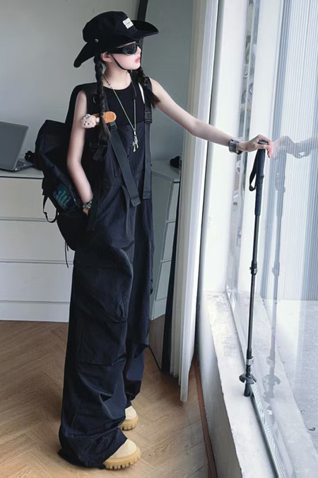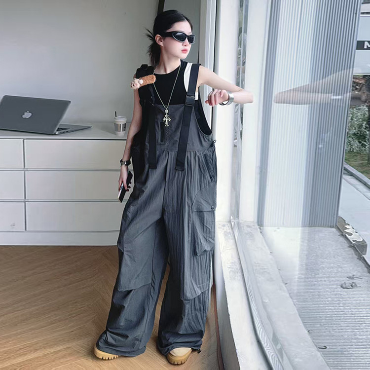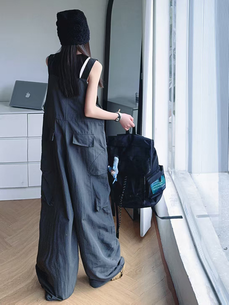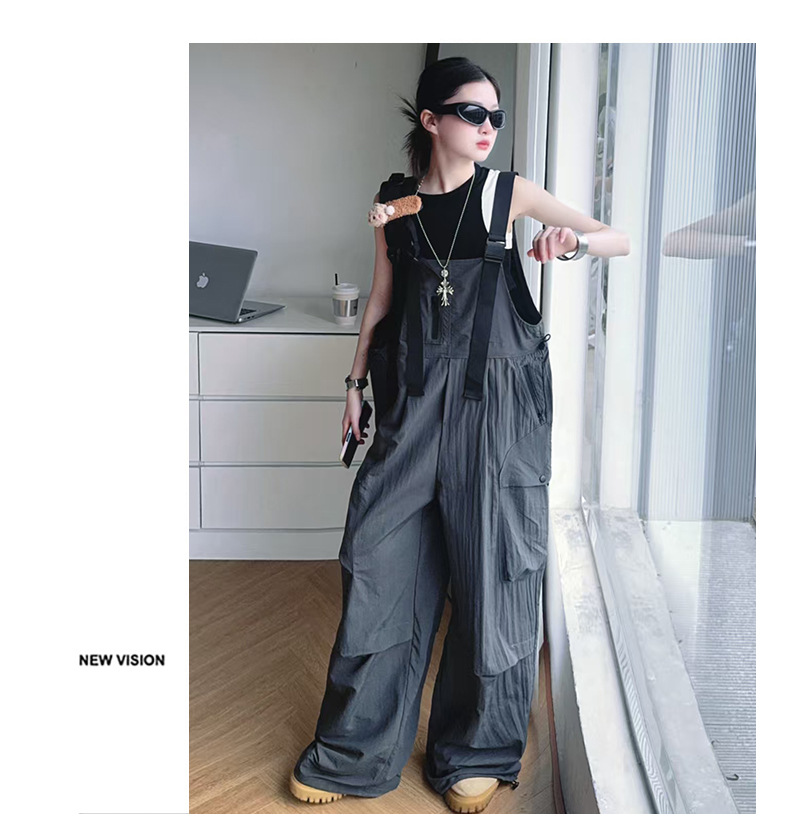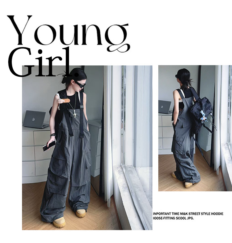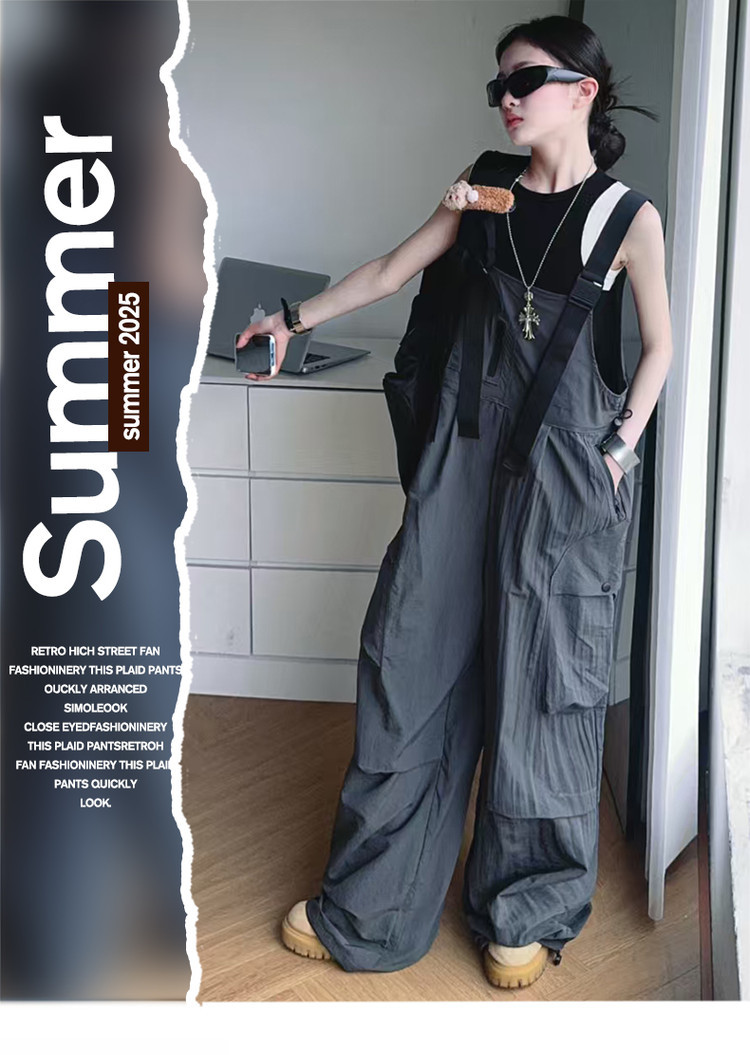 국경 간 소녀 2025 여름 새로운 미국 스타일 복고풍 패션 캐주얼 올 매치 오버올 스트레이트 느슨한 오버볼