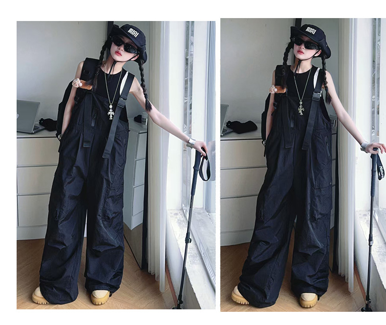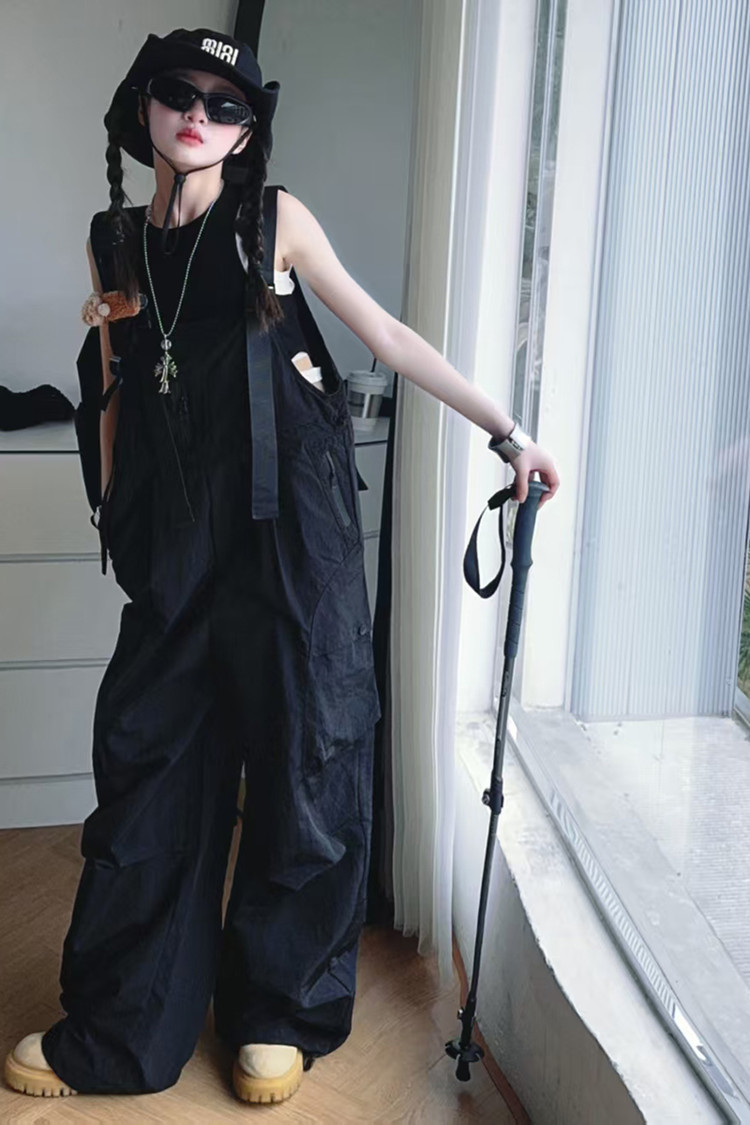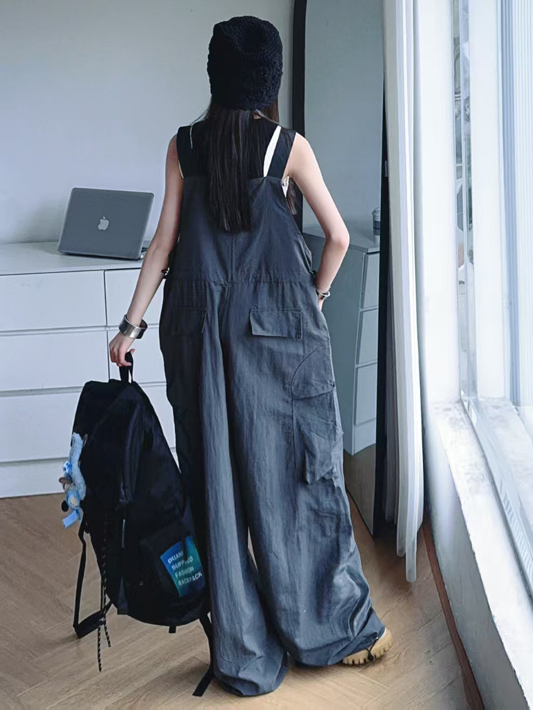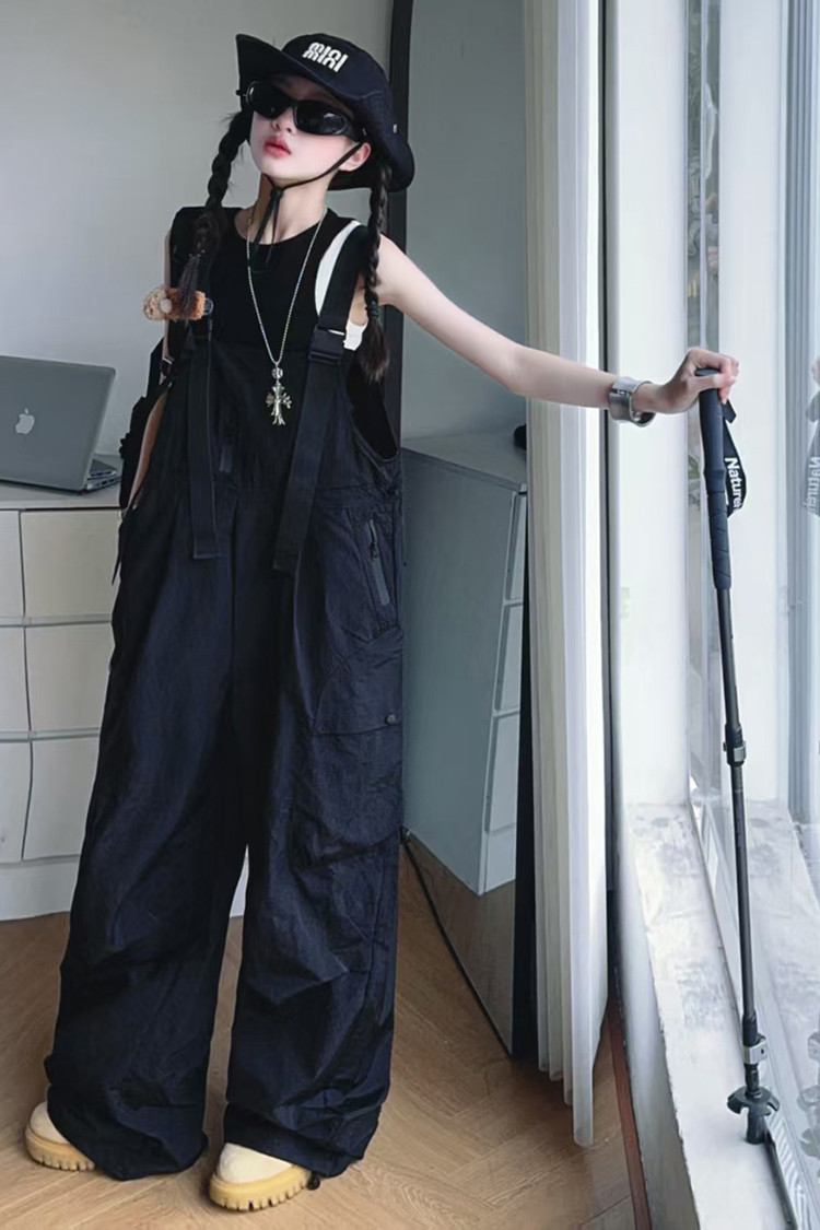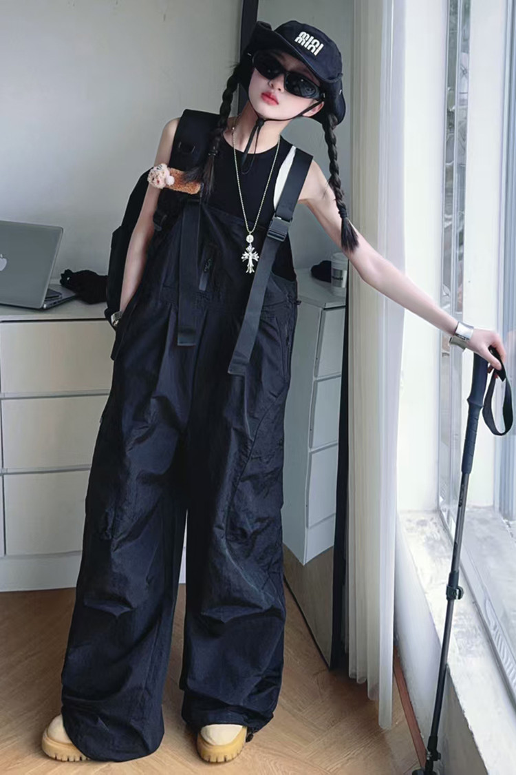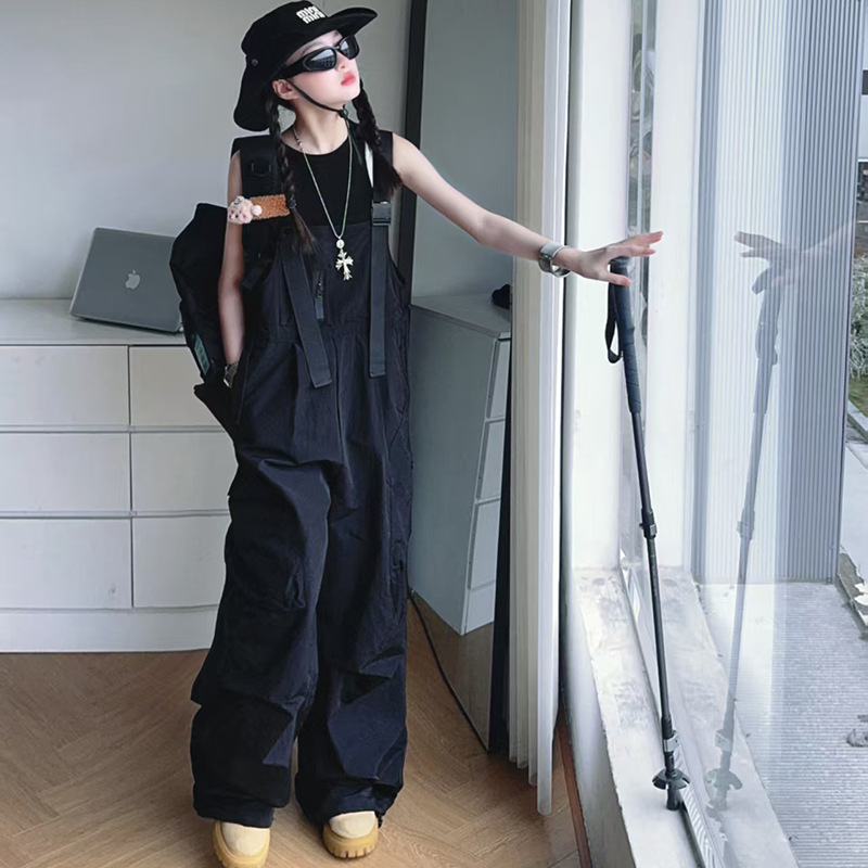 국경 간 소녀 2025 여름 새로운 미국 스타일 복고풍 패션 캐주얼 올 매치 오버올 스트레이트 느슨한 오버볼