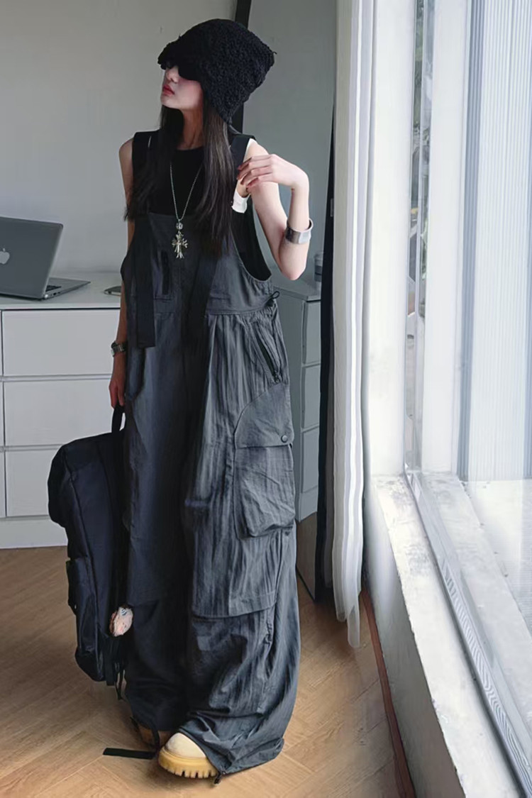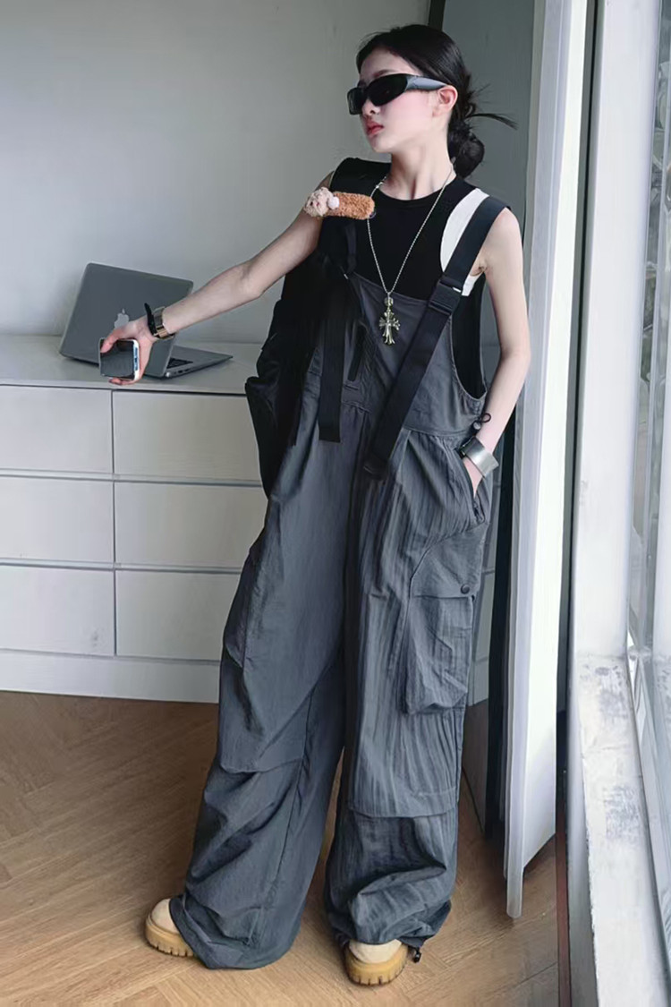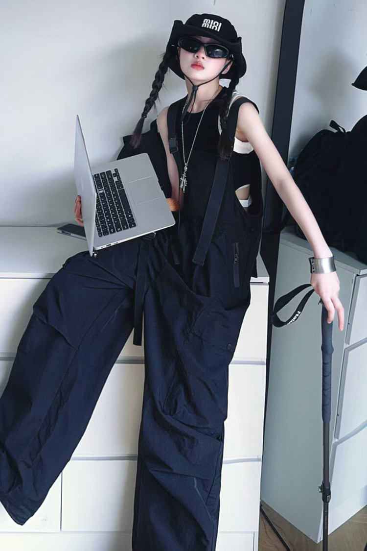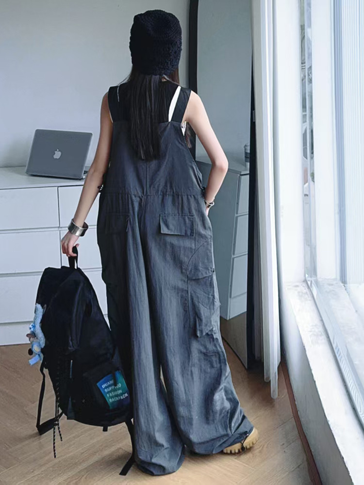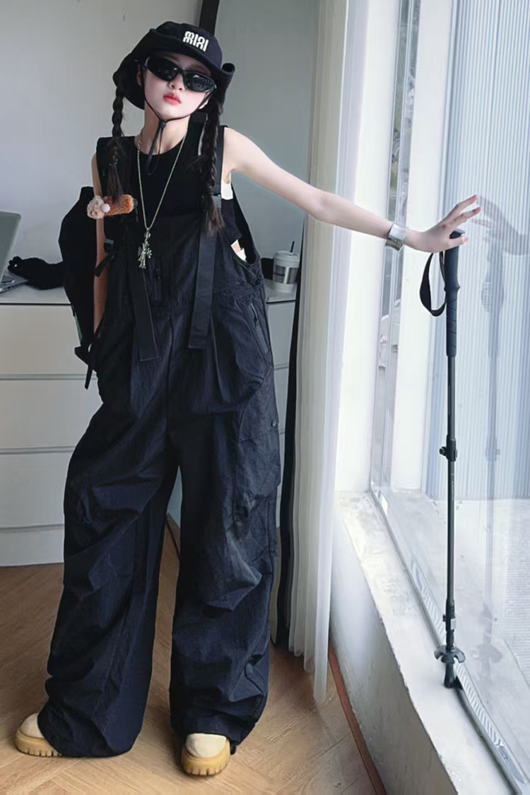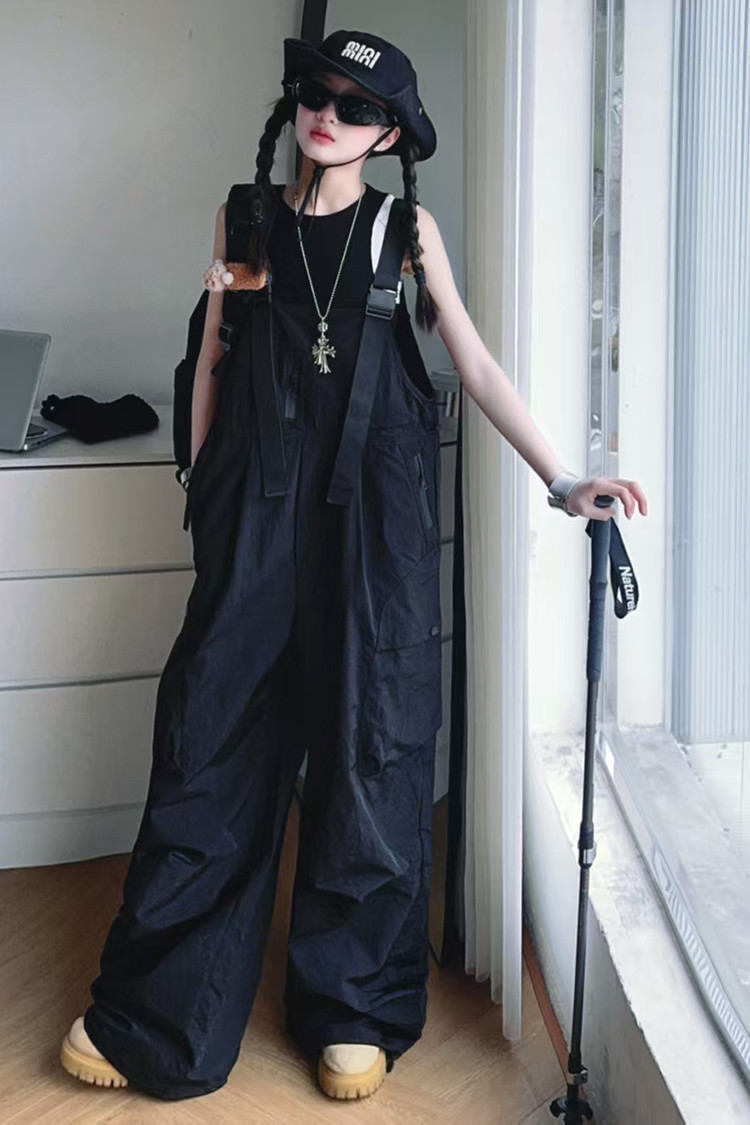 국경 간 소녀 2025 여름 새로운 미국 스타일 복고풍 패션 캐주얼 올 매치 오버올 스트레이트 느슨한 오버볼