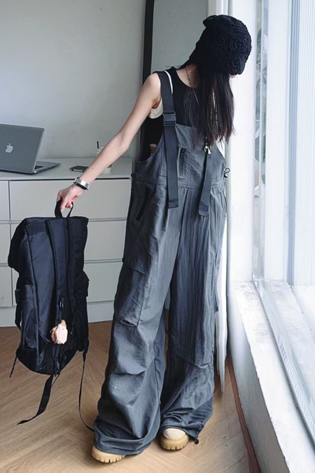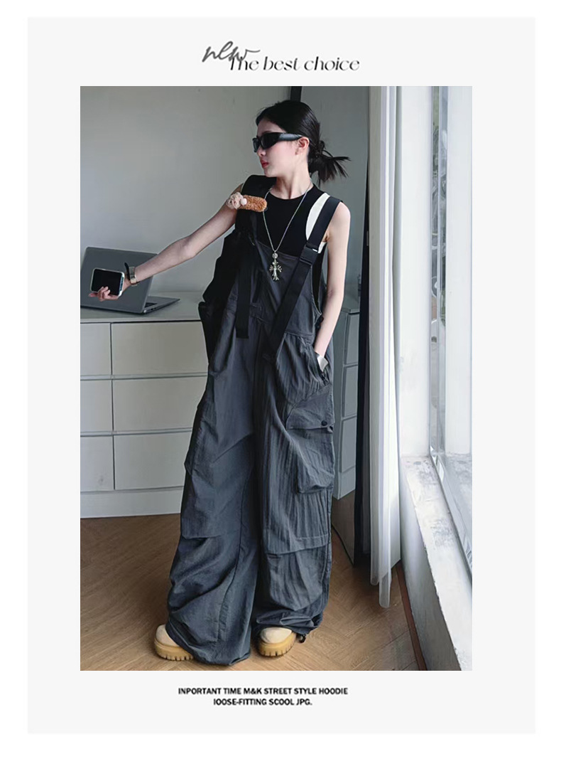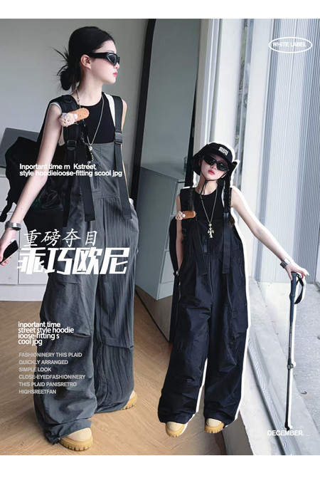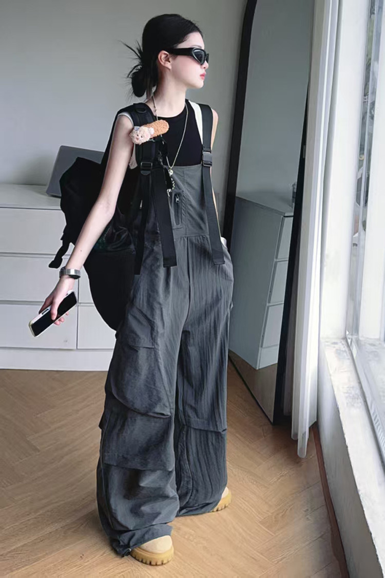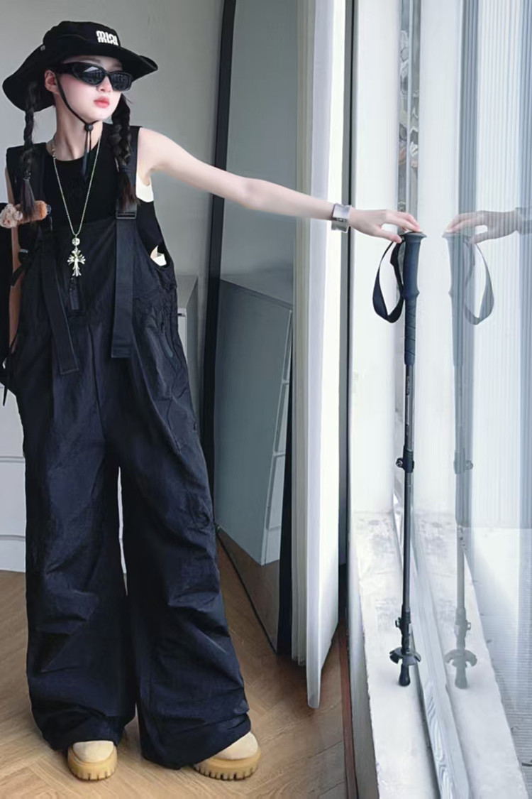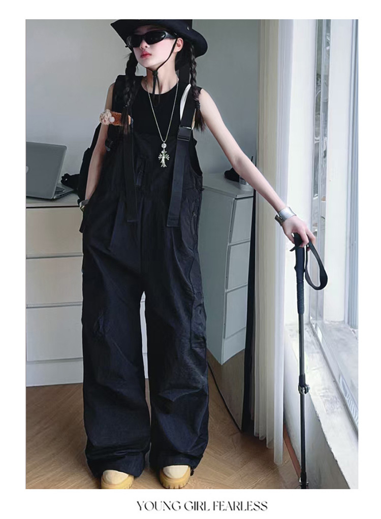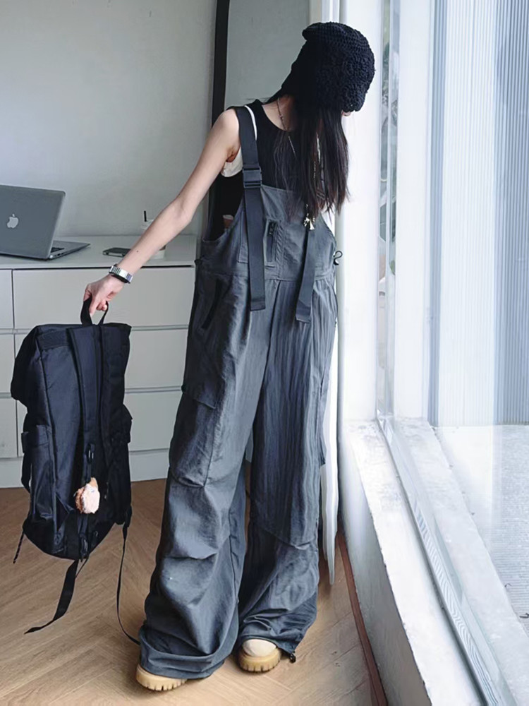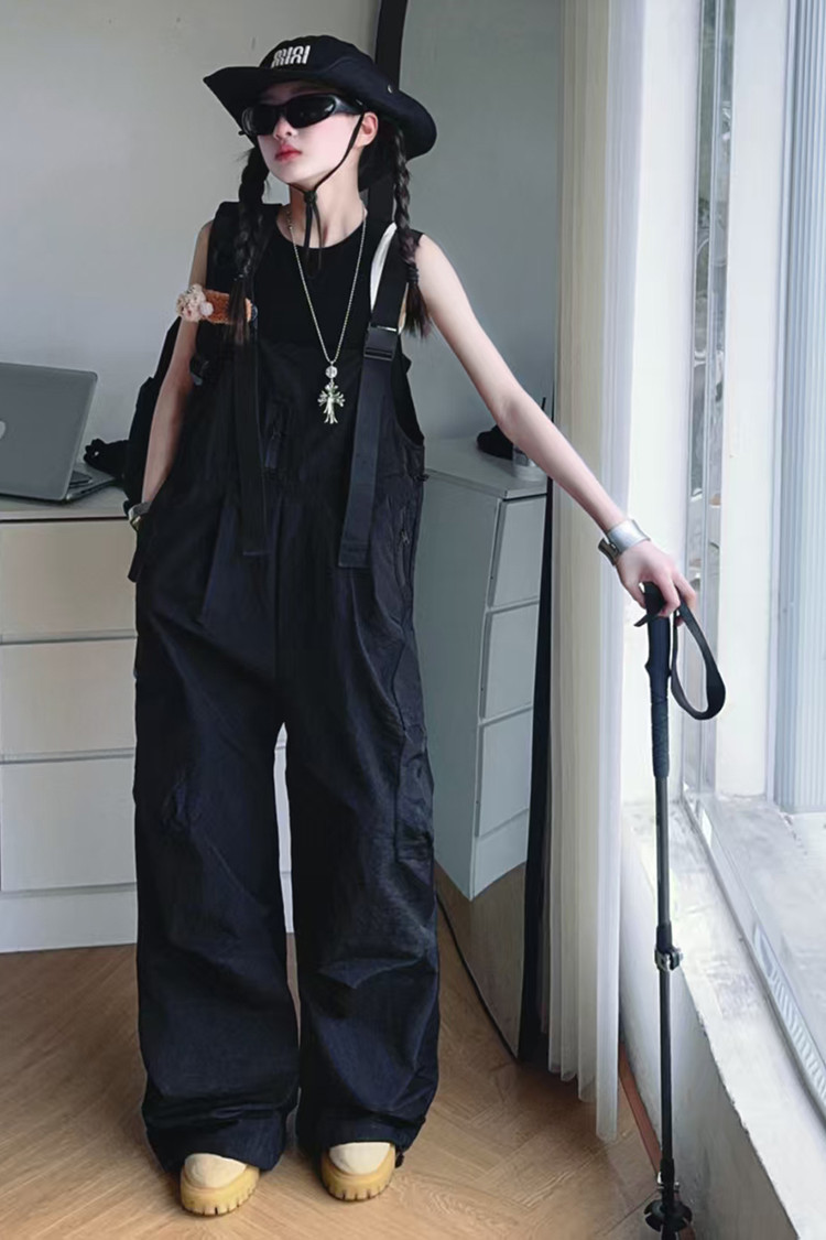 국경 간 소녀 2025 여름 새로운 미국 스타일 복고풍 패션 캐주얼 올 매치 오버올 스트레이트 느슨한 오버볼스토어 가기