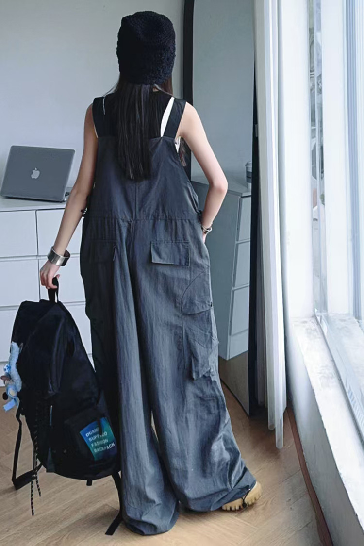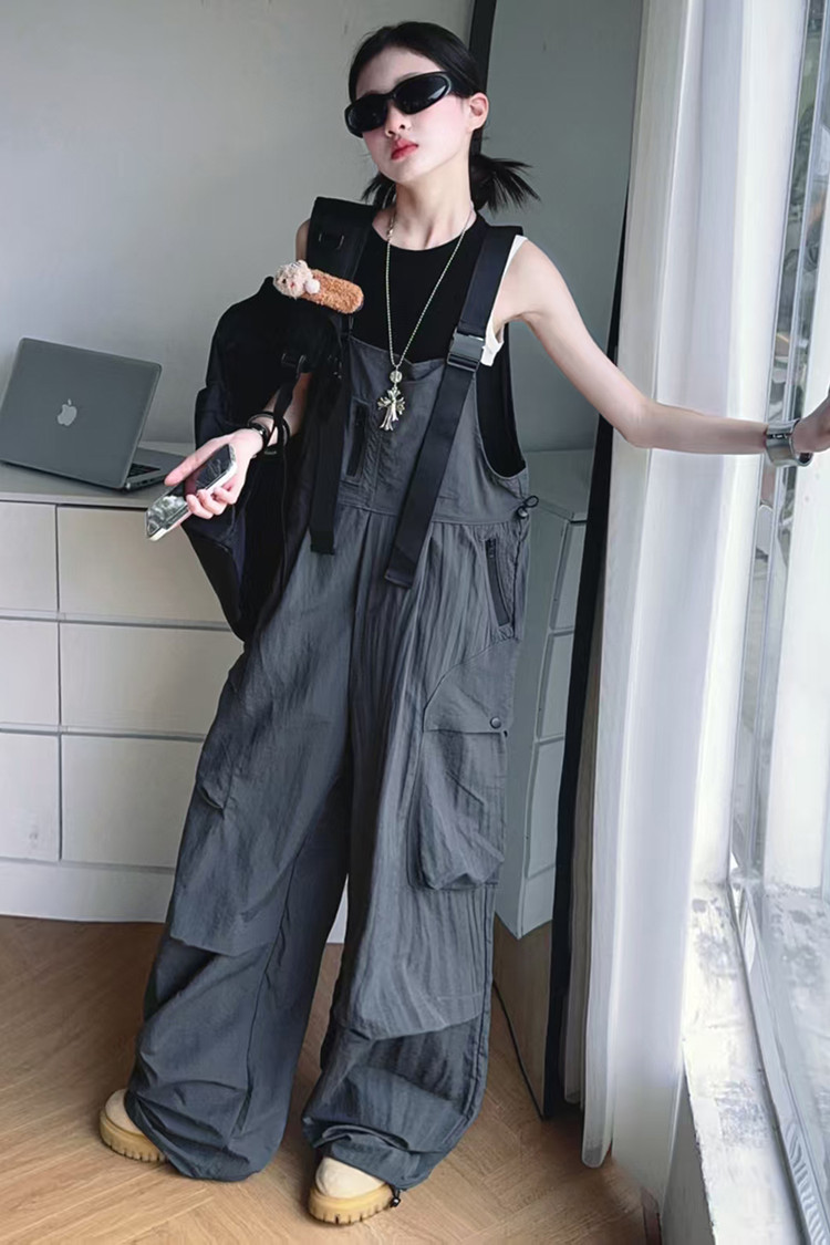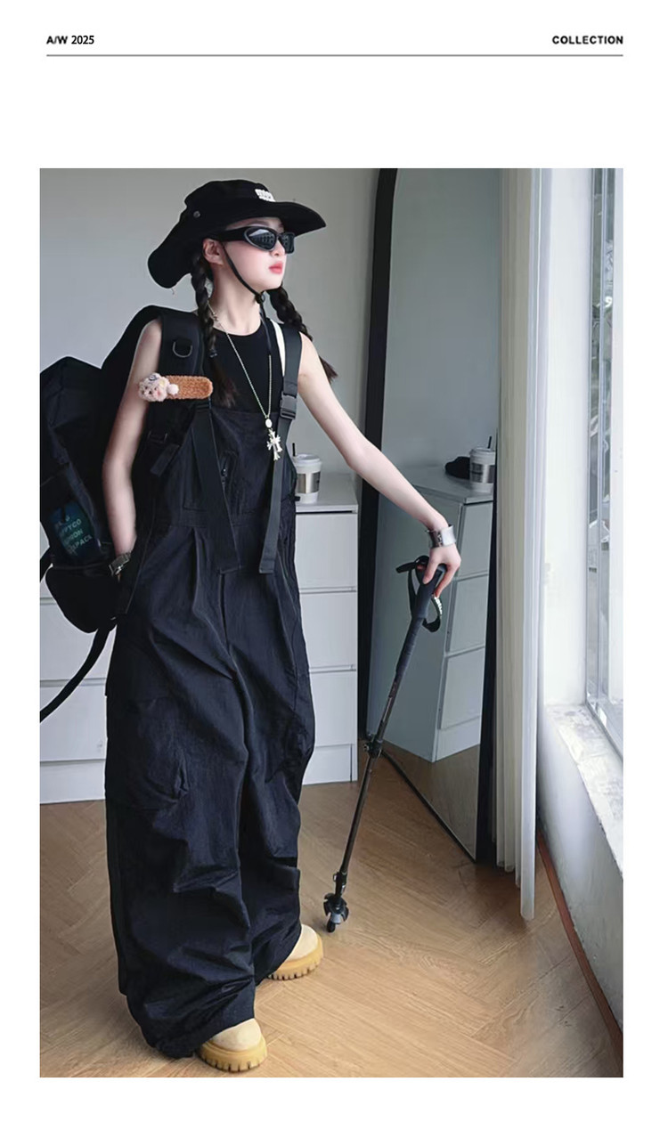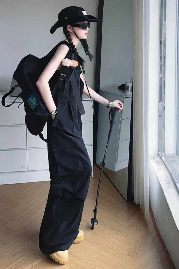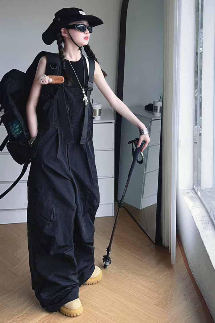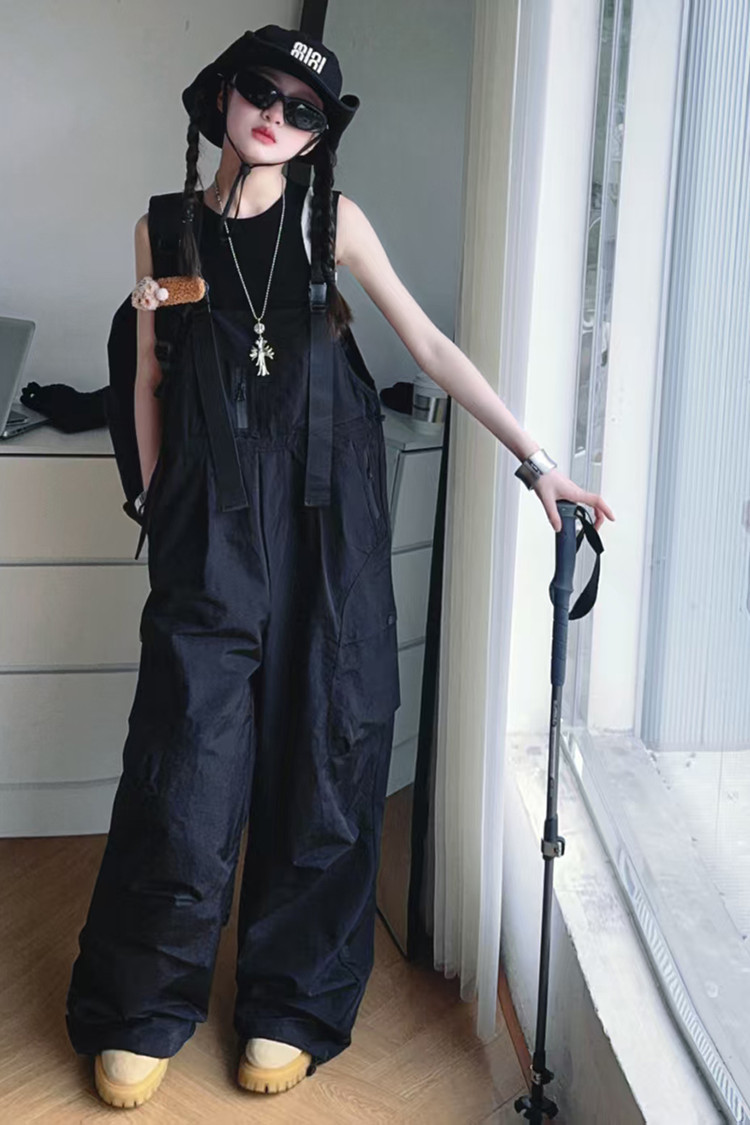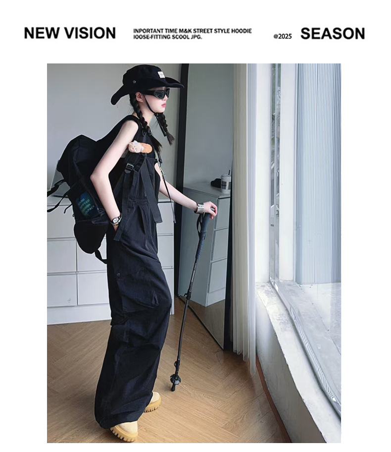 국경 간 소녀 2025 여름 새로운 미국 스타일 복고풍 패션 캐주얼 올 매치 오버올 스트레이트 느슨한 오버볼스토어 가기