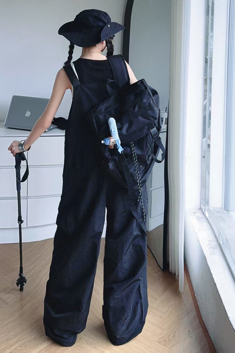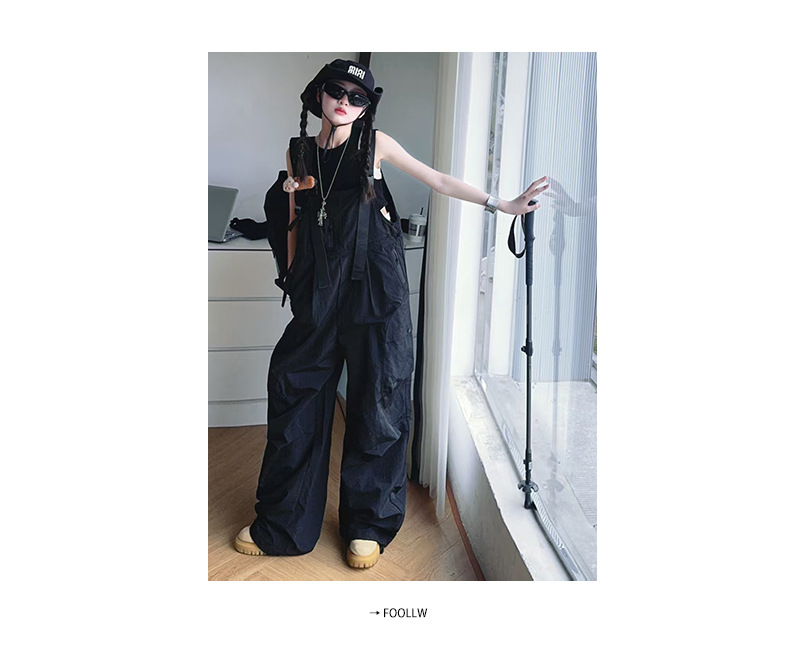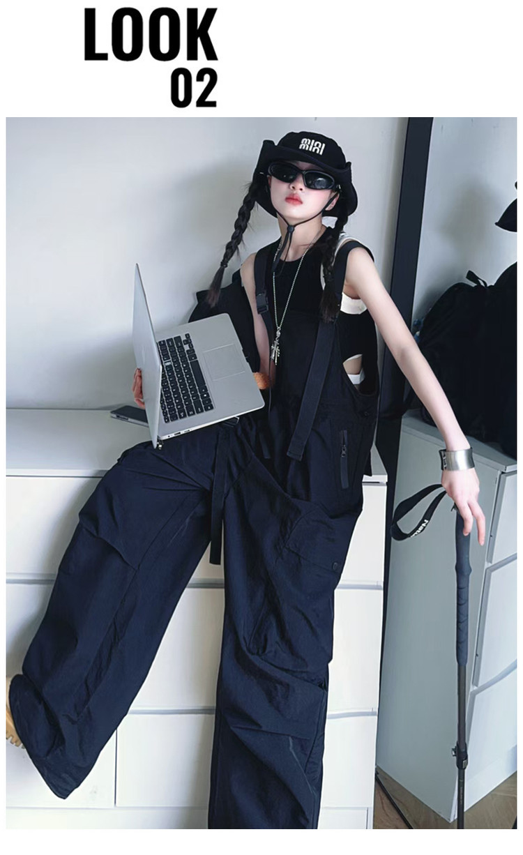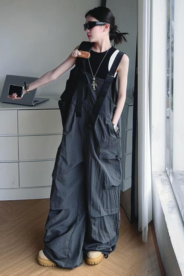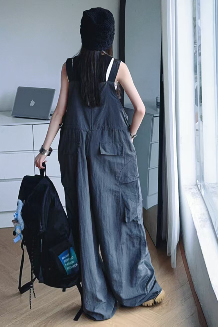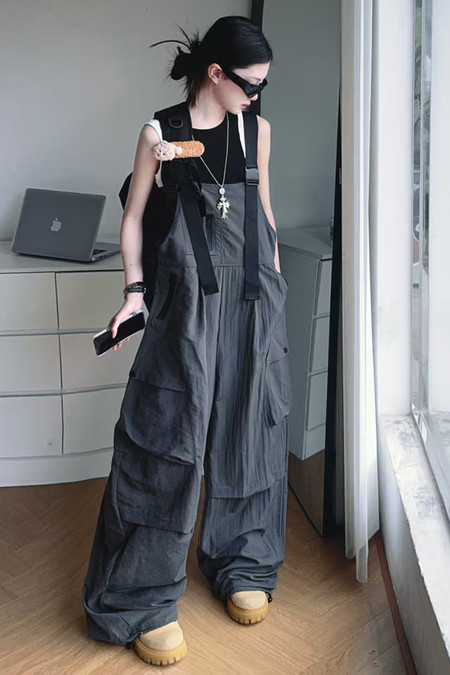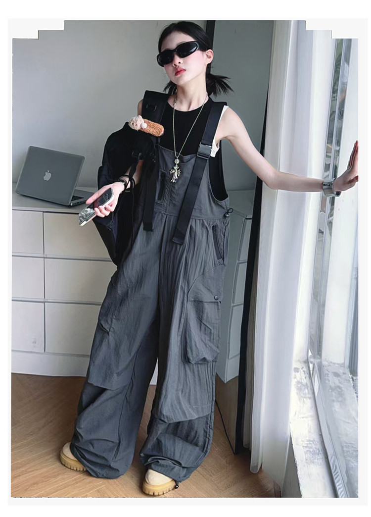 국경 간 소녀 2025 여름 새로운 미국 스타일 복고풍 패션 캐주얼 올 매치 오버올 스트레이트 느슨한 오버볼스토어 가기