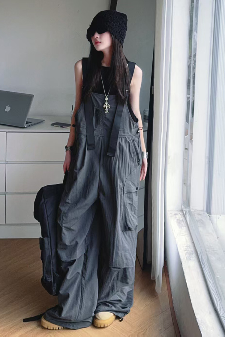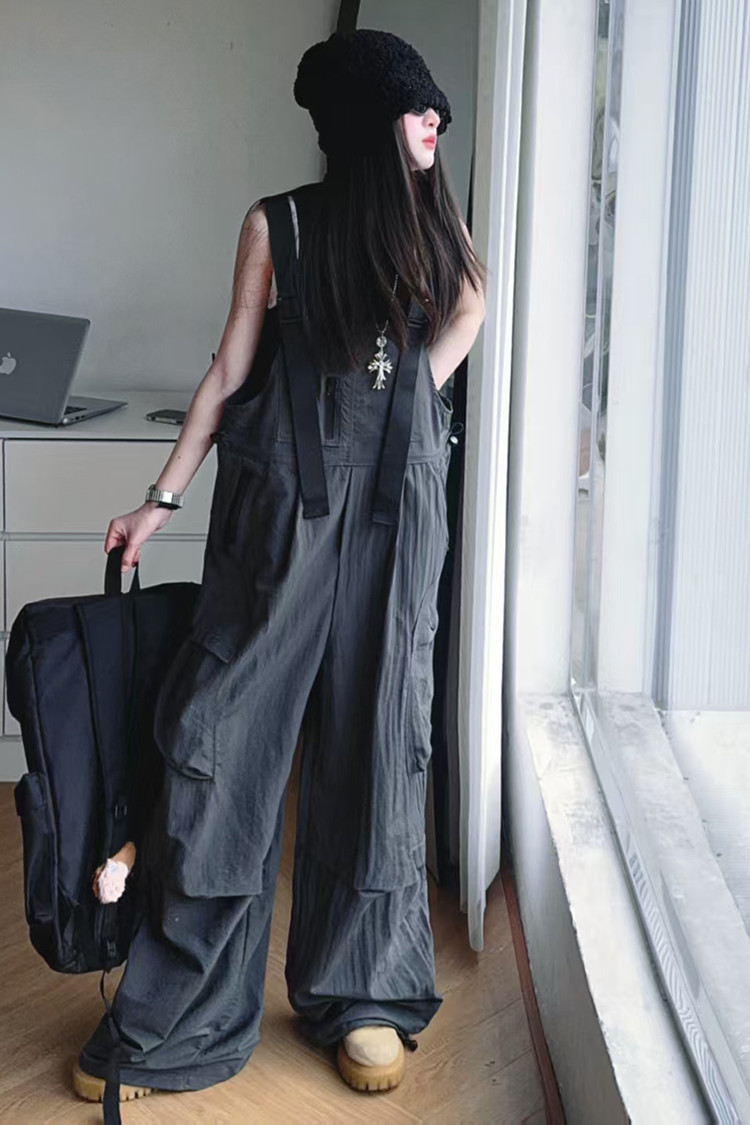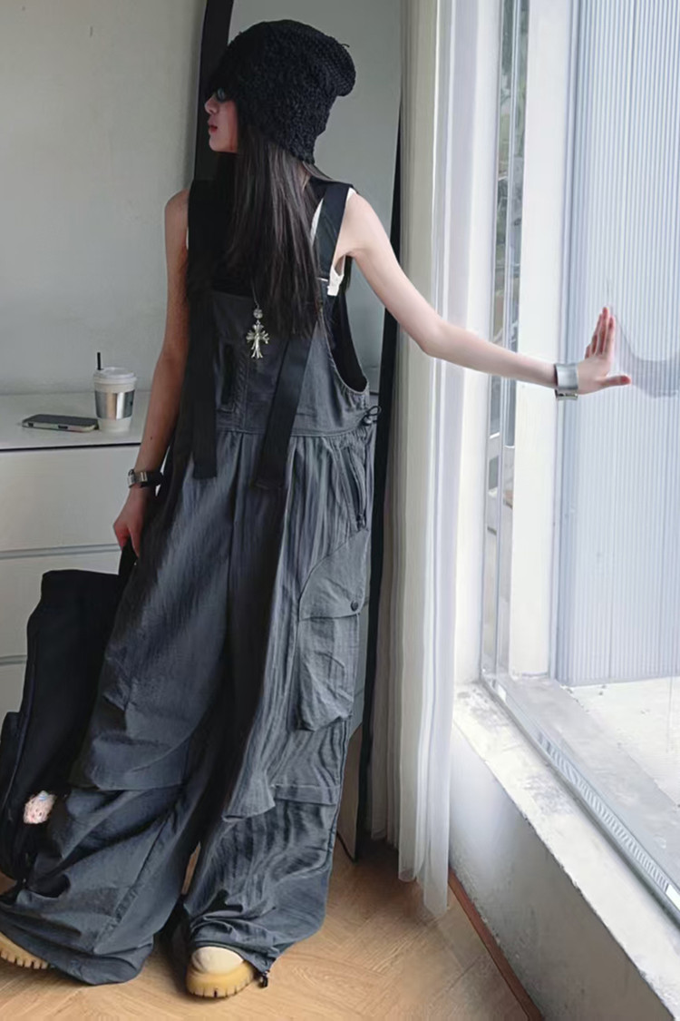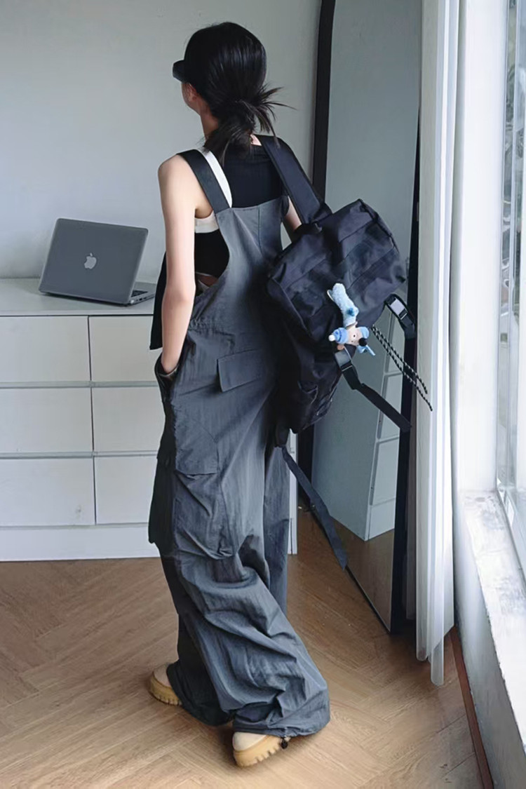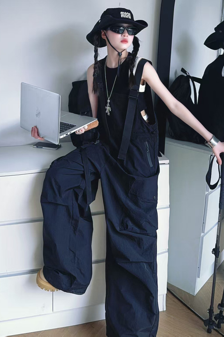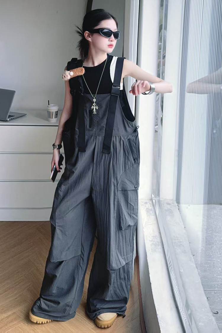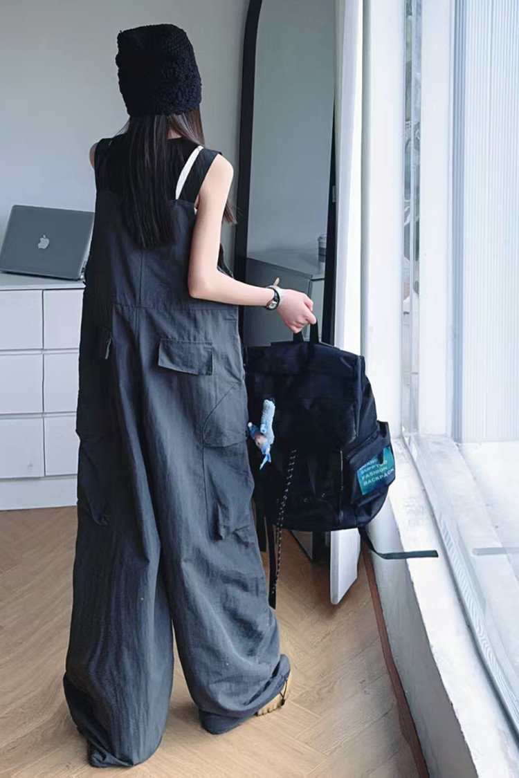 국경 간 소녀 2025 여름 새로운 미국 스타일 복고풍 패션 캐주얼 올 매치 오버올 스트레이트 느슨한 오버볼스토어 가기
