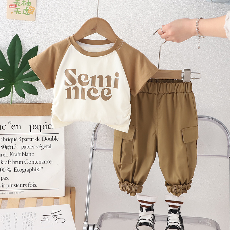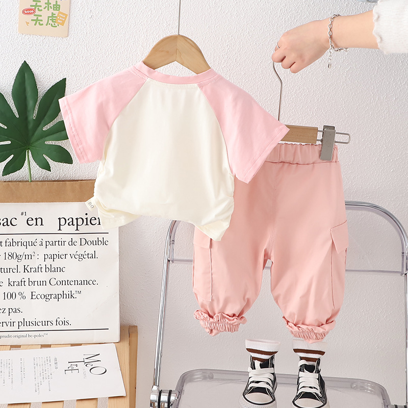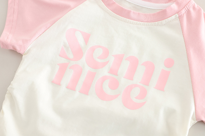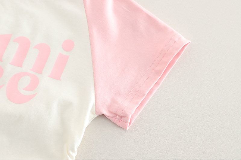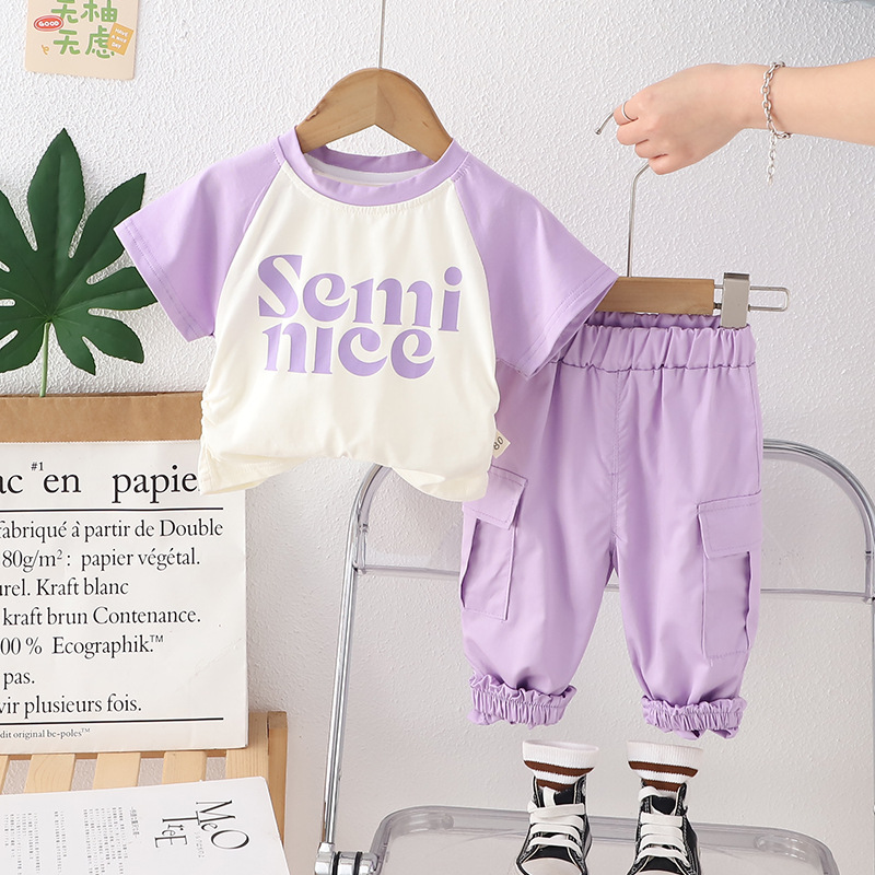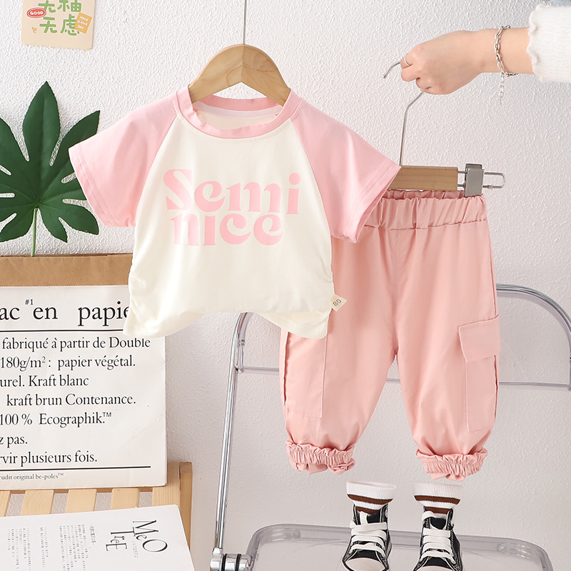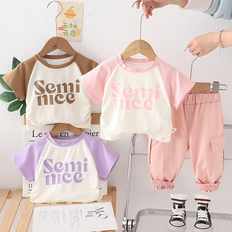 2025년 여름 어린이 영어 라운드 넥 스타일 반팔 바지 정장 유행 여름 소녀 아기 반팔 정장스토어 가기