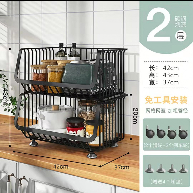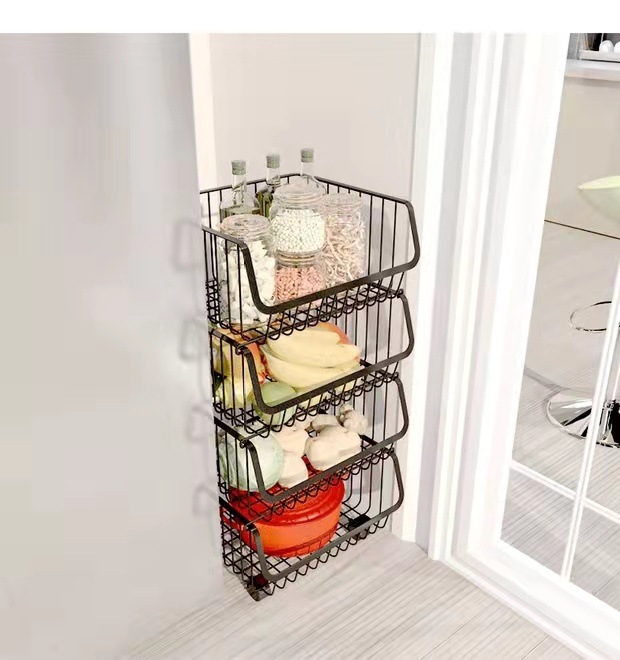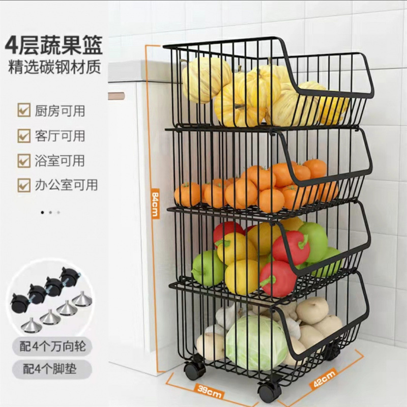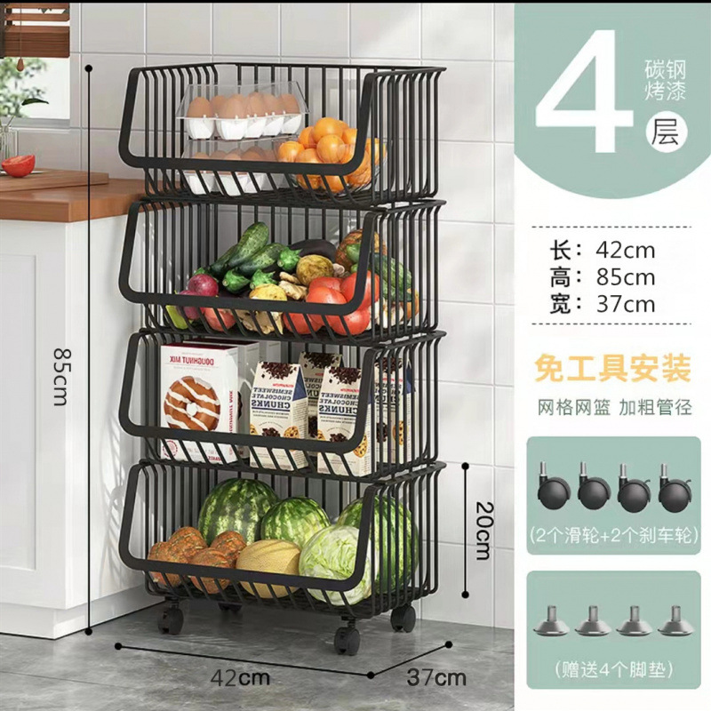 • 상단 바구니가 있는 4단 메쉬 야채 랙