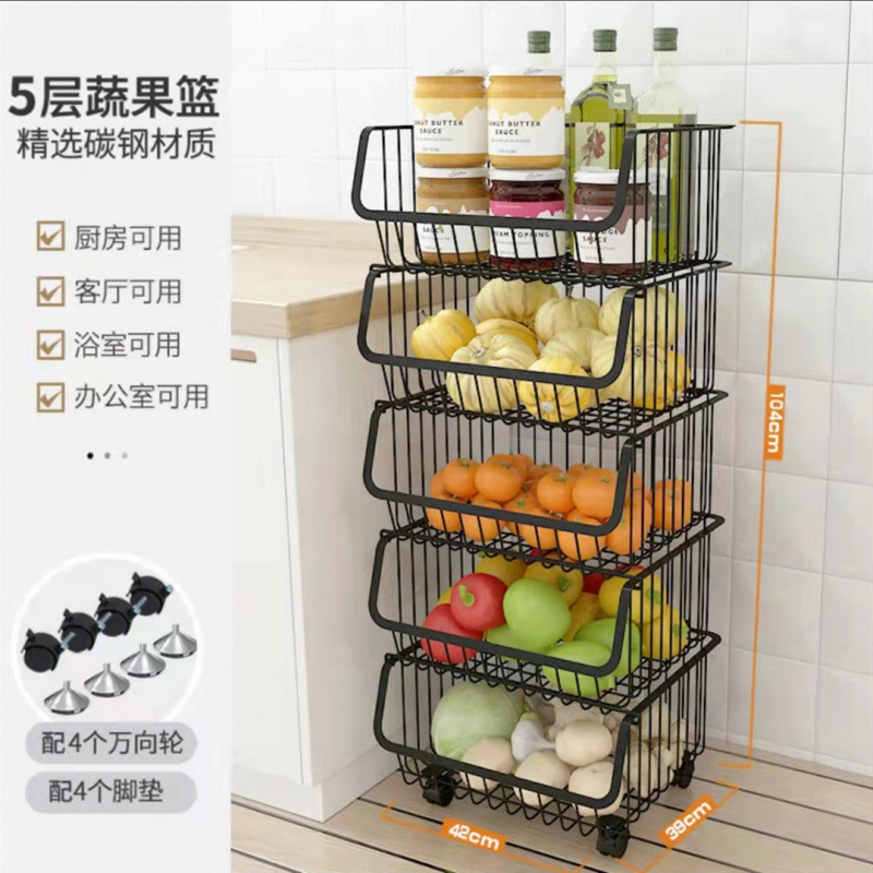 • 누수 방지 패드와 상단 바구니가 포함된 5단 야채 랙