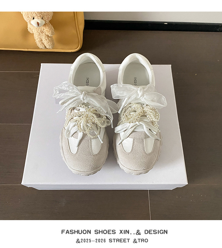 2025 진주 매듭 도덕적 훈련 신발 증가 발레 스타일 forrest gump 신발 가죽 캐주얼 신발 다용도 7cm 여성 증가
