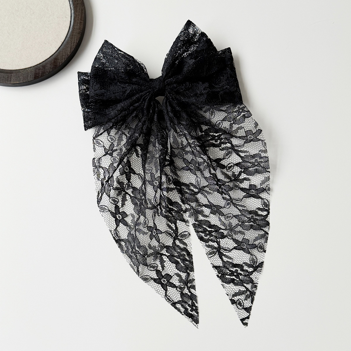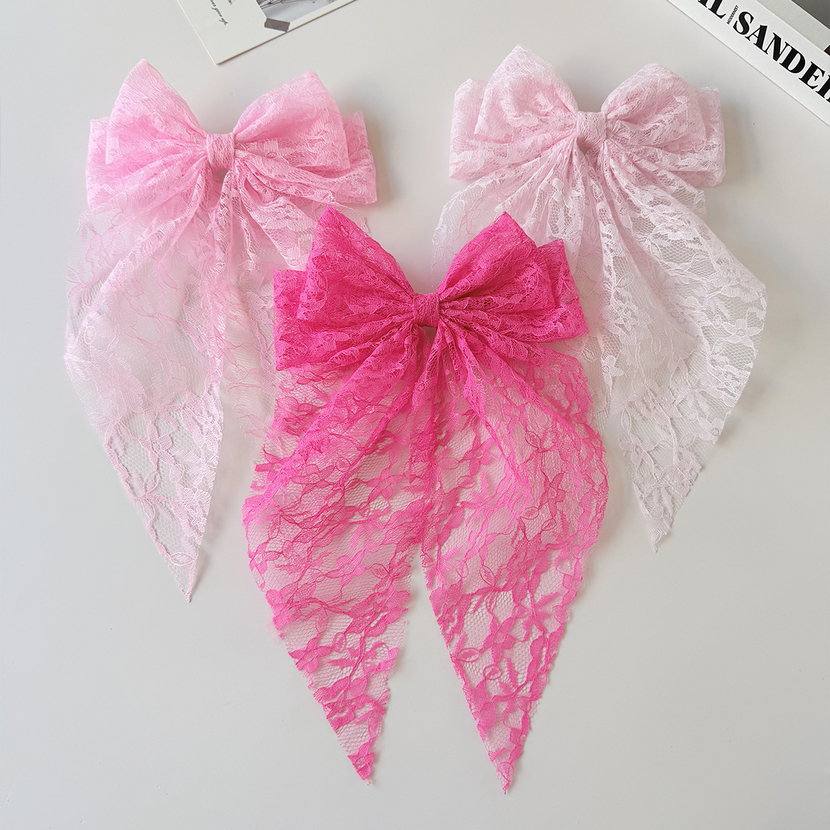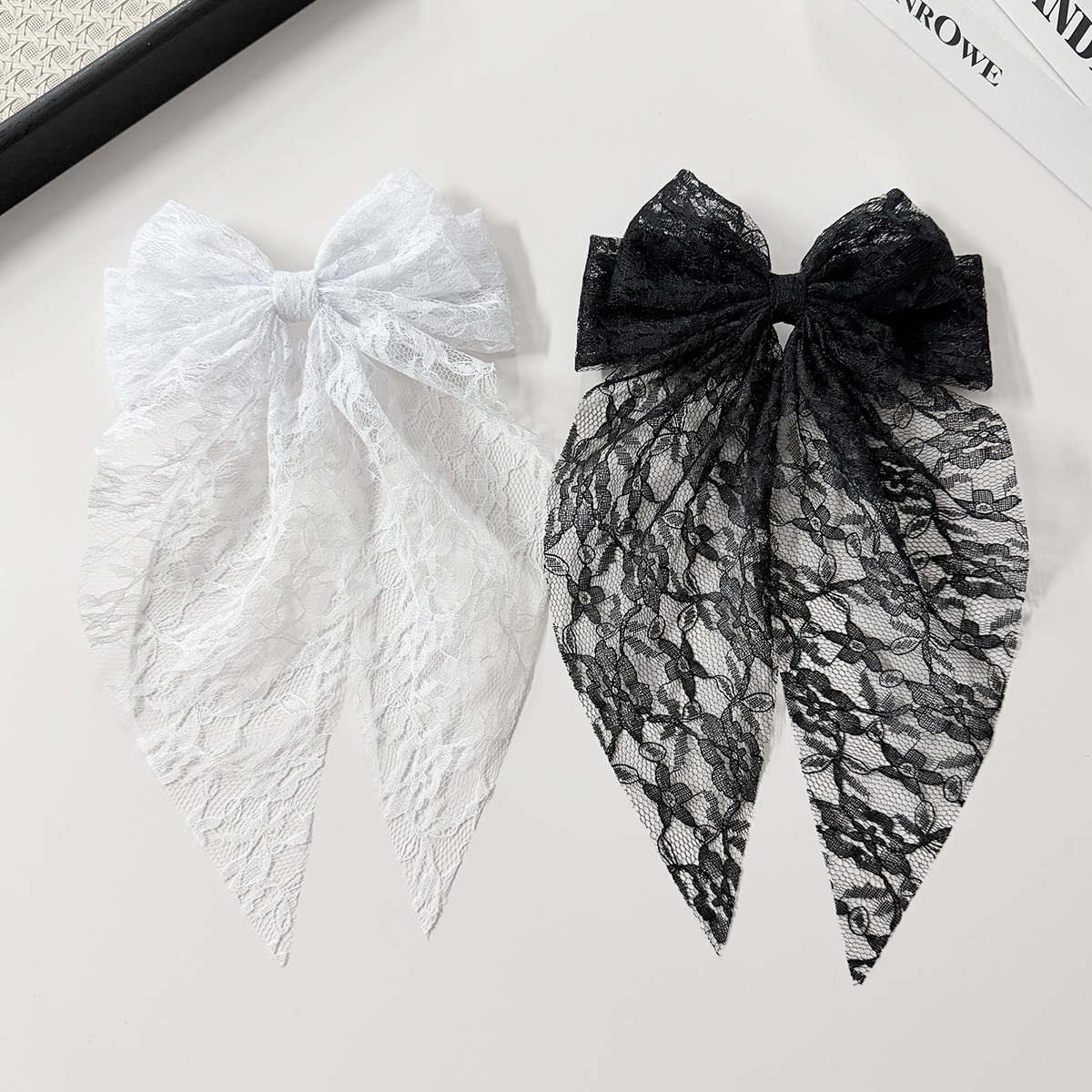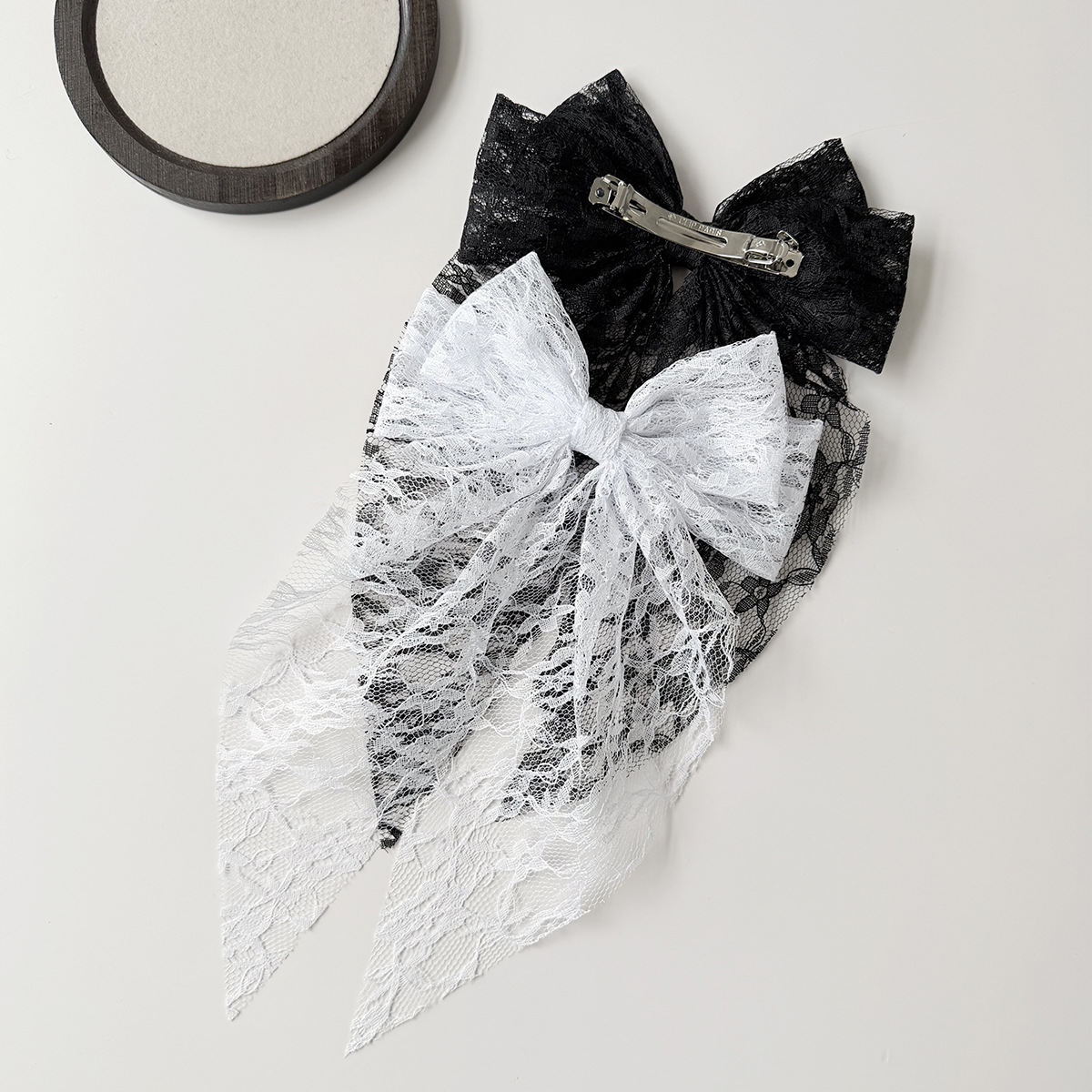 국경을 넘어 인기 있는 우아한 레이스 리본 스프링 클립 여성용 달콤하고 아름다운 스타일의 머리 뒤쪽 리본 머리핀 헤어 액세서리