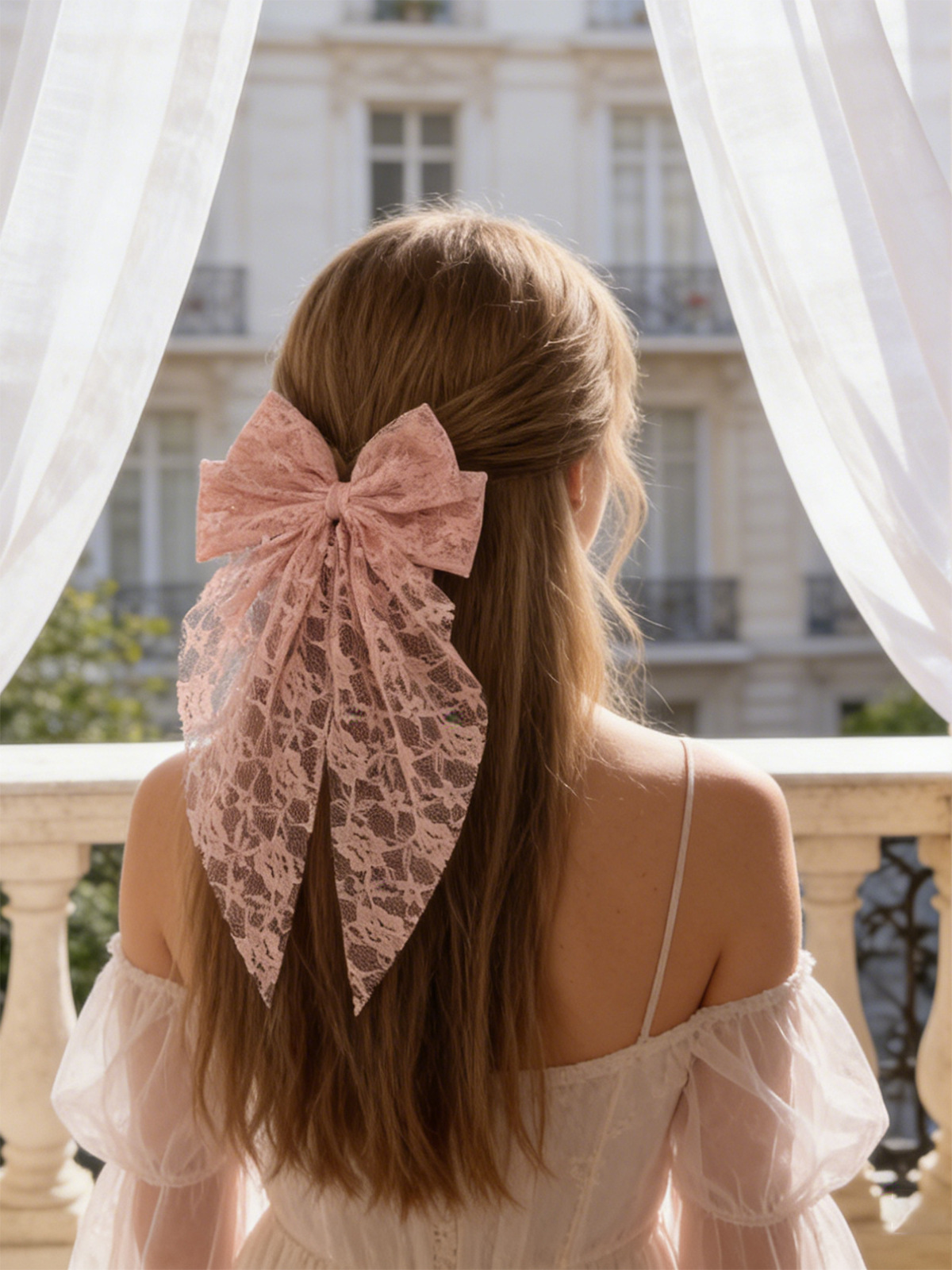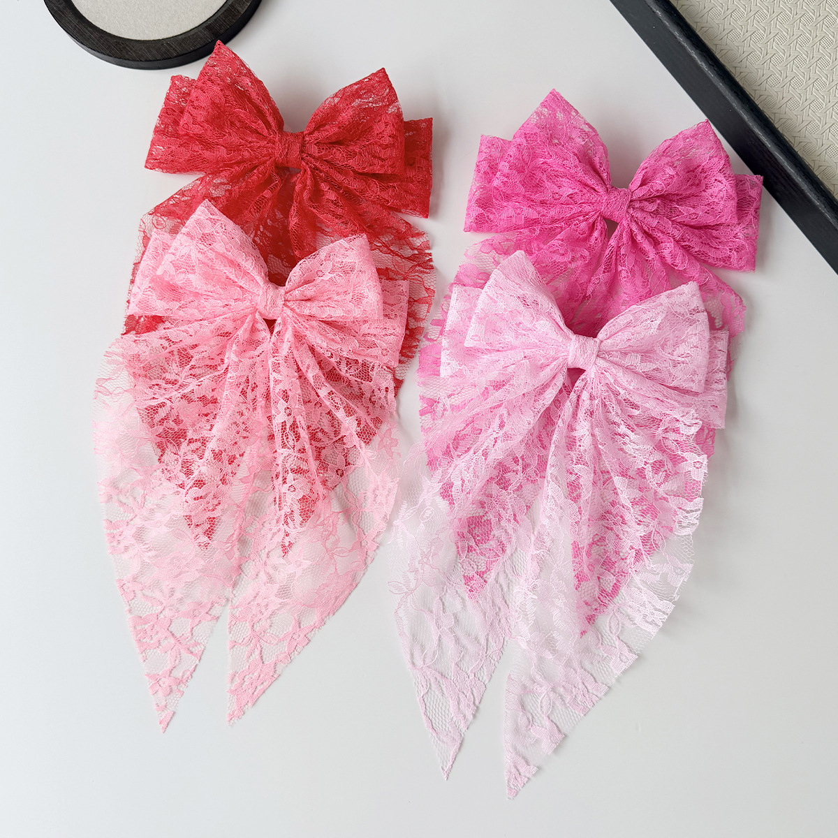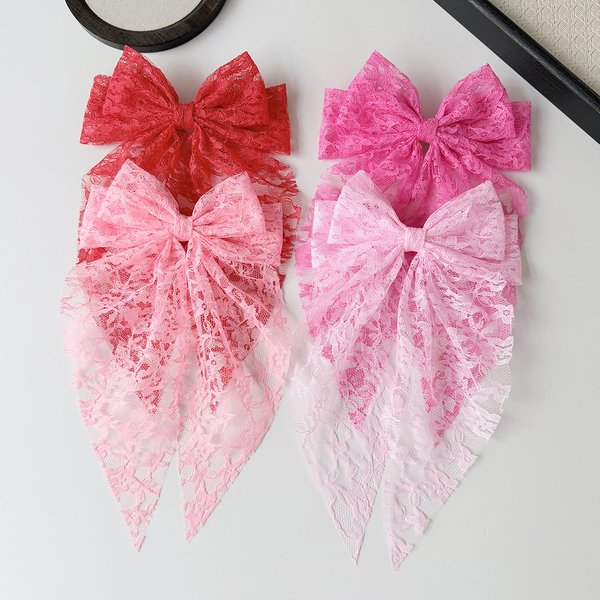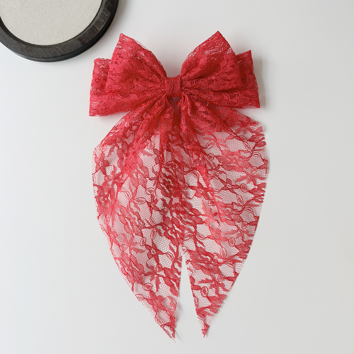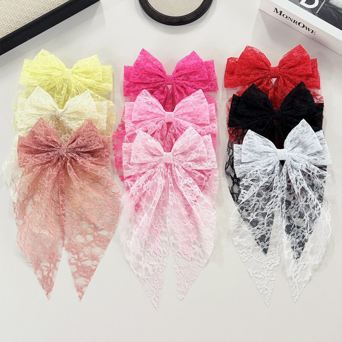 국경을 넘어 인기 있는 우아한 레이스 리본 스프링 클립 여성용 달콤하고 아름다운 스타일의 머리 뒤쪽 리본 머리핀 헤어 액세서리