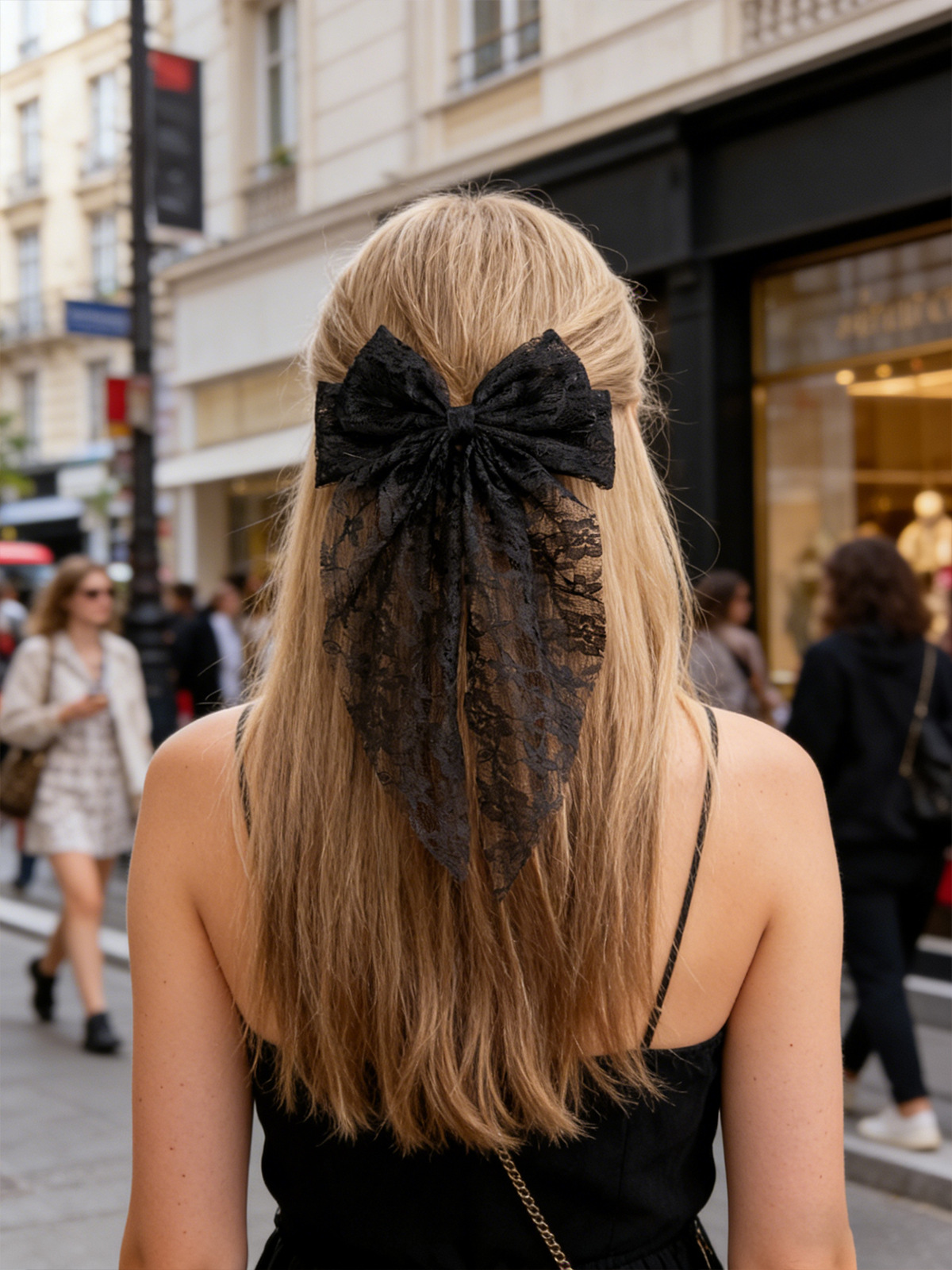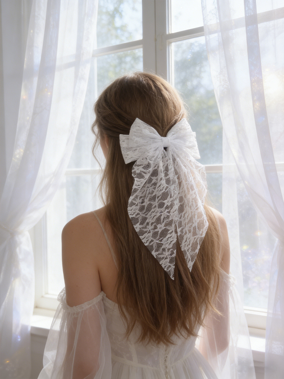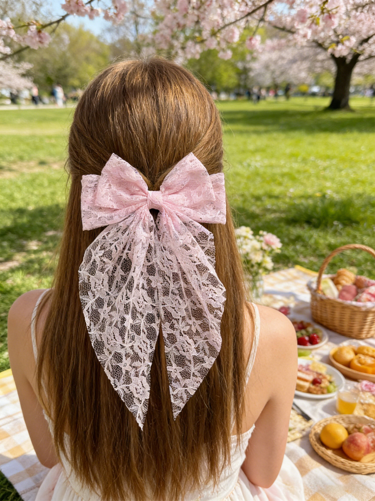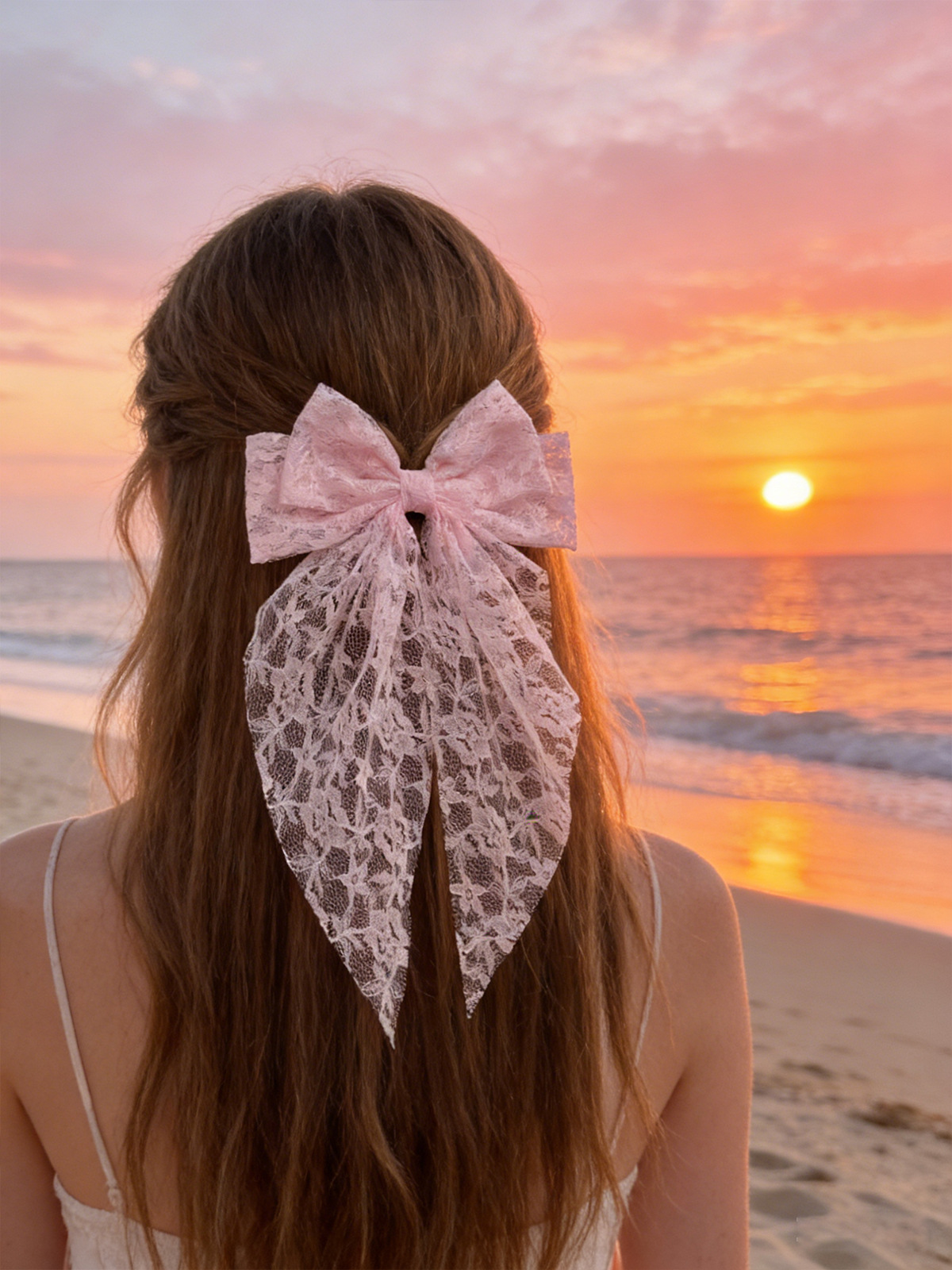 국경을 넘어 인기 있는 우아한 레이스 리본 스프링 클립 여성용 달콤하고 아름다운 스타일의 머리 뒤쪽 리본 머리핀 헤어 액세서리