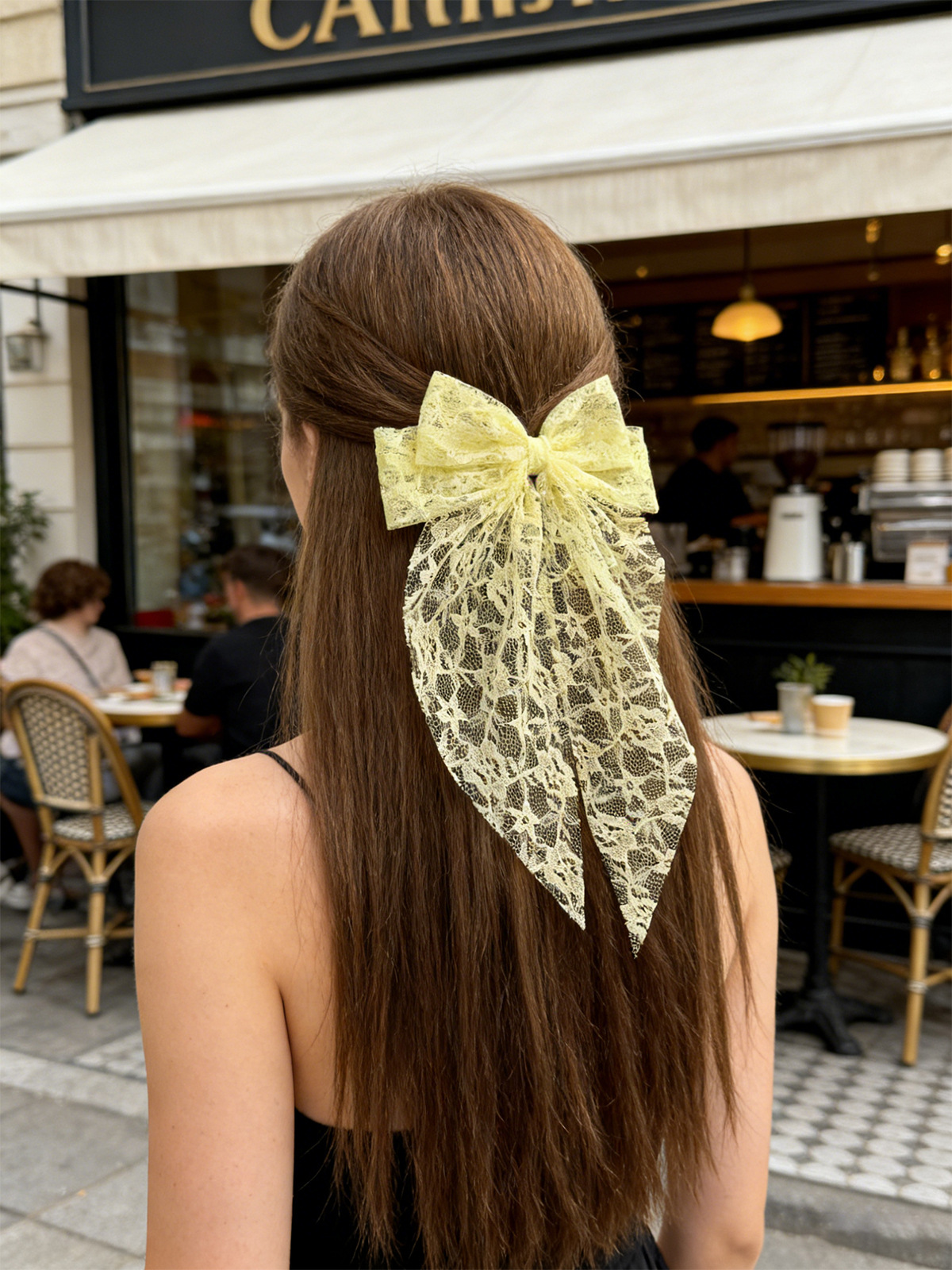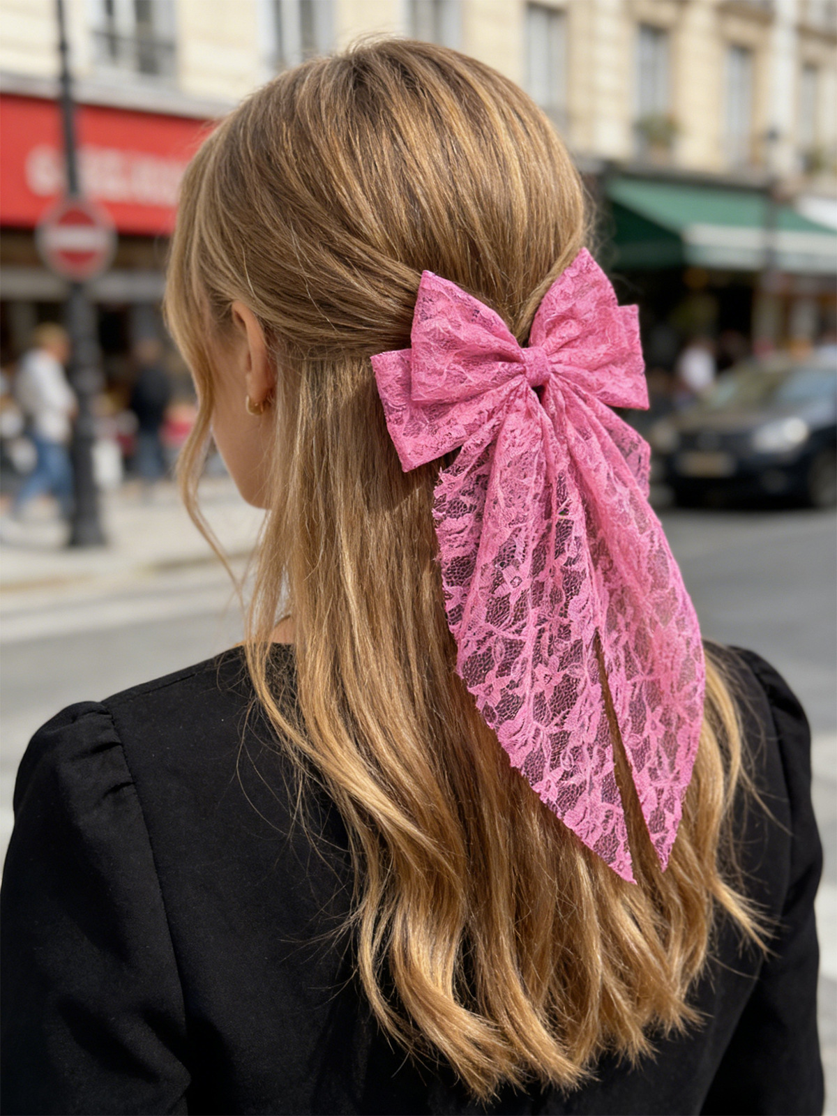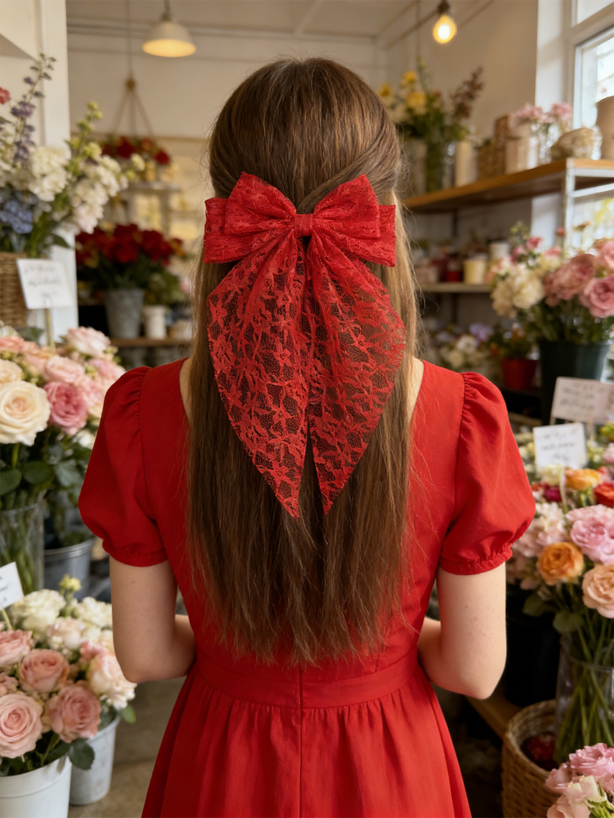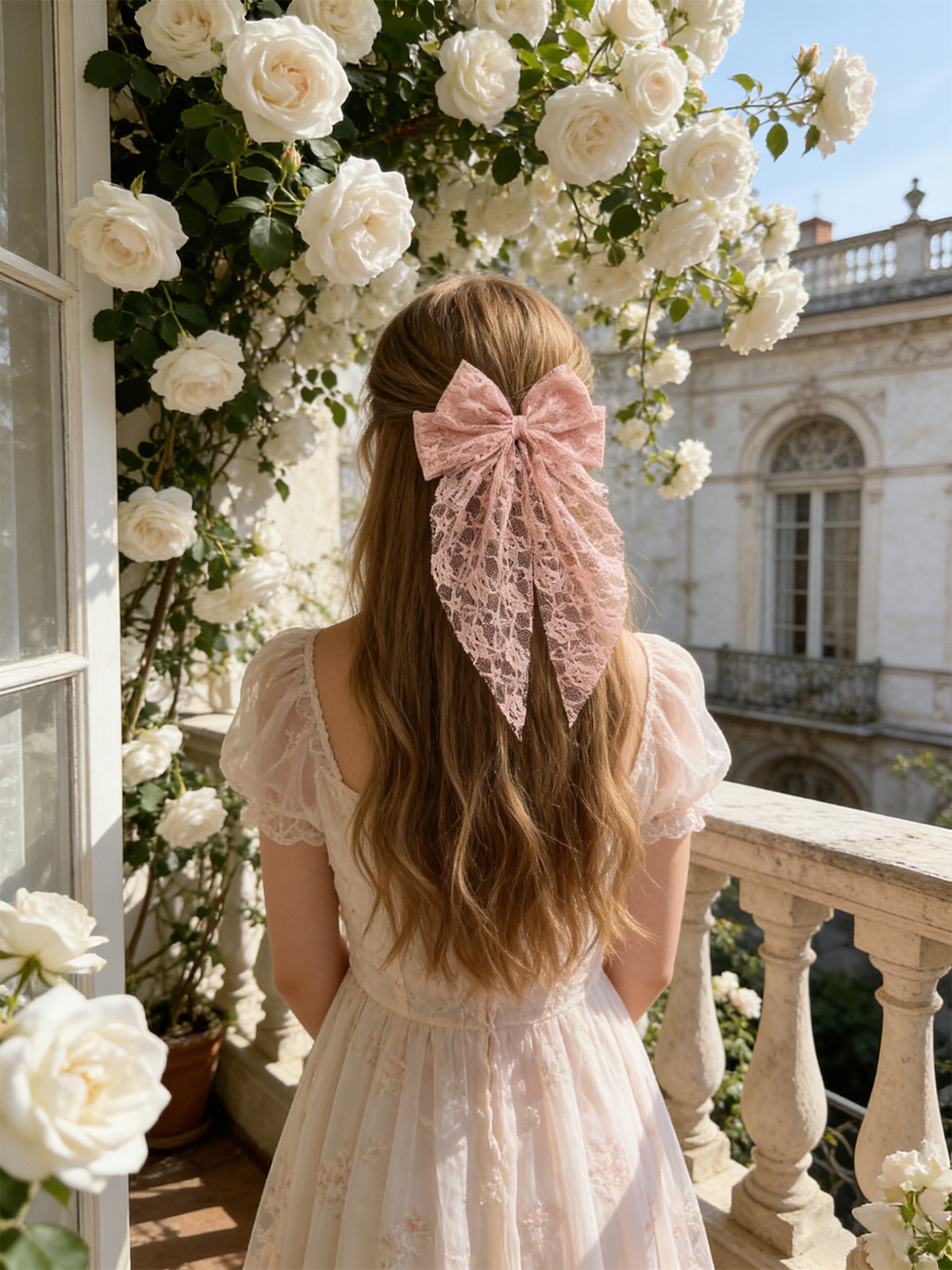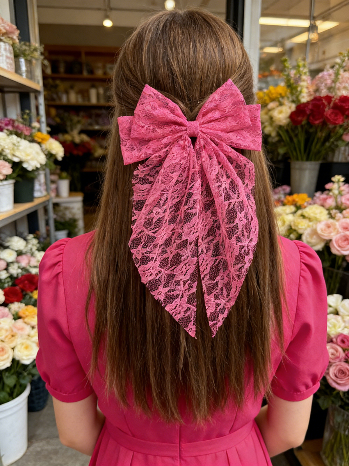국경을 넘어 인기 있는 우아한 레이스 리본 스프링 클립 여성용 달콤하고 아름다운 스타일의 머리 뒤쪽 리본 머리핀 헤어 액세서리