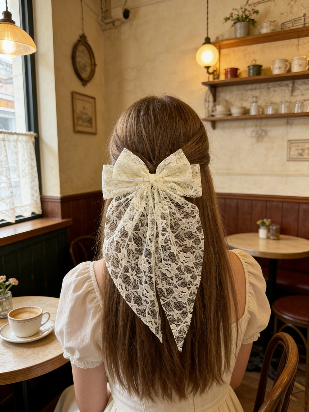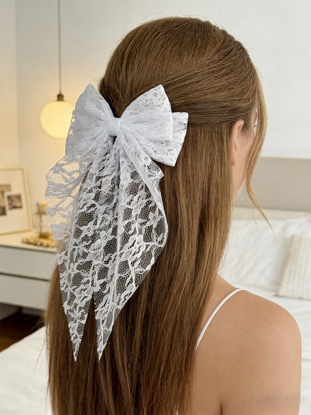 국경을 넘어 인기 있는 우아한 레이스 리본 스프링 클립 여성용 달콤하고 아름다운 스타일의 머리 뒤쪽 리본 머리핀 헤어 액세서리스토어 가기