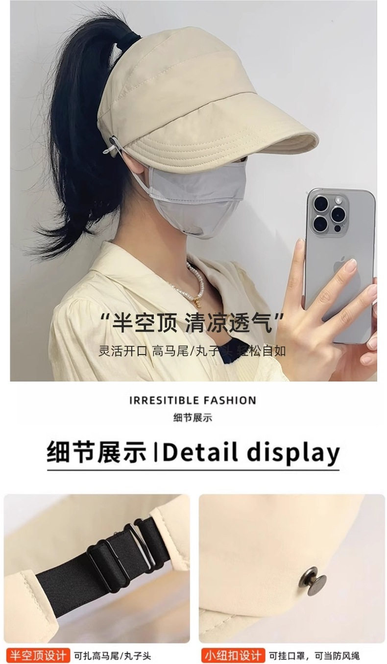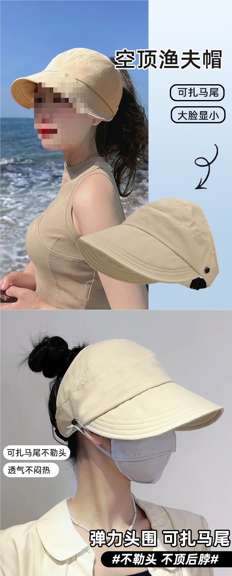여성용 자외선 차단 모자 Zhao Lusi 2025 새로운 어부 모자 태양 표시 작은 빈 상단 속건성 마스크가 달린 태양 모자