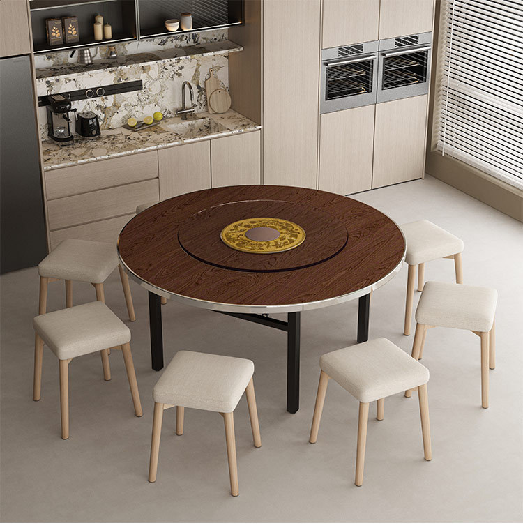 r^r^단단한 나무 식탁 대형 원형 테이블 가정용 농촌 접이식 식탁 10인용 12인용 턴테이블 식탁 나무 테이블스토어 가기