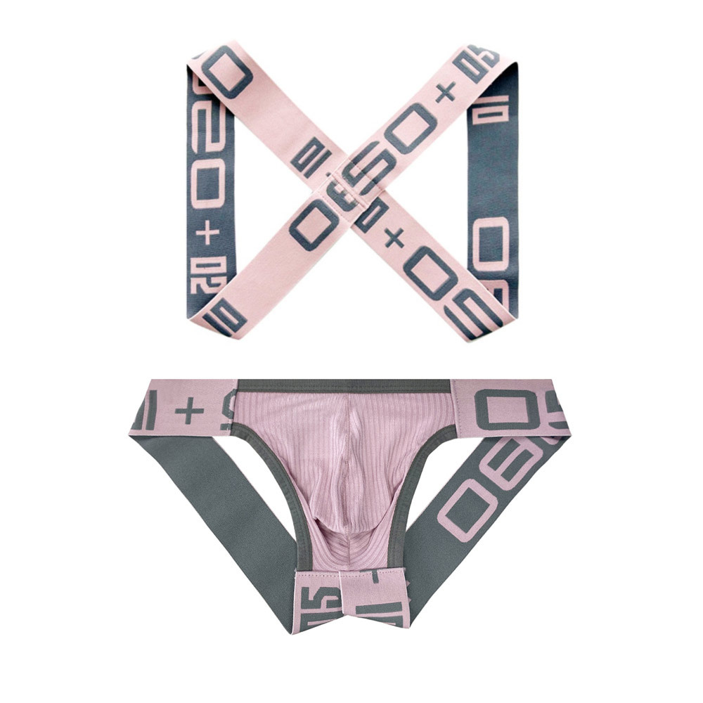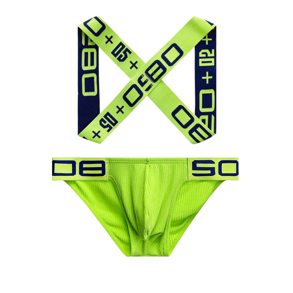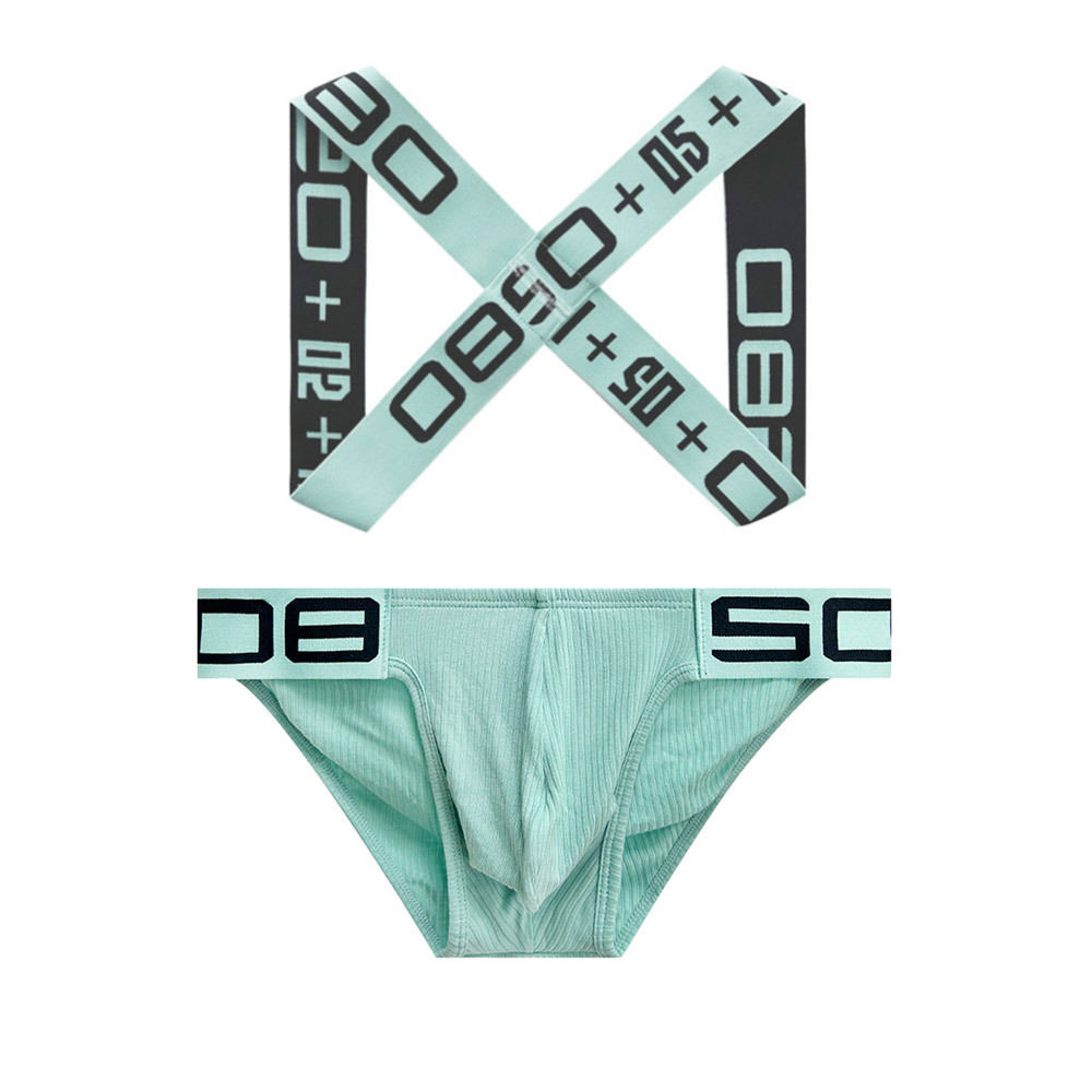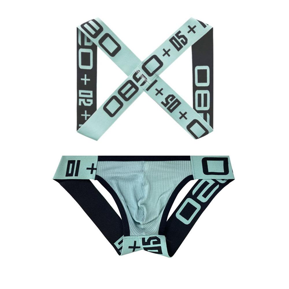 [어깨끈과 팬티 조합] 0850 남성용 실면 팬티, 섹시한 고탄성 스포츠 가슴끈이 있는 로우 웨이스트