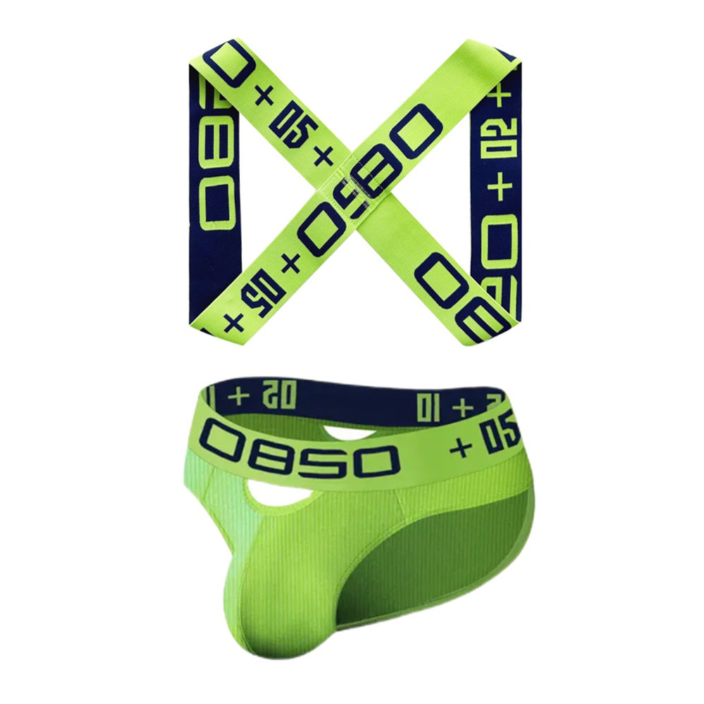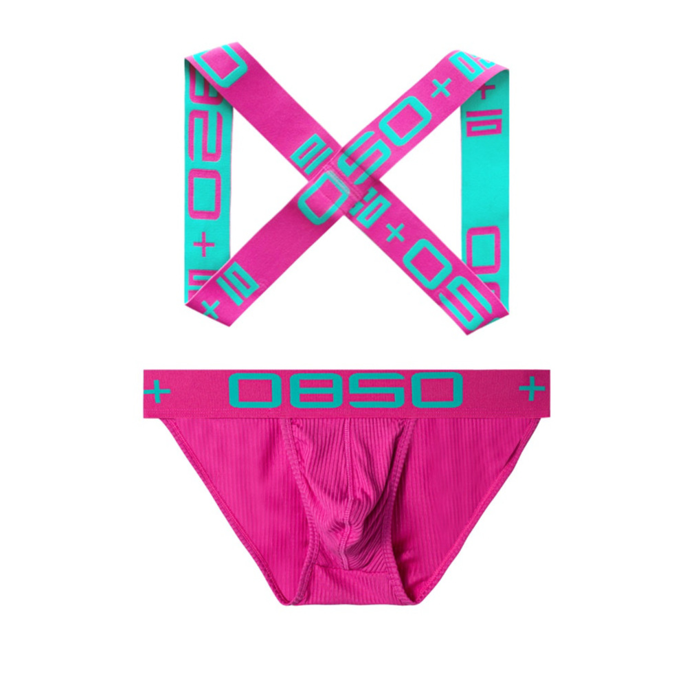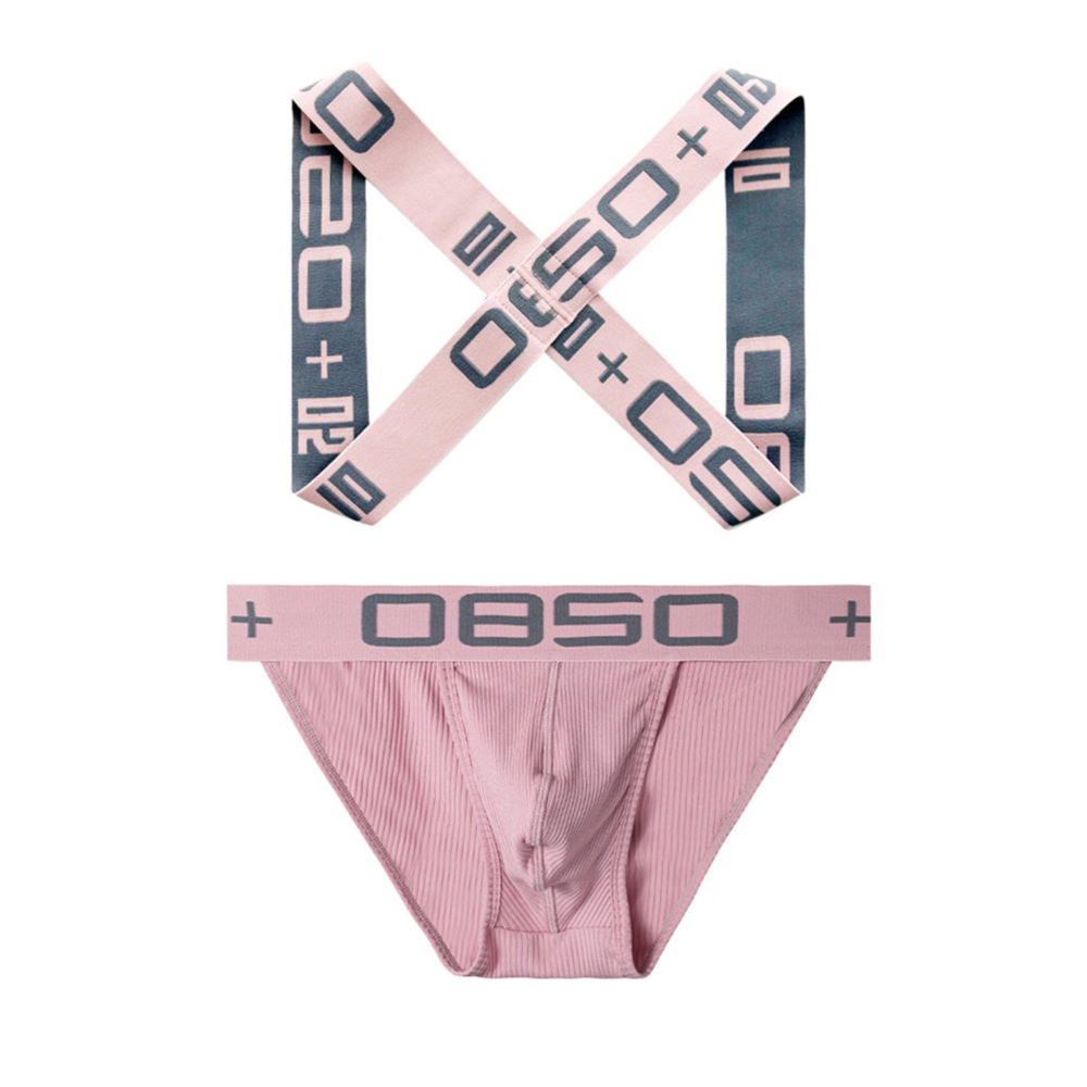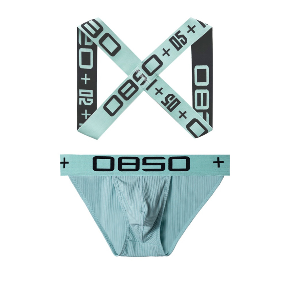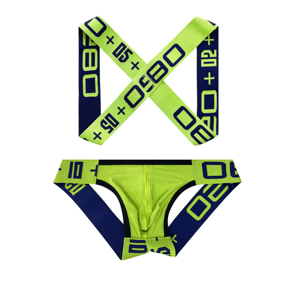 [어깨끈과 팬티 조합] 0850 남성용 실면 팬티, 섹시한 고탄성 스포츠 가슴끈이 있는 로우 웨이스트