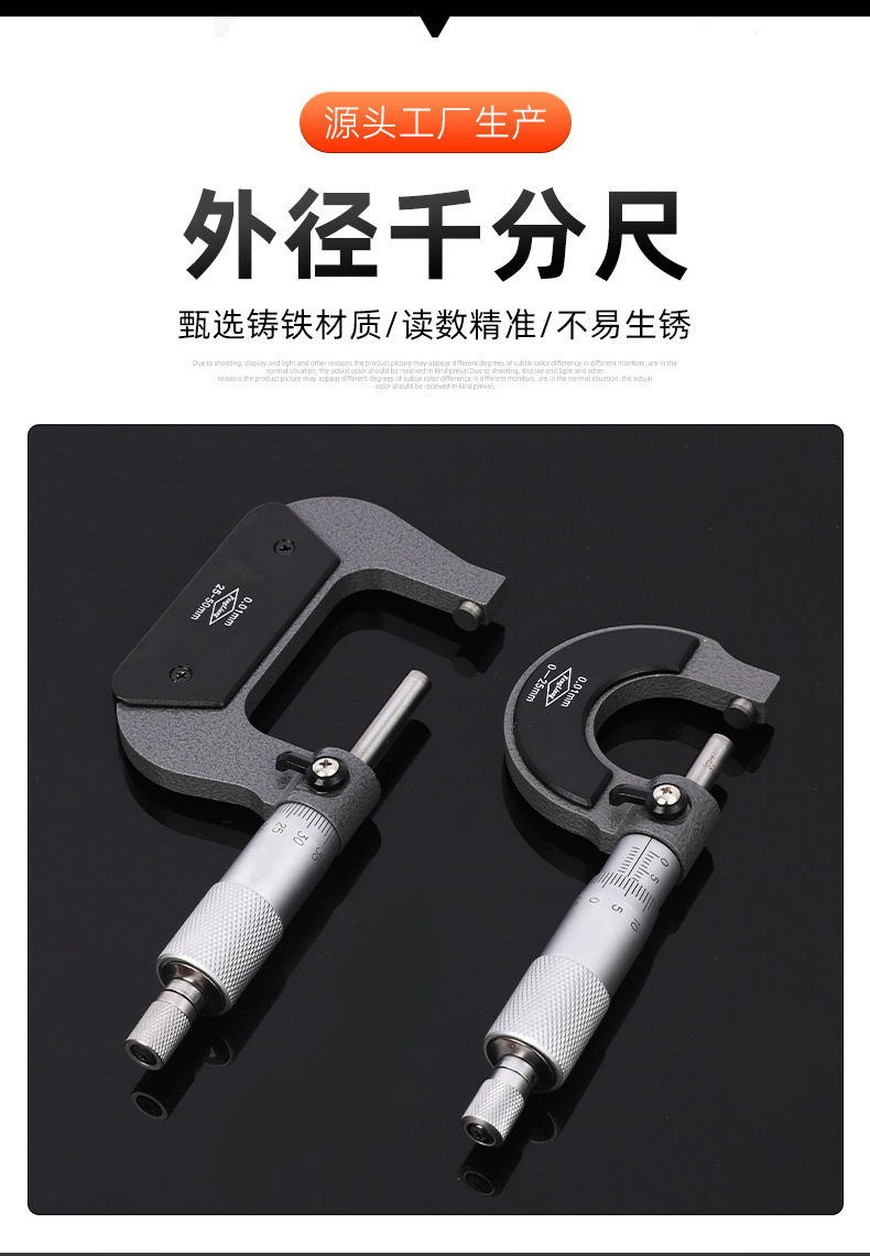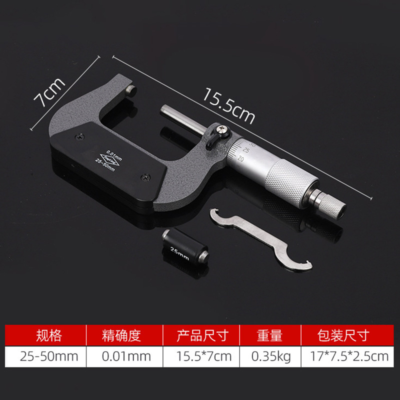 외부 마이크로 미터 국경 도매 0-25mm 스크류 마이크로 미터 기계 마이크로 미터 하드웨어 도구스토어 가기