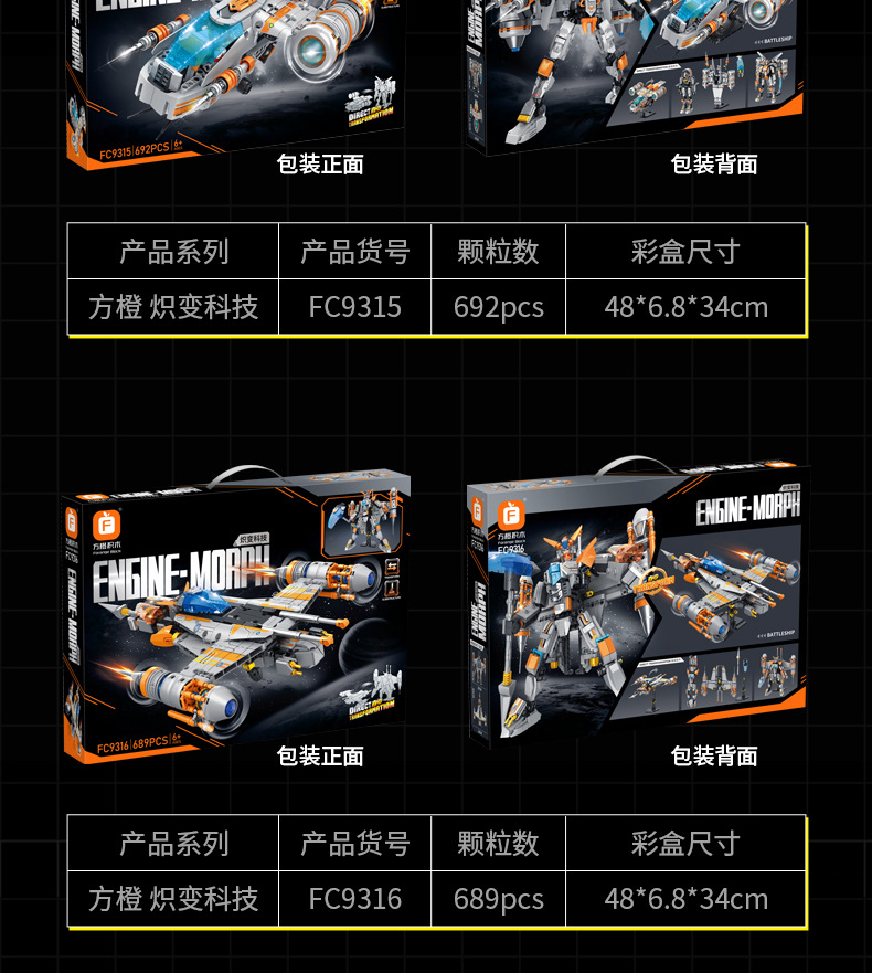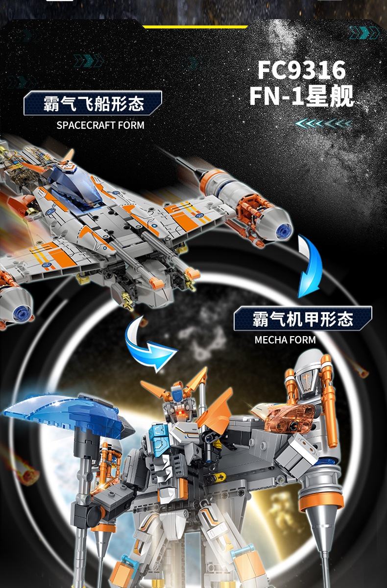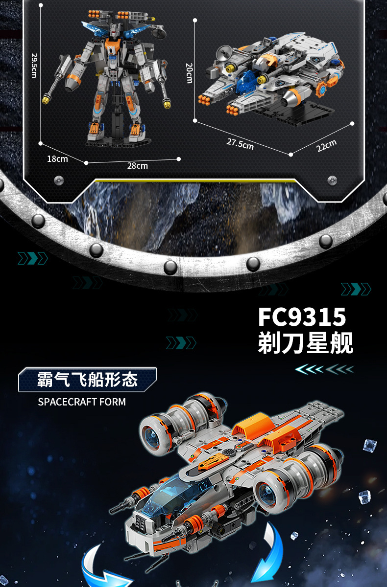 • 2변형 팔콘 스타쉽(Fang Orange 9314)에는 기본 베이스가 포함되어 있습니다.