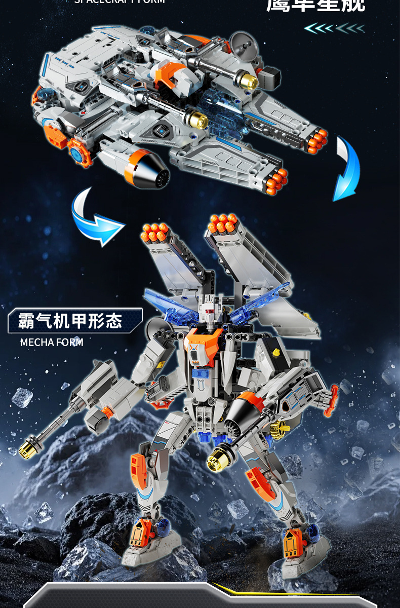 레고 어린이 지능 소년과 호환되는 스퀘어 오렌지 빌딩 블록 조립 메카 스타 선박 모델 로봇 장난감 변형스토어 가기
