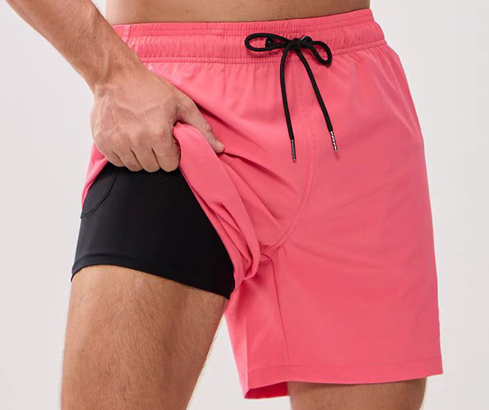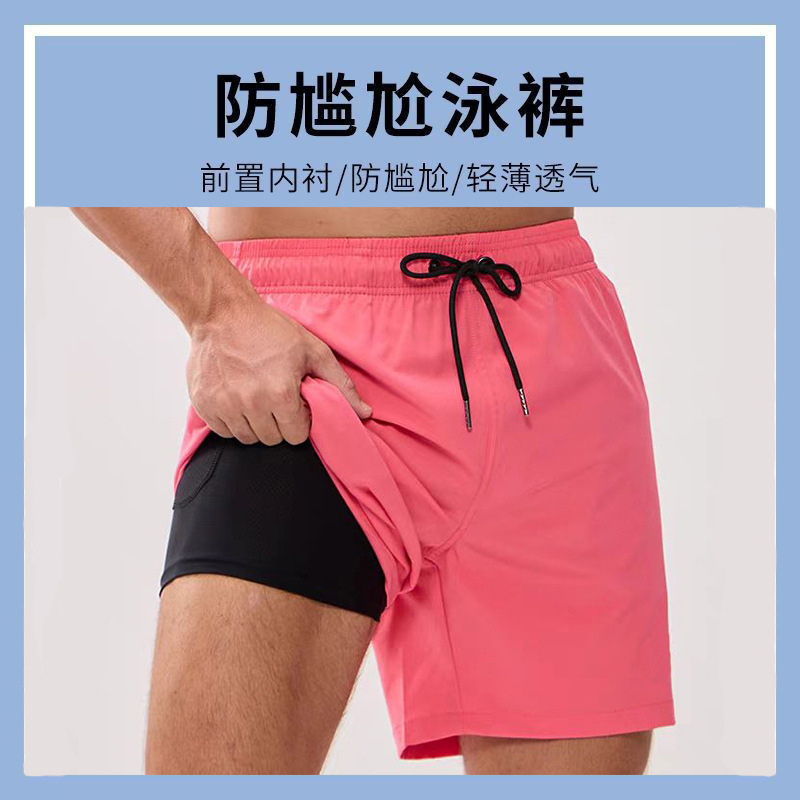 이중층 비치 팬츠 온천 수영복 남성용 수영복 빠른 건조 러닝 피트니스 쿼터 팬츠 트렌디한 빠른 건조