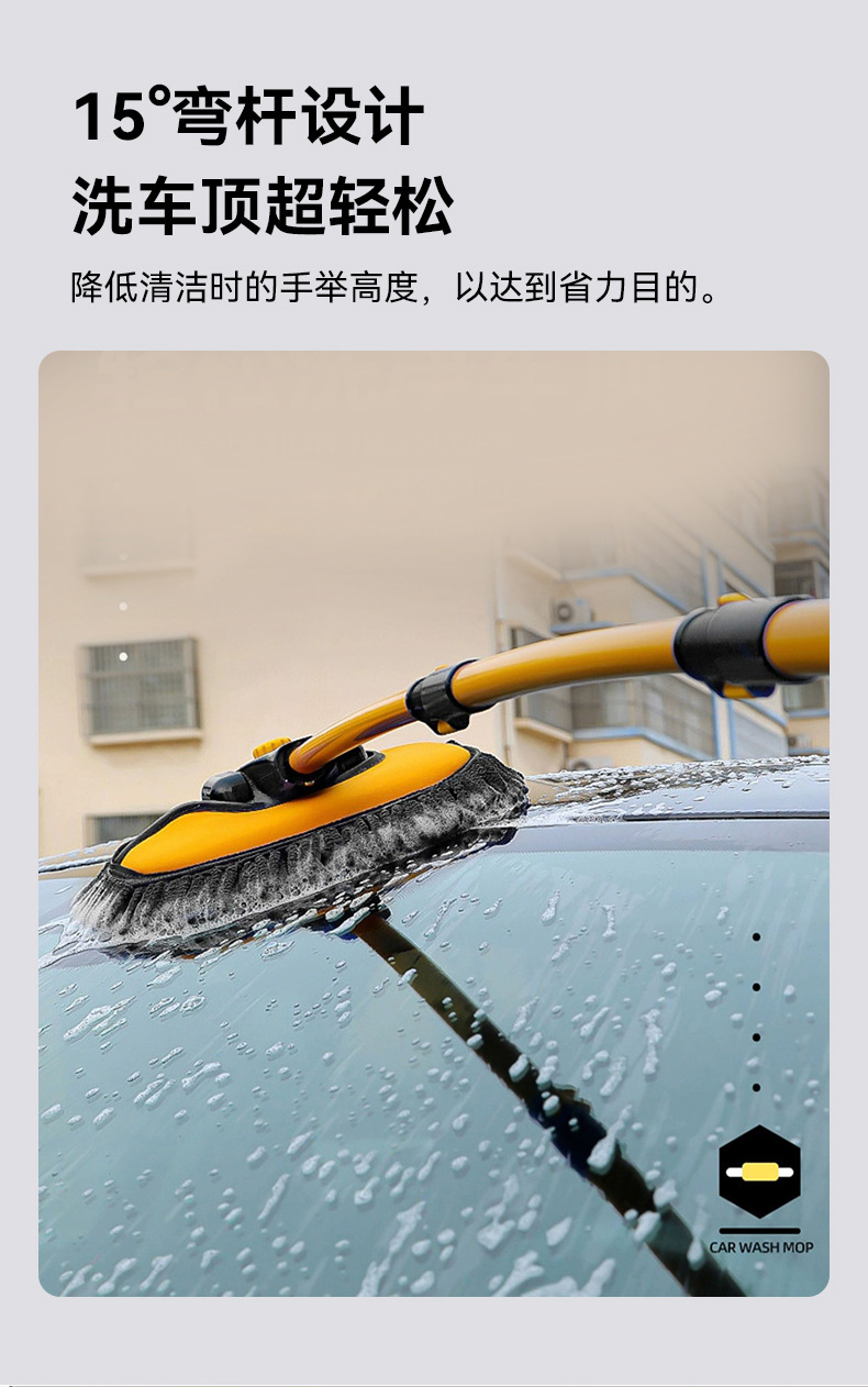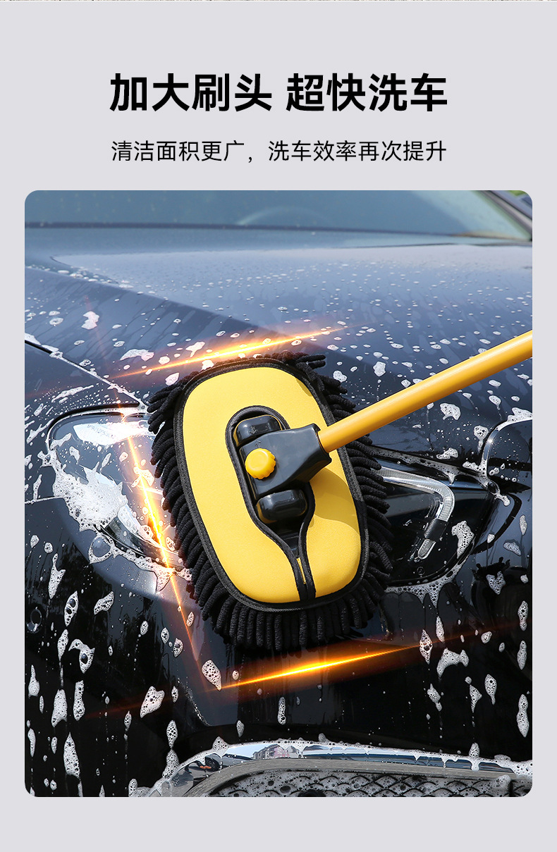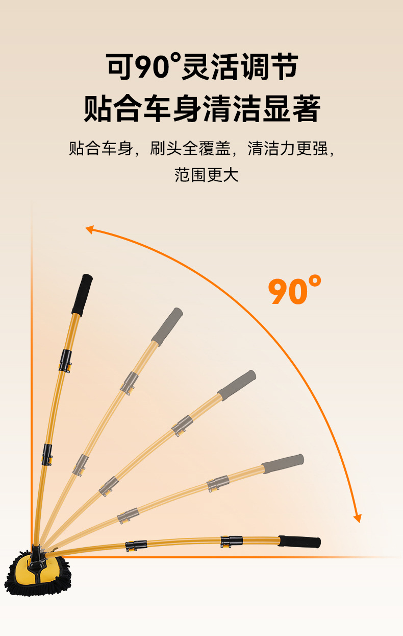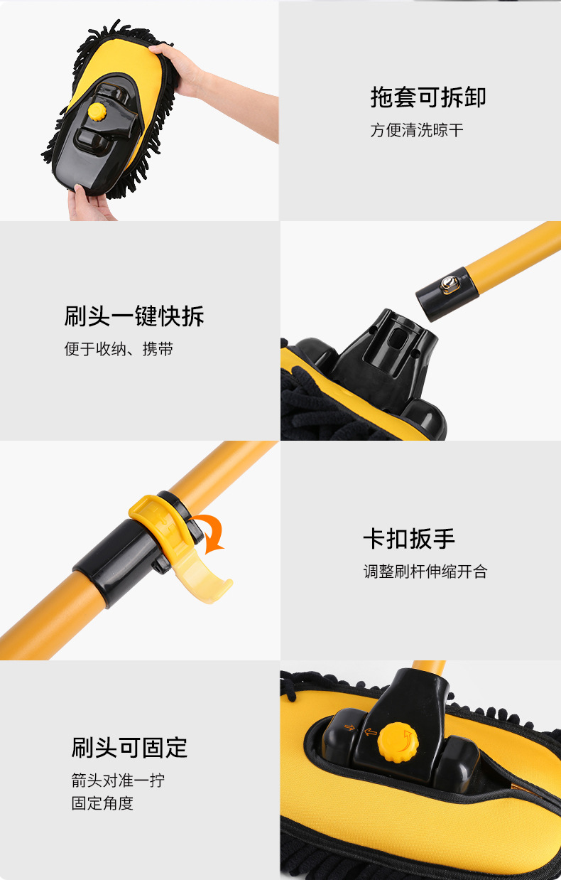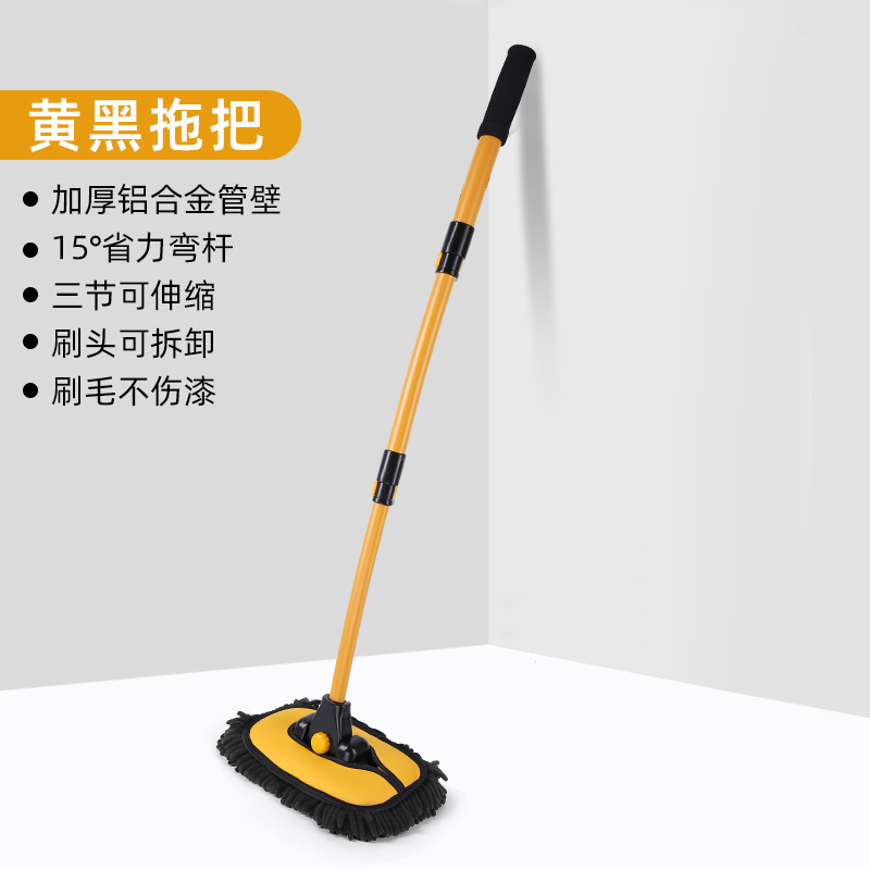 【套装清单】:黄黑四节拖把*1个、替换头*1个、30*60毛巾*1条、缝隙刷*1个