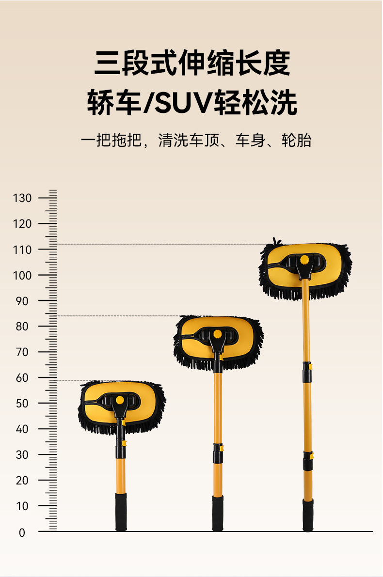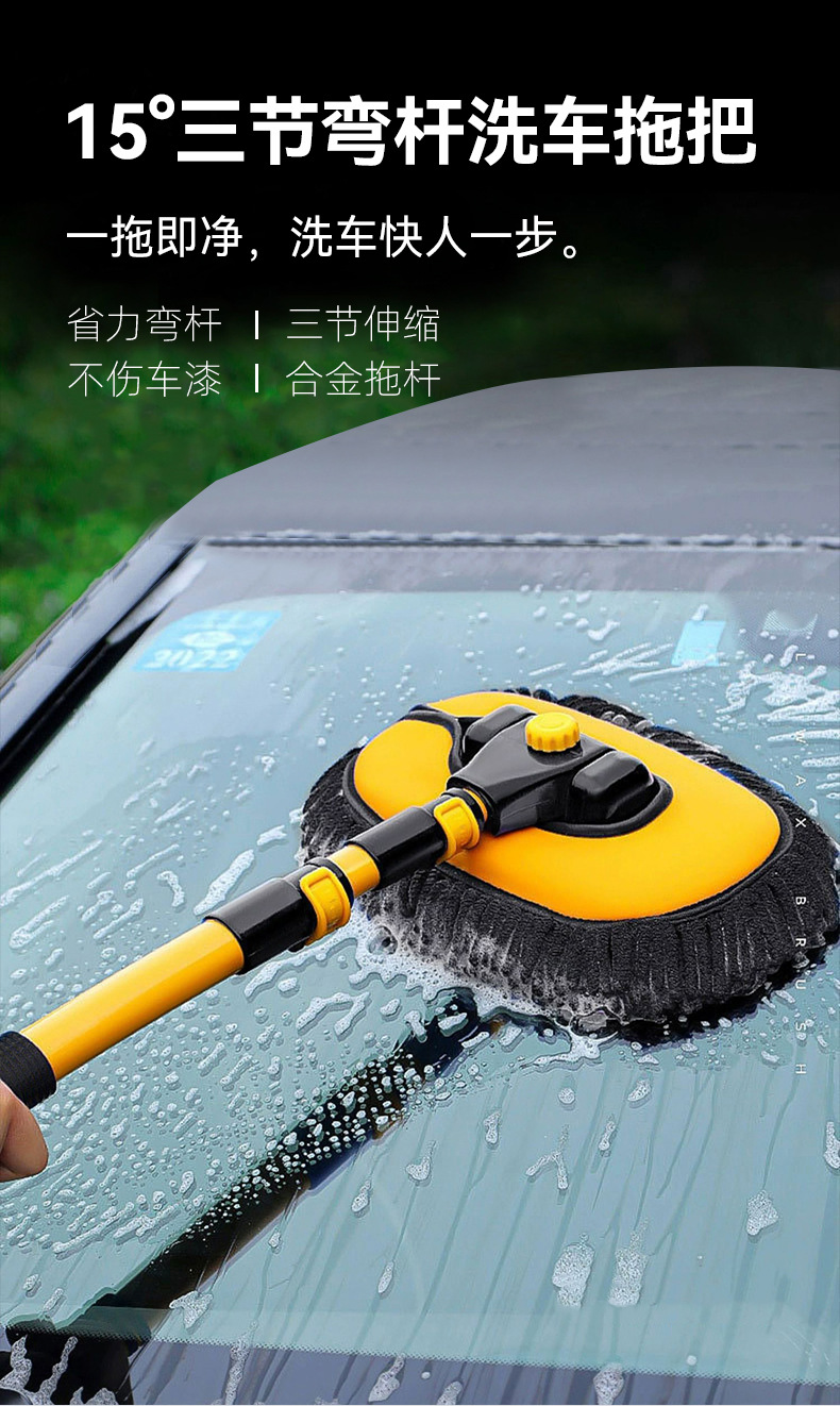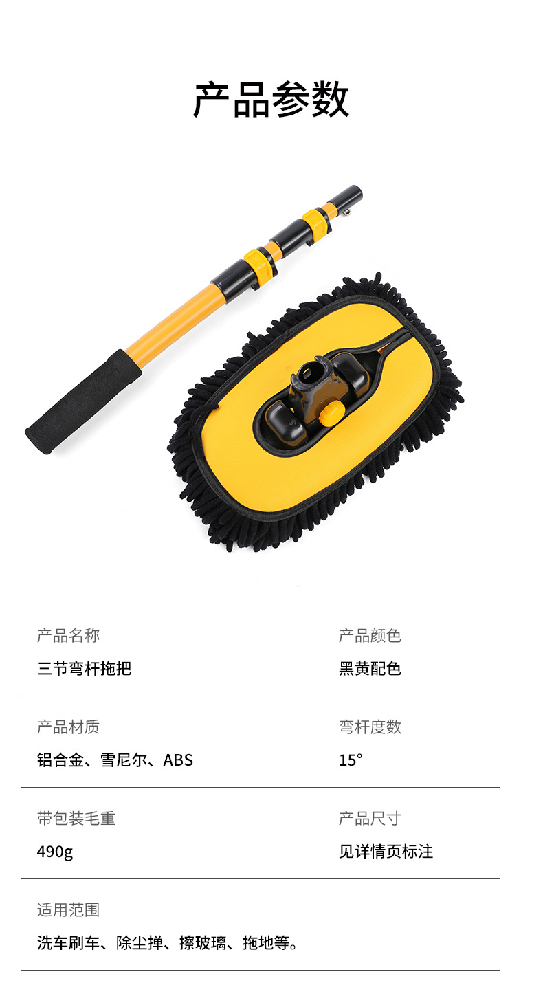 【套装清单】:黄黑三节拖把*1个、替换头*1个、30*60毛巾*1条、缝隙刷*1个