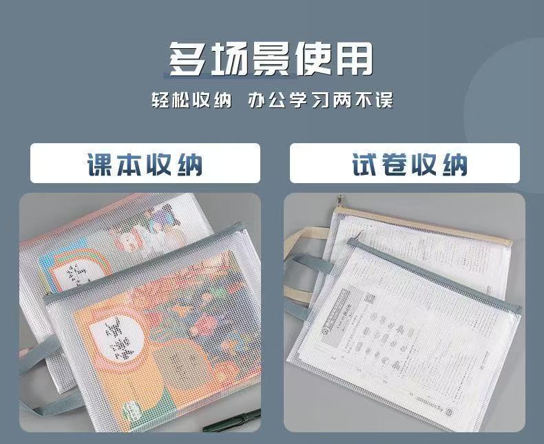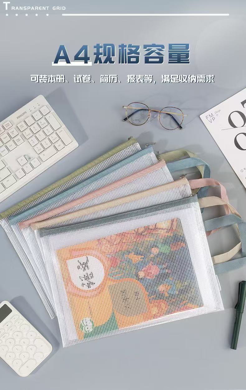 ✅ A4 방수 휴대용 메쉬 지퍼 가방 학생 시험지 보관 가방 정보 분류 가방 투명 파일 가방 인쇄 가능스토어 가기