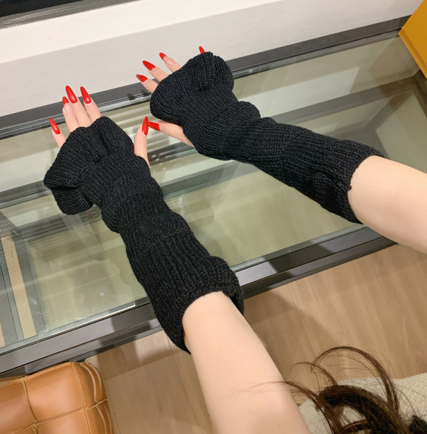 니트 모직 뿔 소매 겨울 따뜻한 니트 힙 팔 커버 두꺼운 따뜻한 JK 소녀 웨이브 장갑