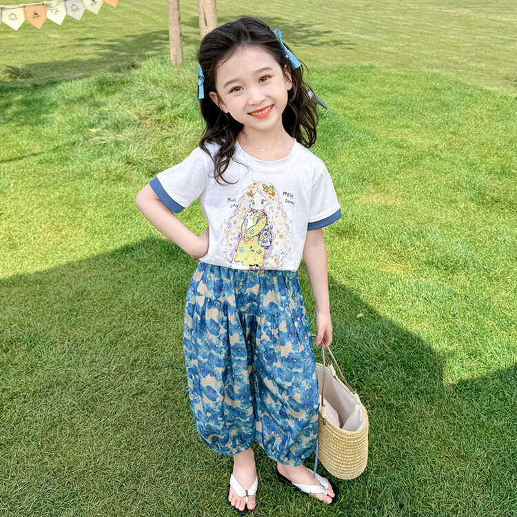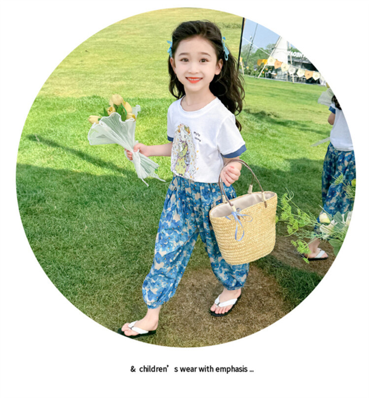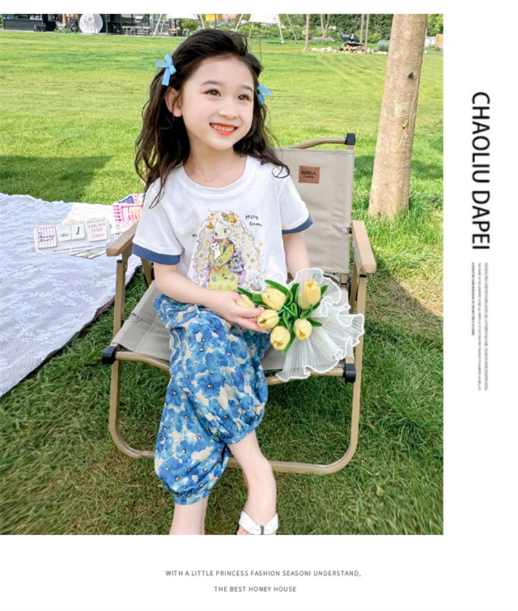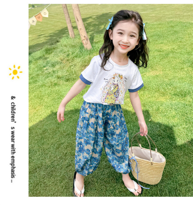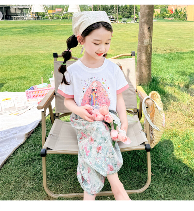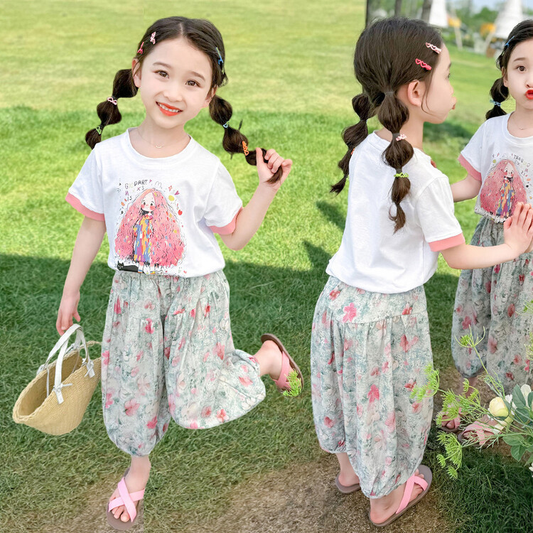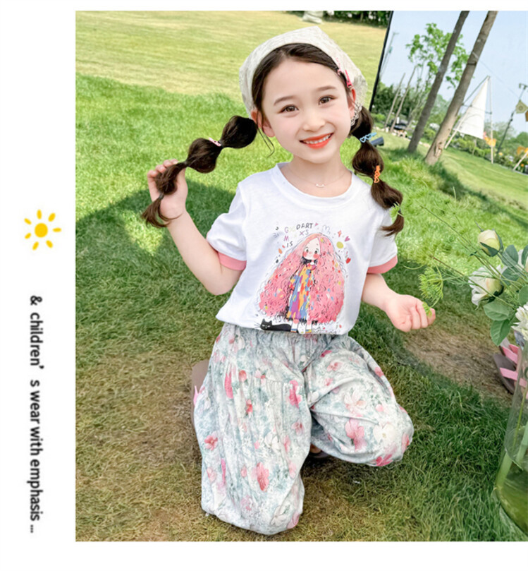 소녀 여름 모기 방지 바지 세트 2025 새로운 어린이 여름 옷 아기 반팔 인터넷-유명한 투피스 세트스토어 가기
