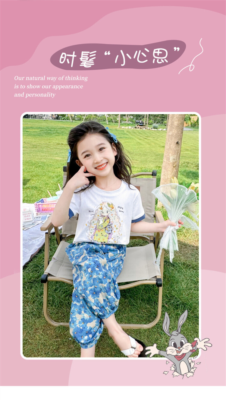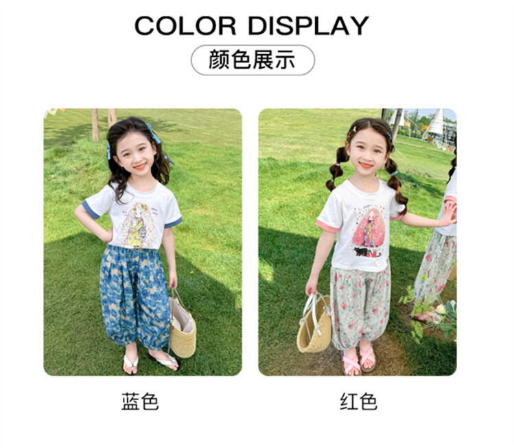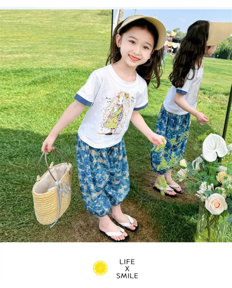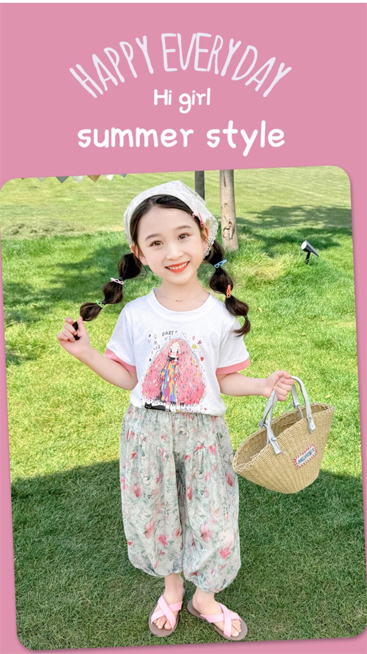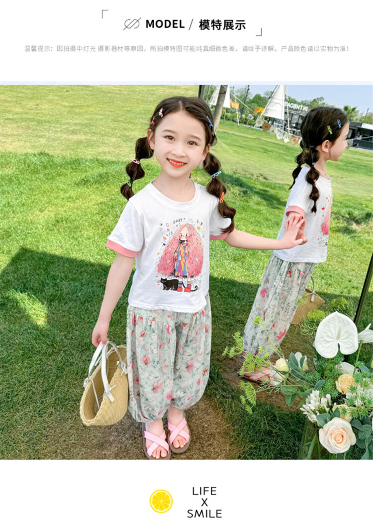 소녀 여름 모기 방지 바지 세트 2025 새로운 어린이 여름 옷 아기 반팔 인터넷-유명한 투피스 세트스토어 가기
