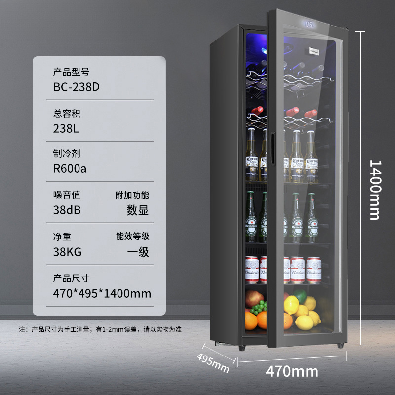 • 238L 완전냉장 + 컴퓨터 디지털 디스플레이 + 에너지 효율 1단계 + LED 조명