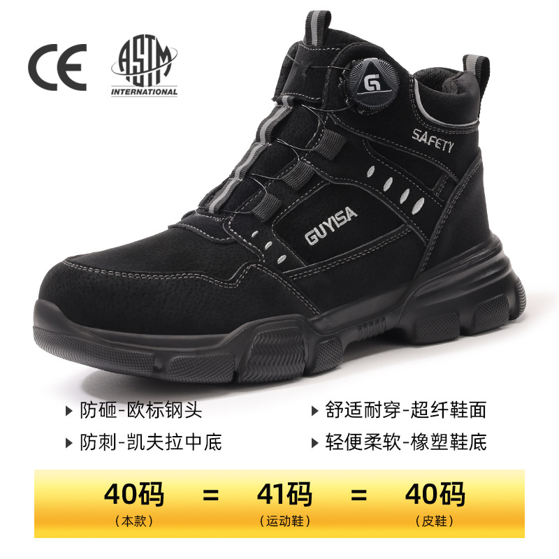 남성용 사계절 하이탑 노동 보호 신발, 스매싱 방지 및 펑크 방지 강철 발가락 신발, 끈이 없는 스마트 버튼 안전 작업 신발 도매스토어 가기