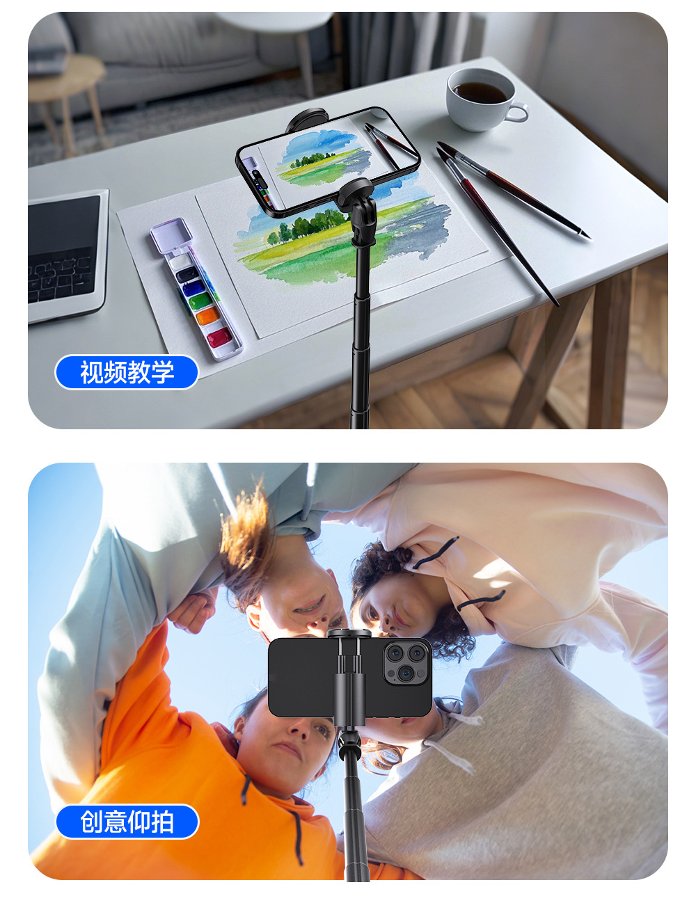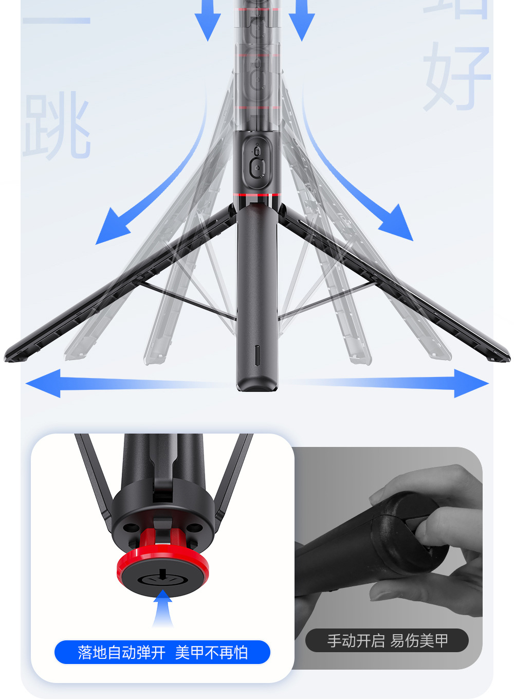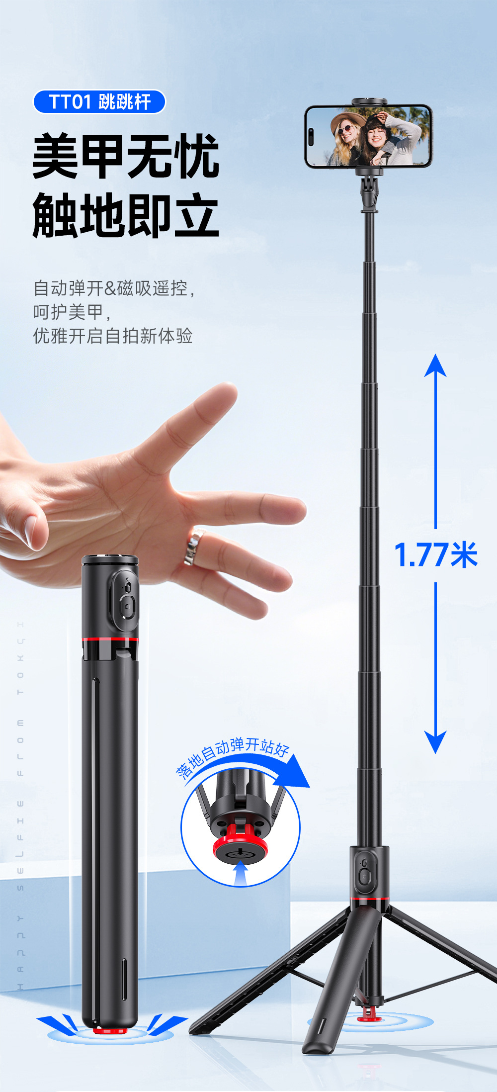새로운 점프로드 TT01 휴대 전화 셀카 레버 한 버튼 바운스 삼각대 휴대용 라이브 휴대 전화 브래킷 드롭 레버